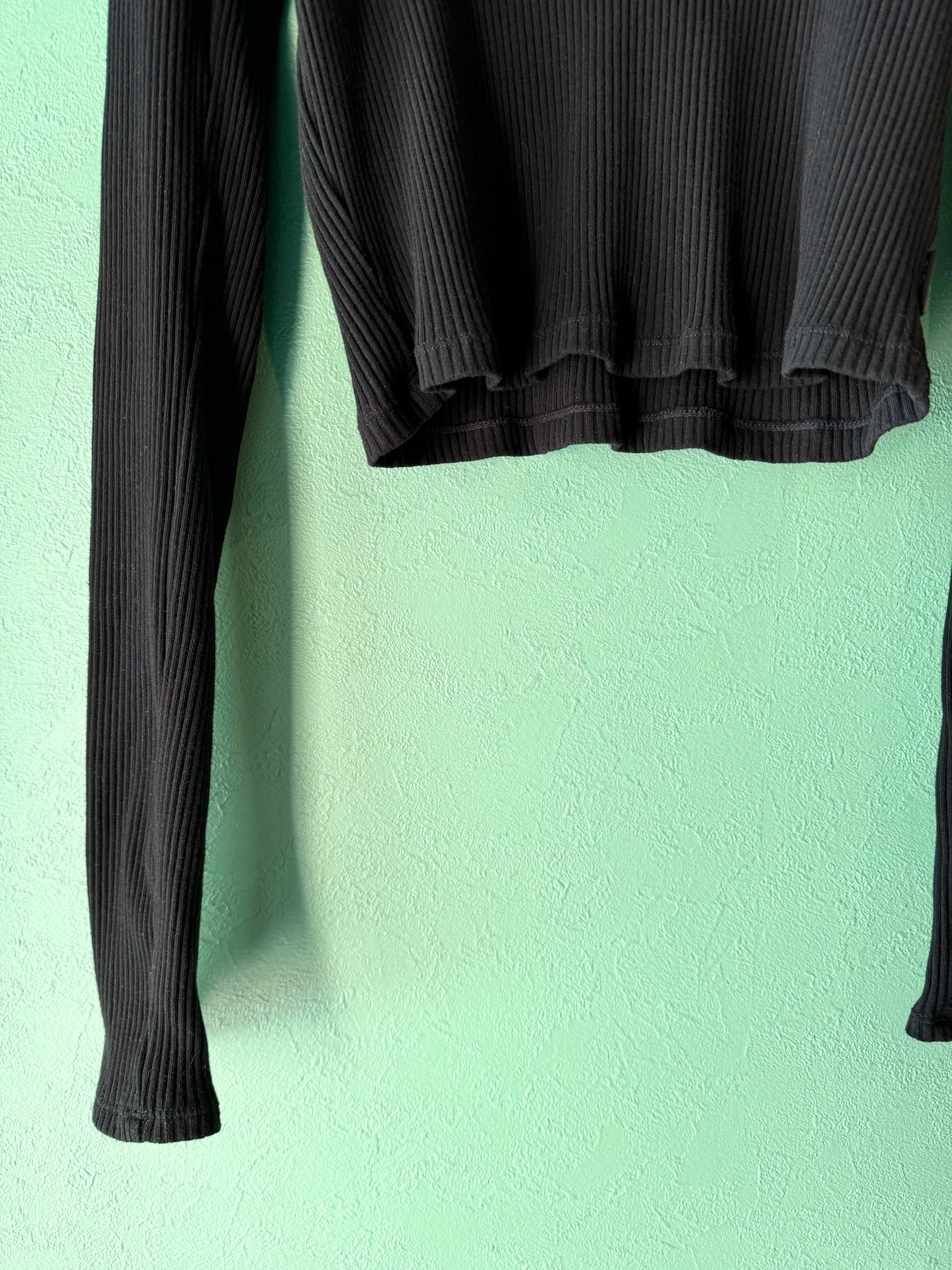 使い勝手の良いブラックカラーに着丈の短いクロップドデザインになっています。