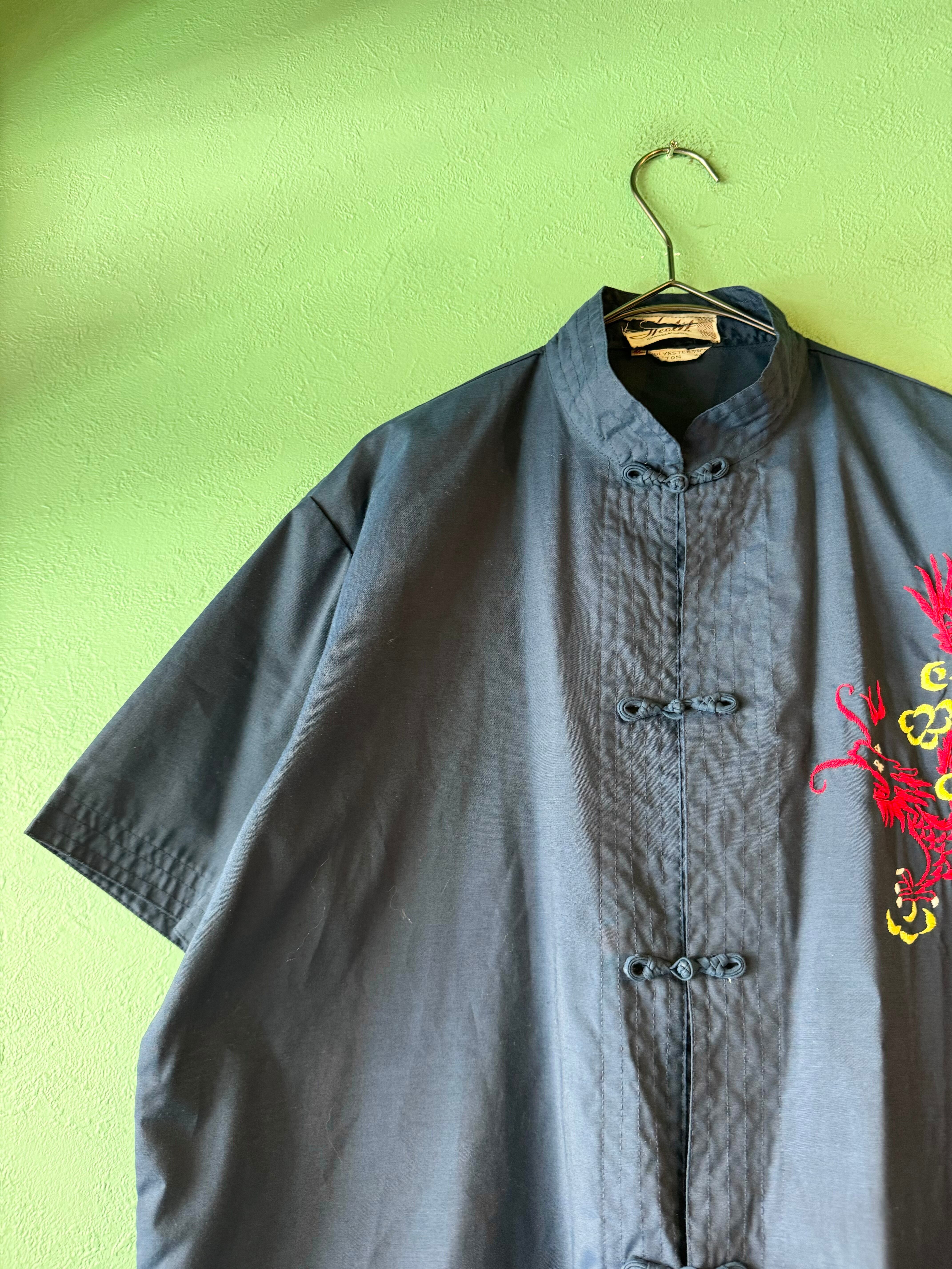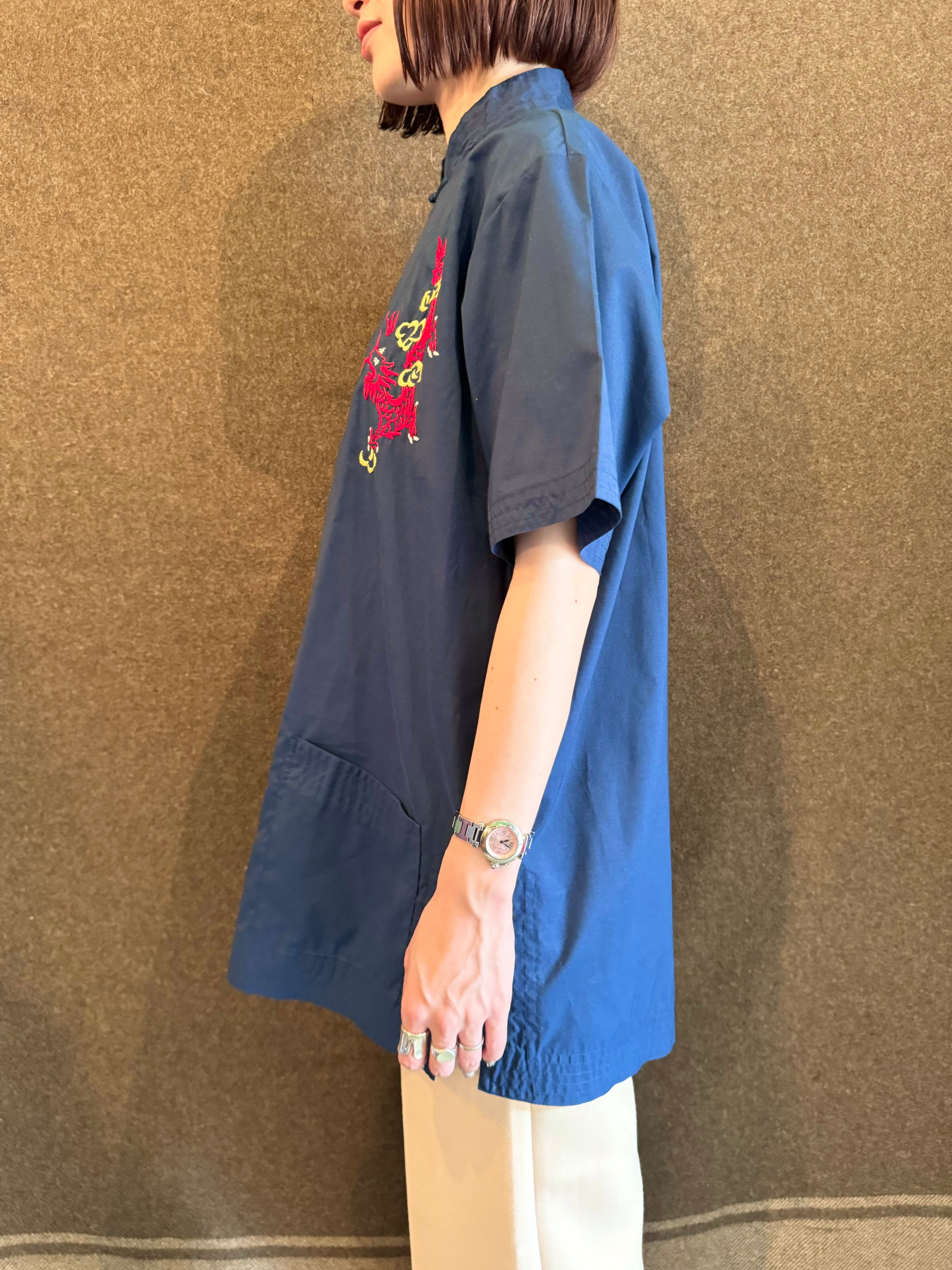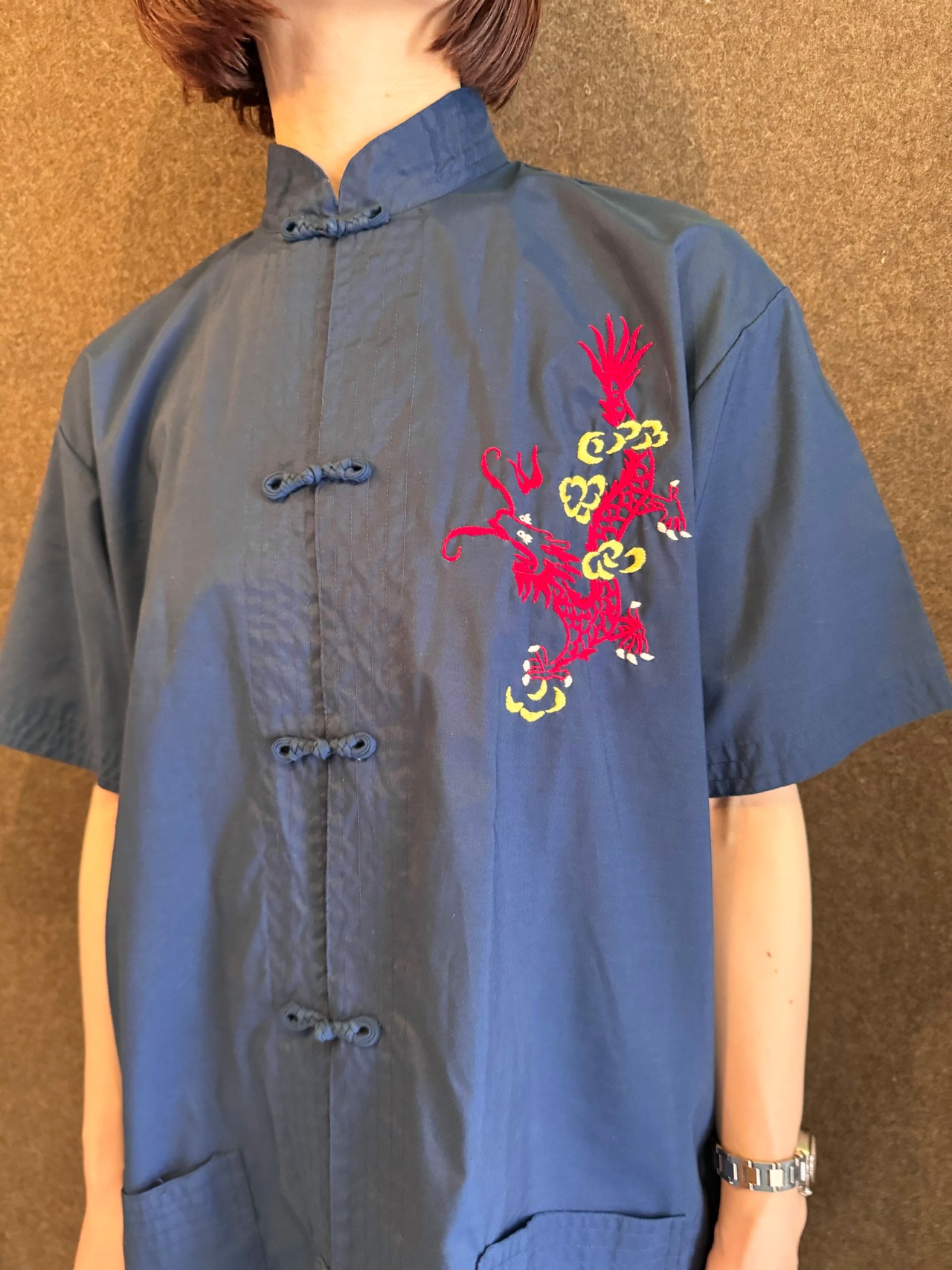 こちらはフロントが可愛らしいチャイナボタンになっており、左胸には龍の刺繍デザインが施されたアイテム。
