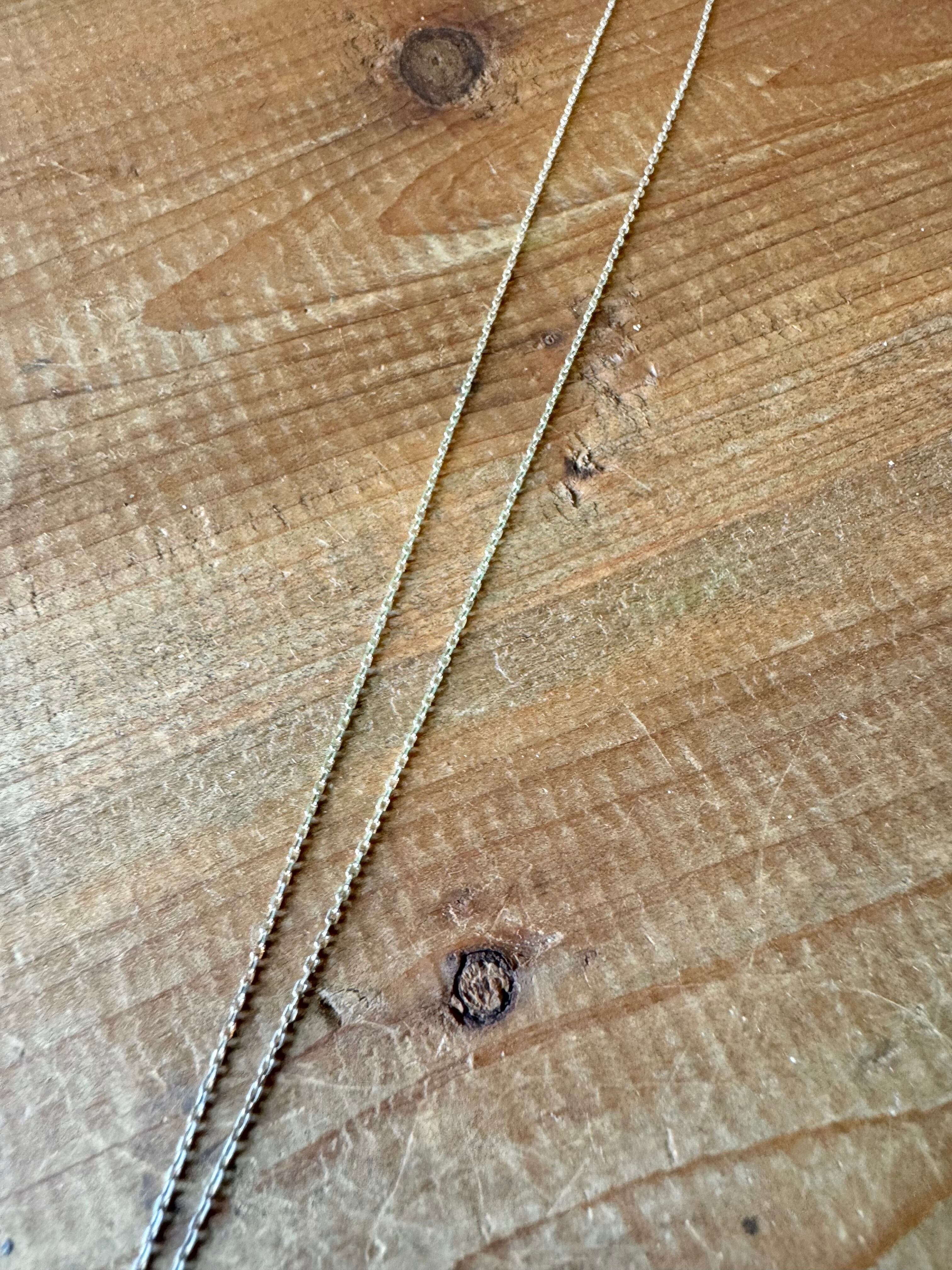 華奢なチェーンに小ぶりのペンダントトップなのでコーディネートの邪魔にならず、重ね付けしても可愛いと思います。