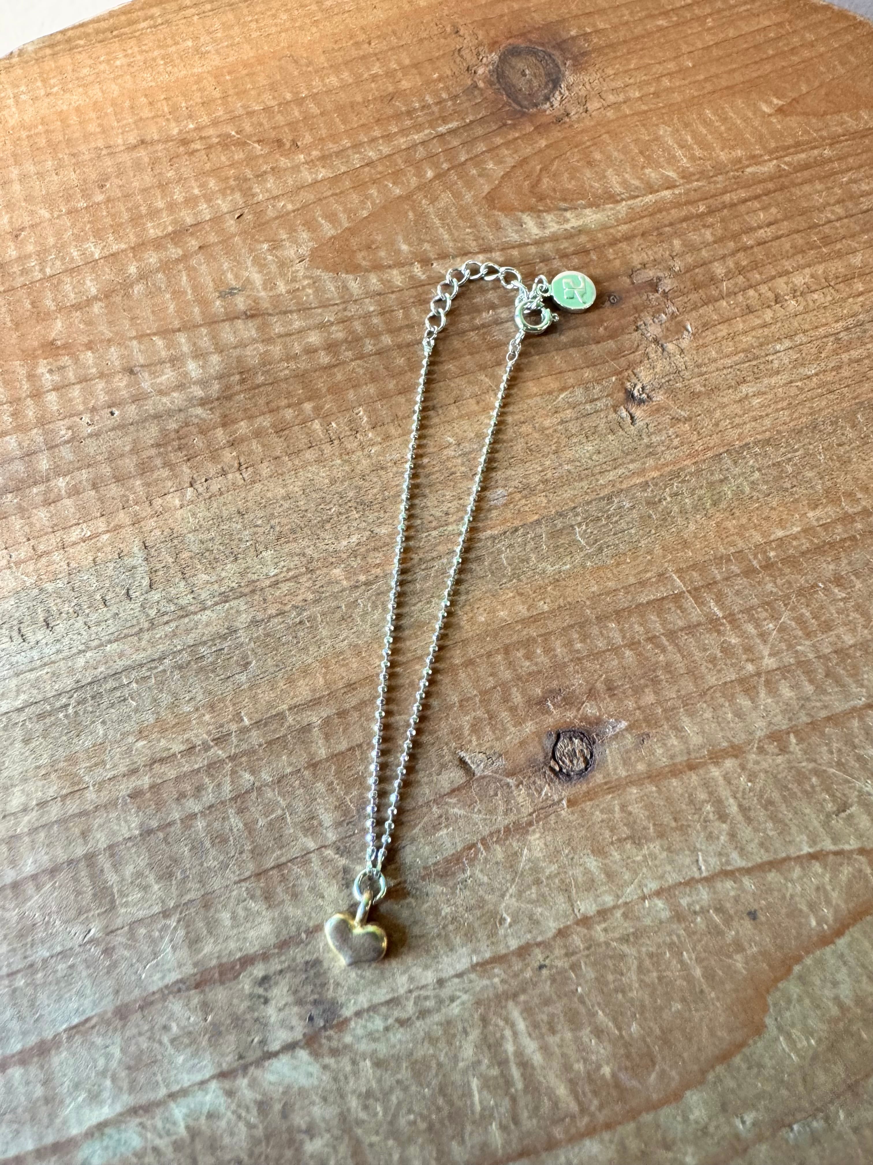 こちらは華奢なボールチェーンにゴールドカラーのハートトップのついたブレスレット。