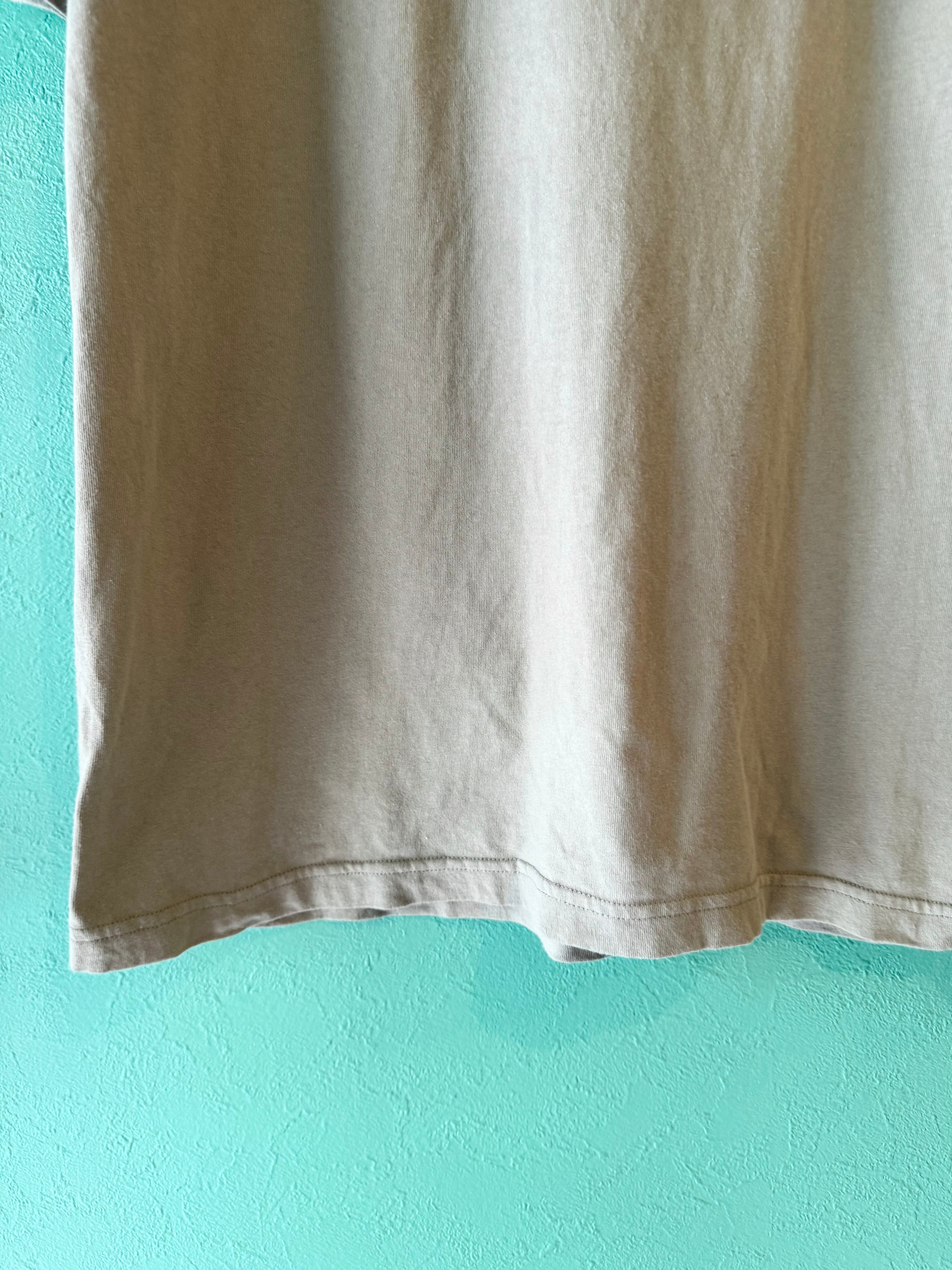 こちらはシックなカーキボディーにフロントにはブランドロゴのプリントされたベーシックなTシャツ。