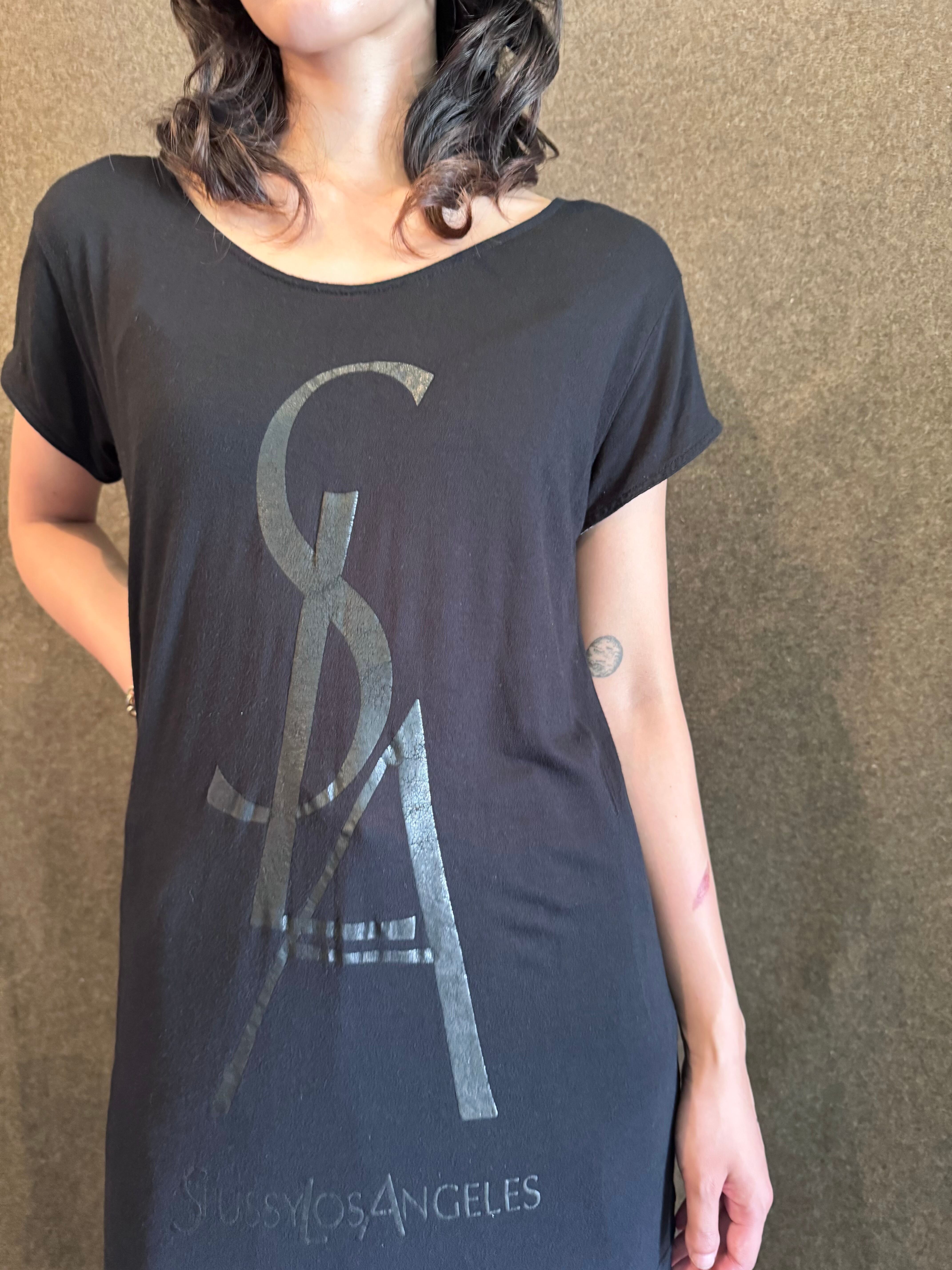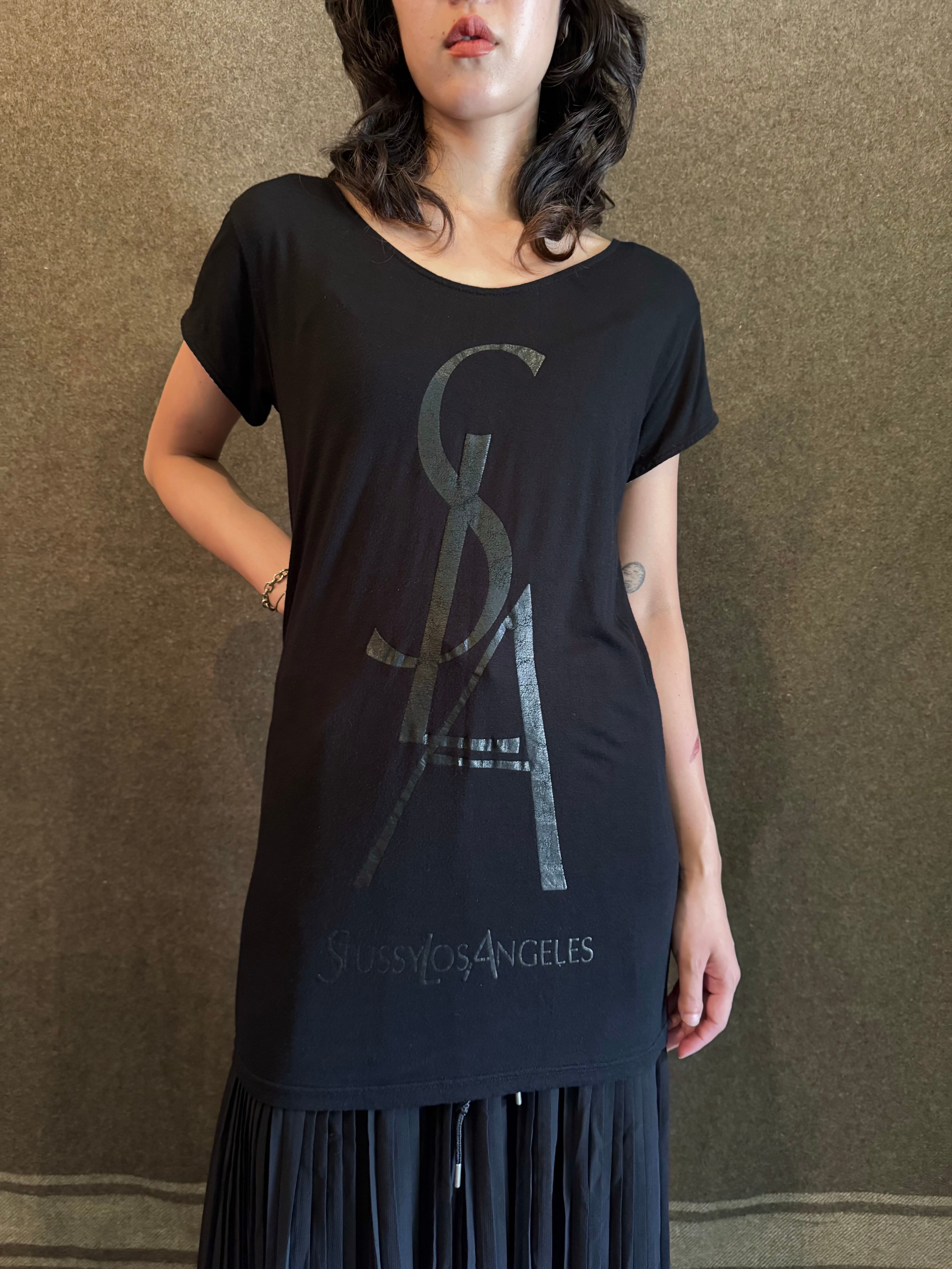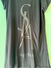 見るからにイヴサンローランのロゴを真似たデザインの面白い1着です。