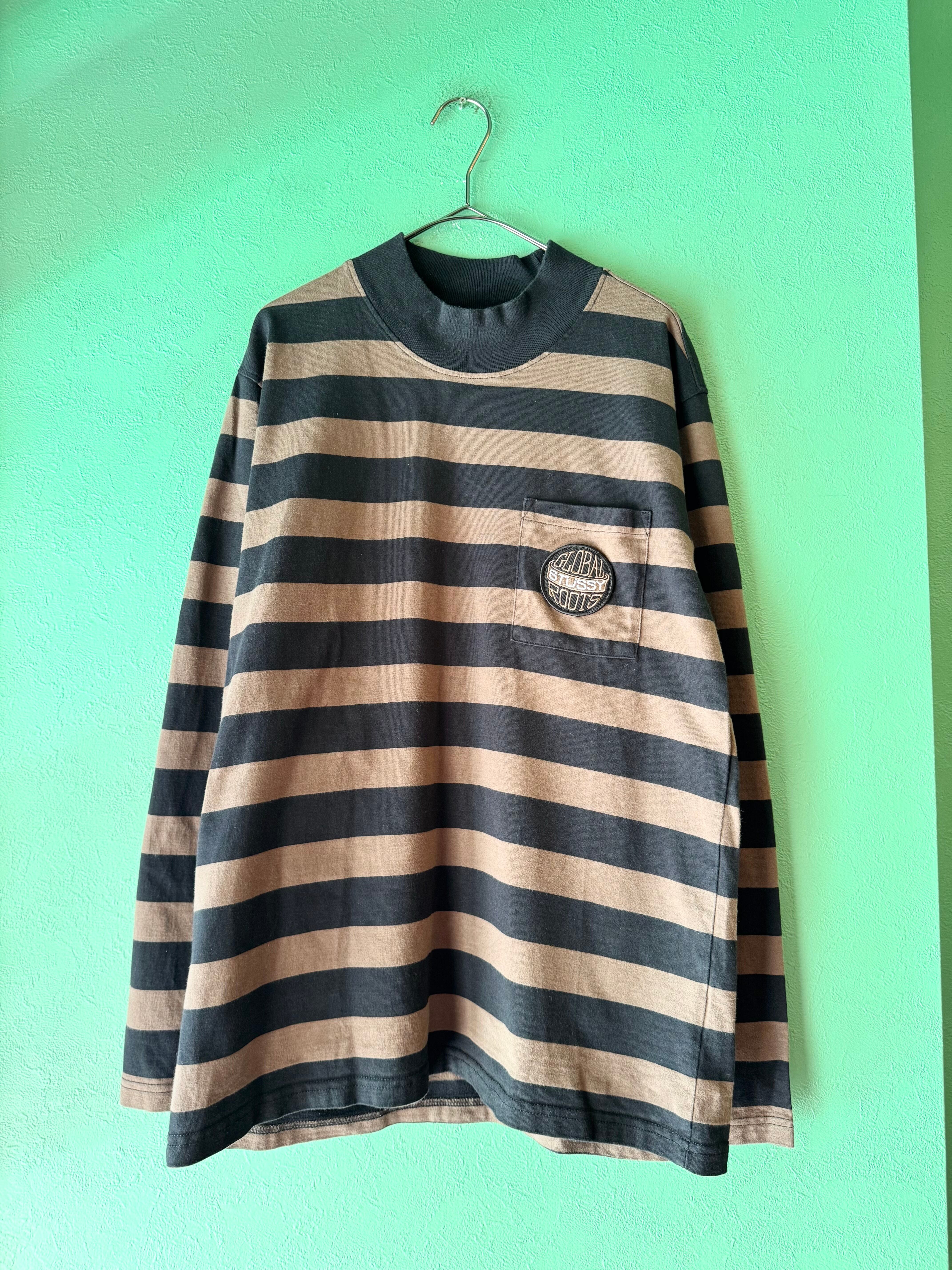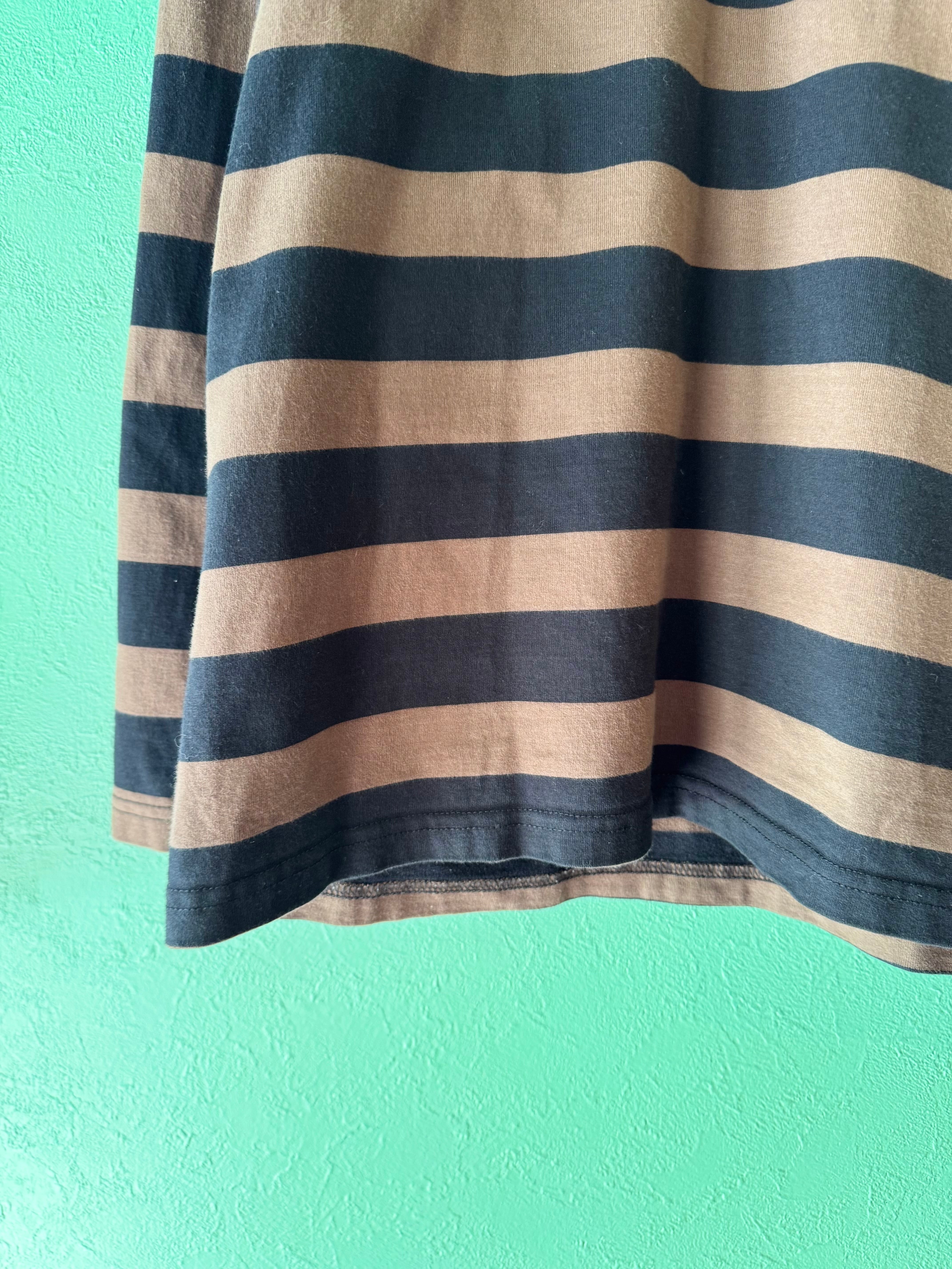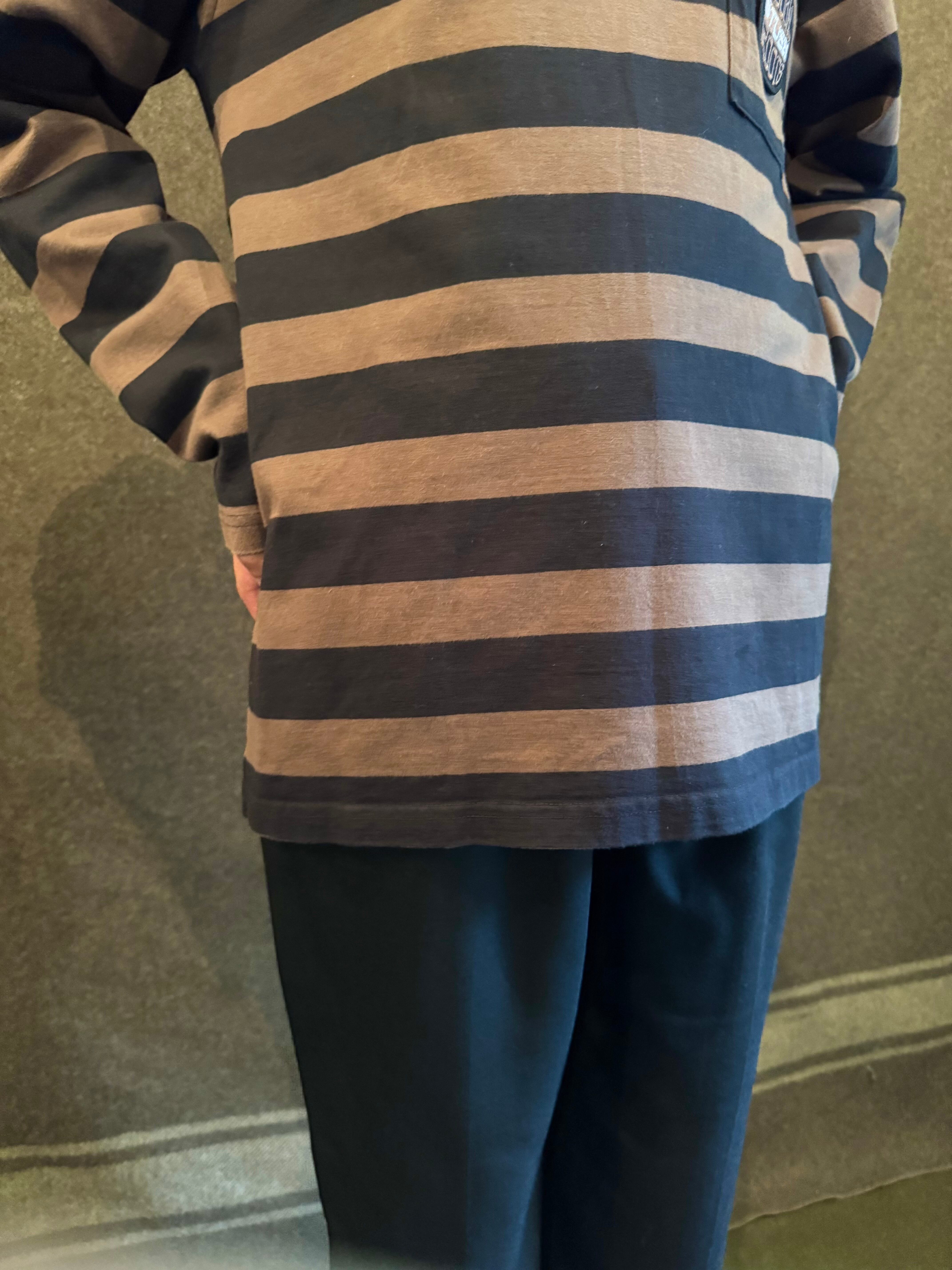 こちらはブラック×ブラウンのシックなカラーリングのボーダーパターンロンTee。