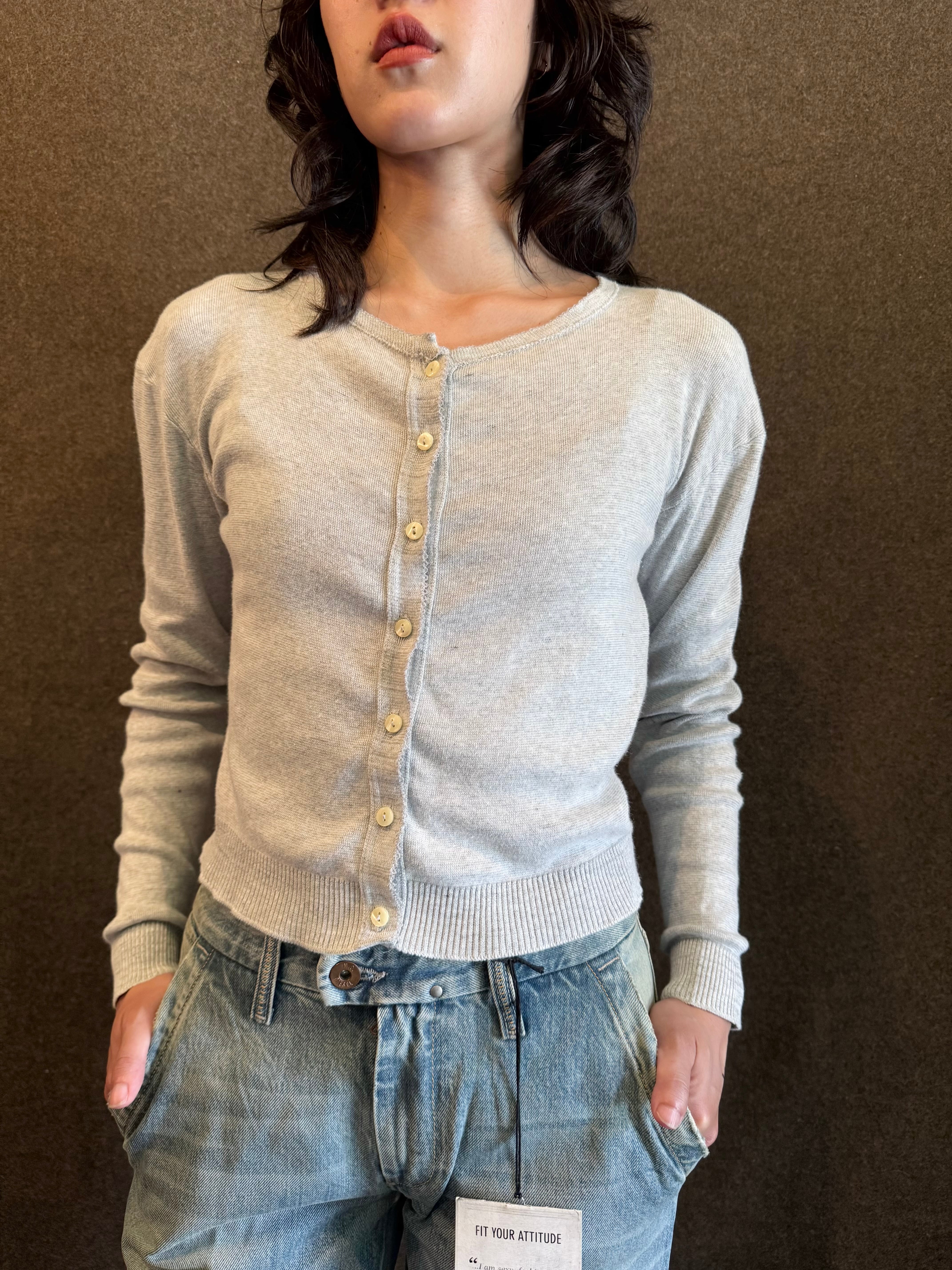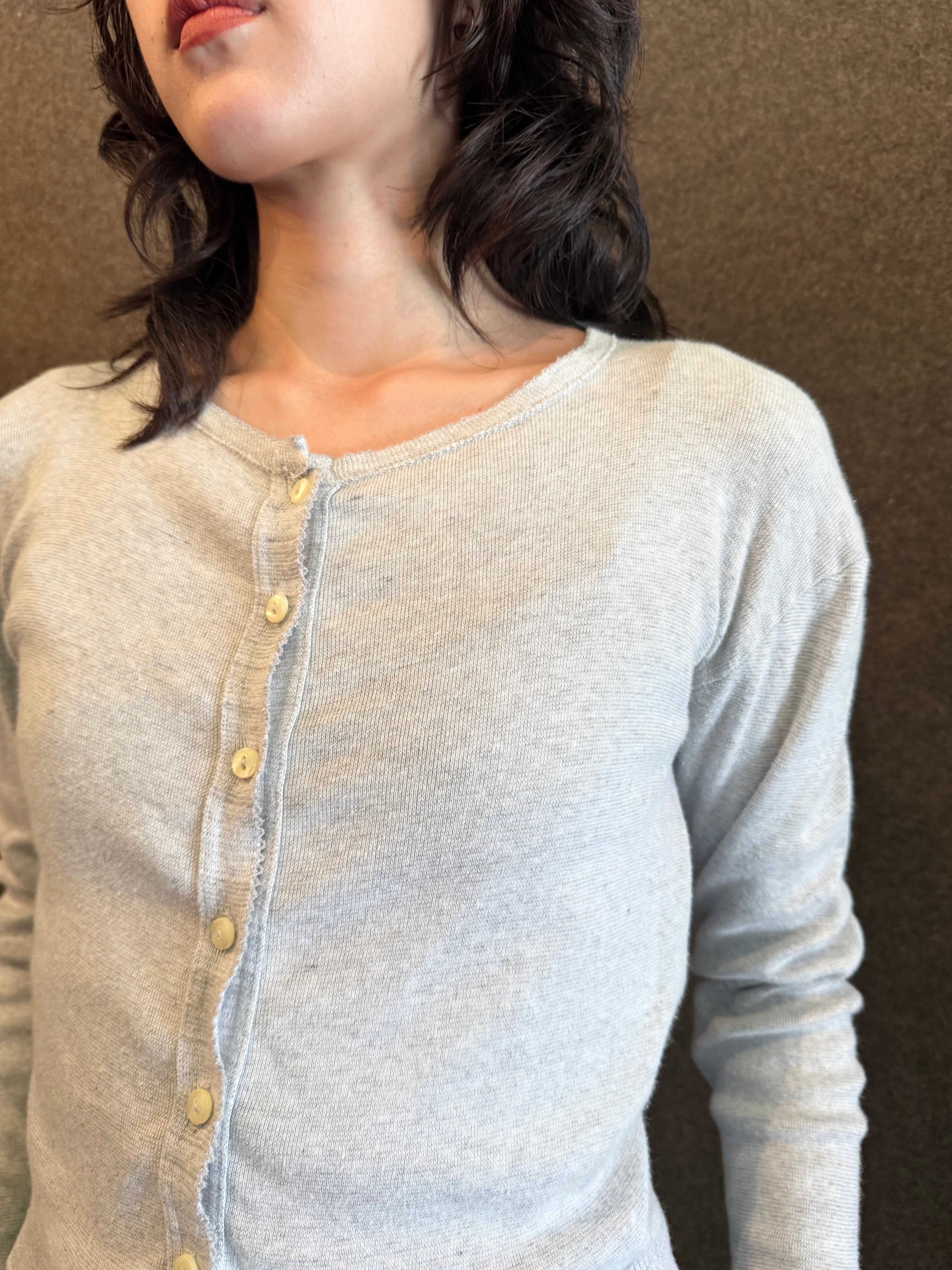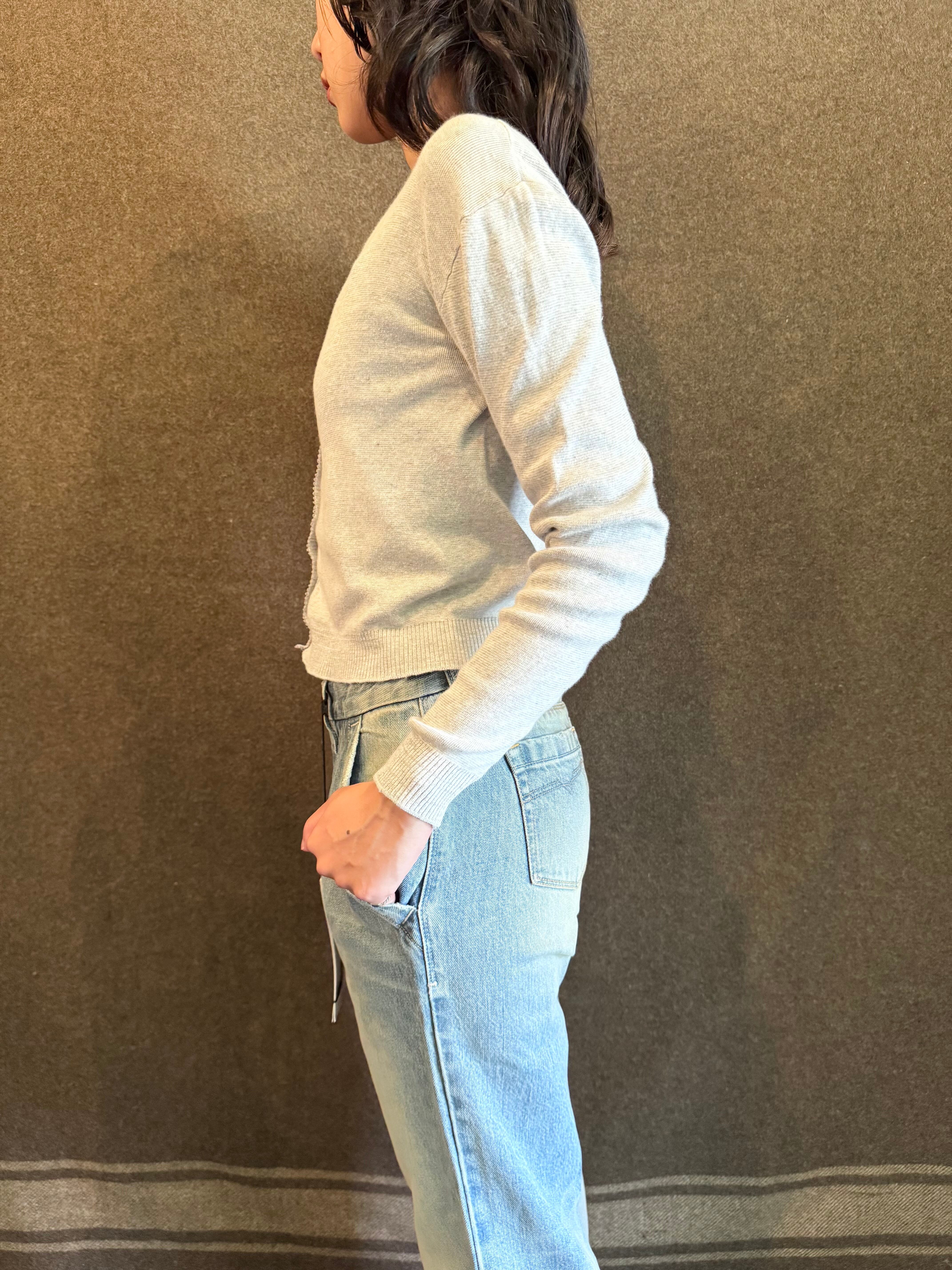 使い勝手の良い杢グレーカラーにネックからフロントにかけてさりげないデザインも◎
