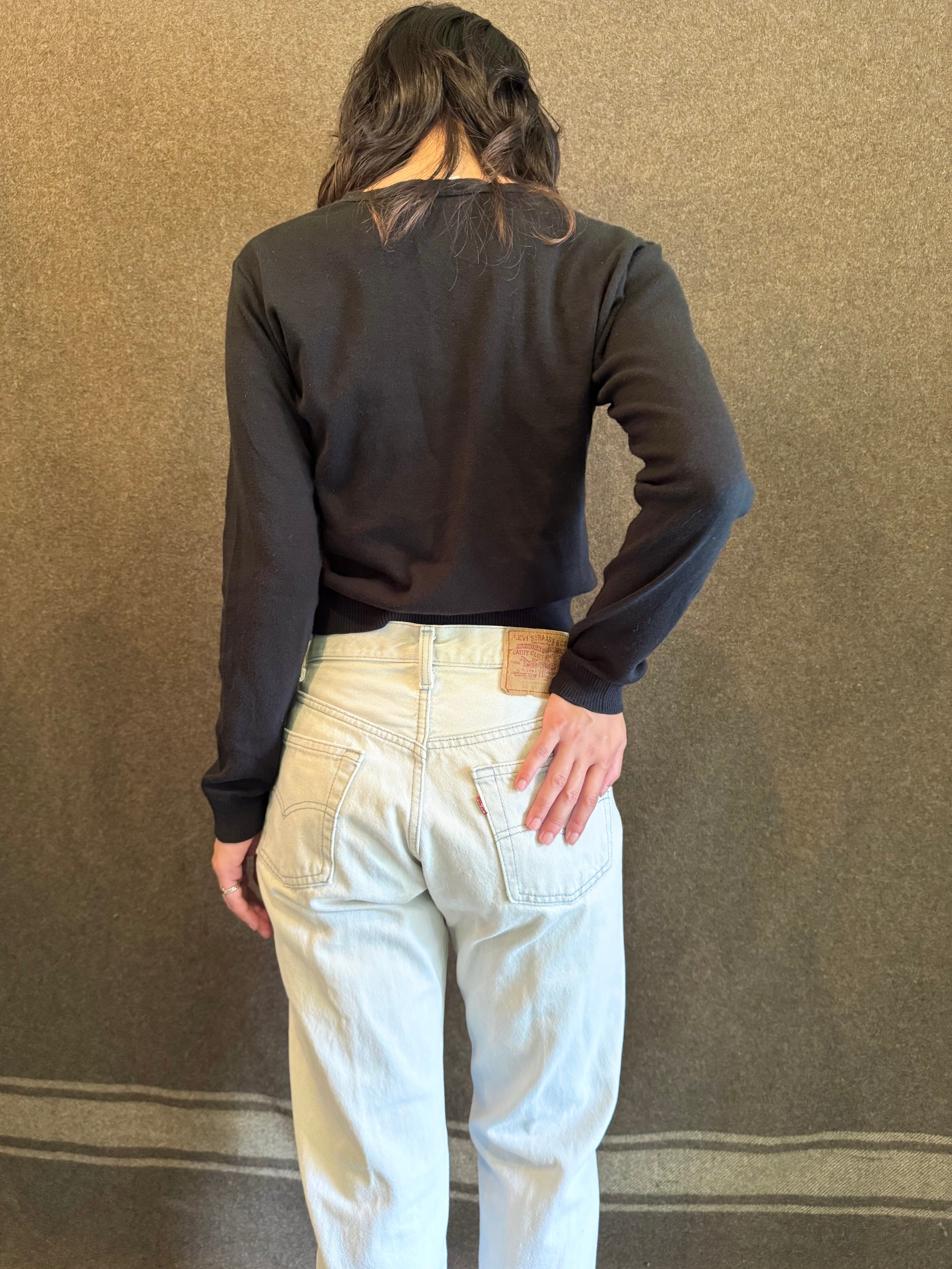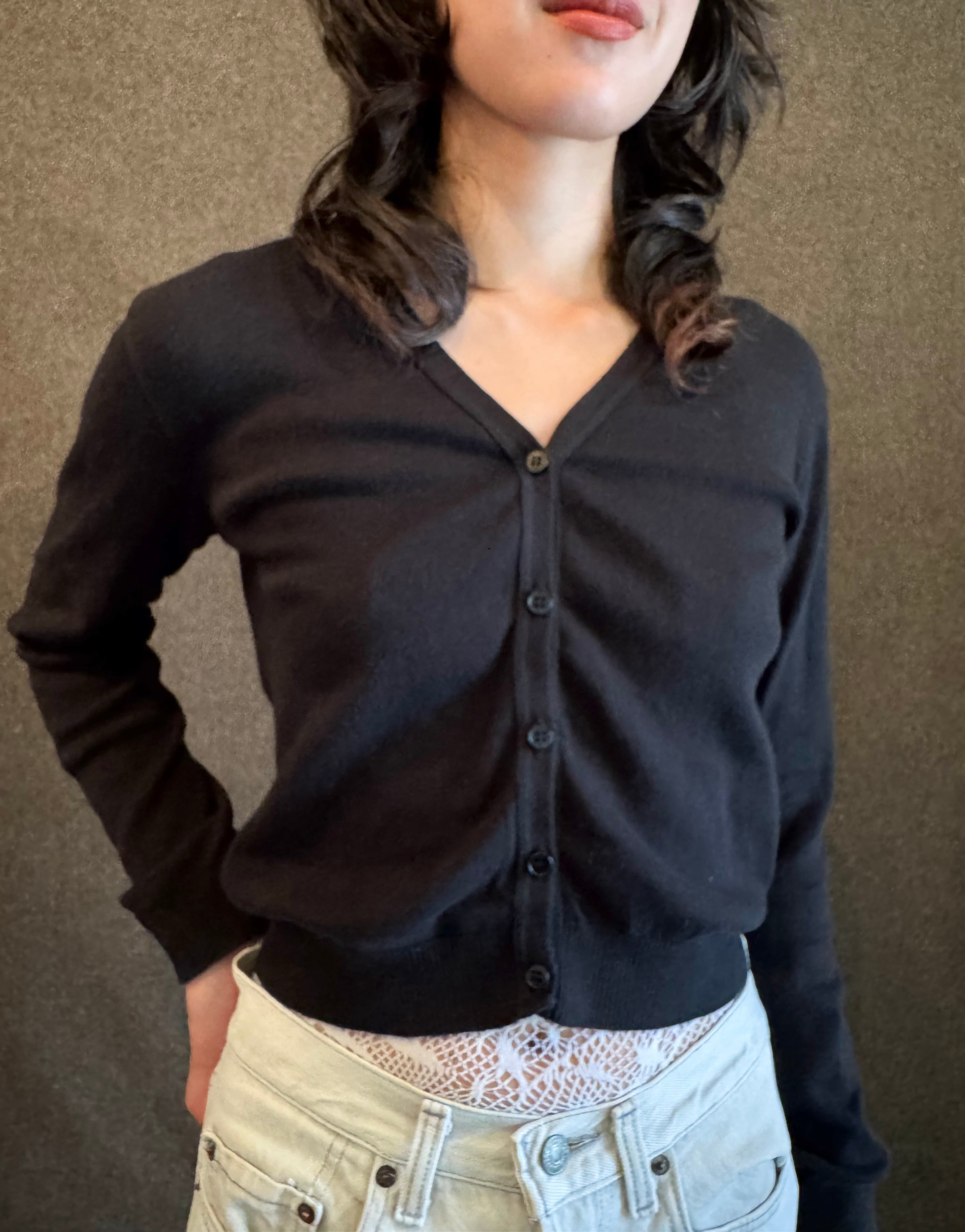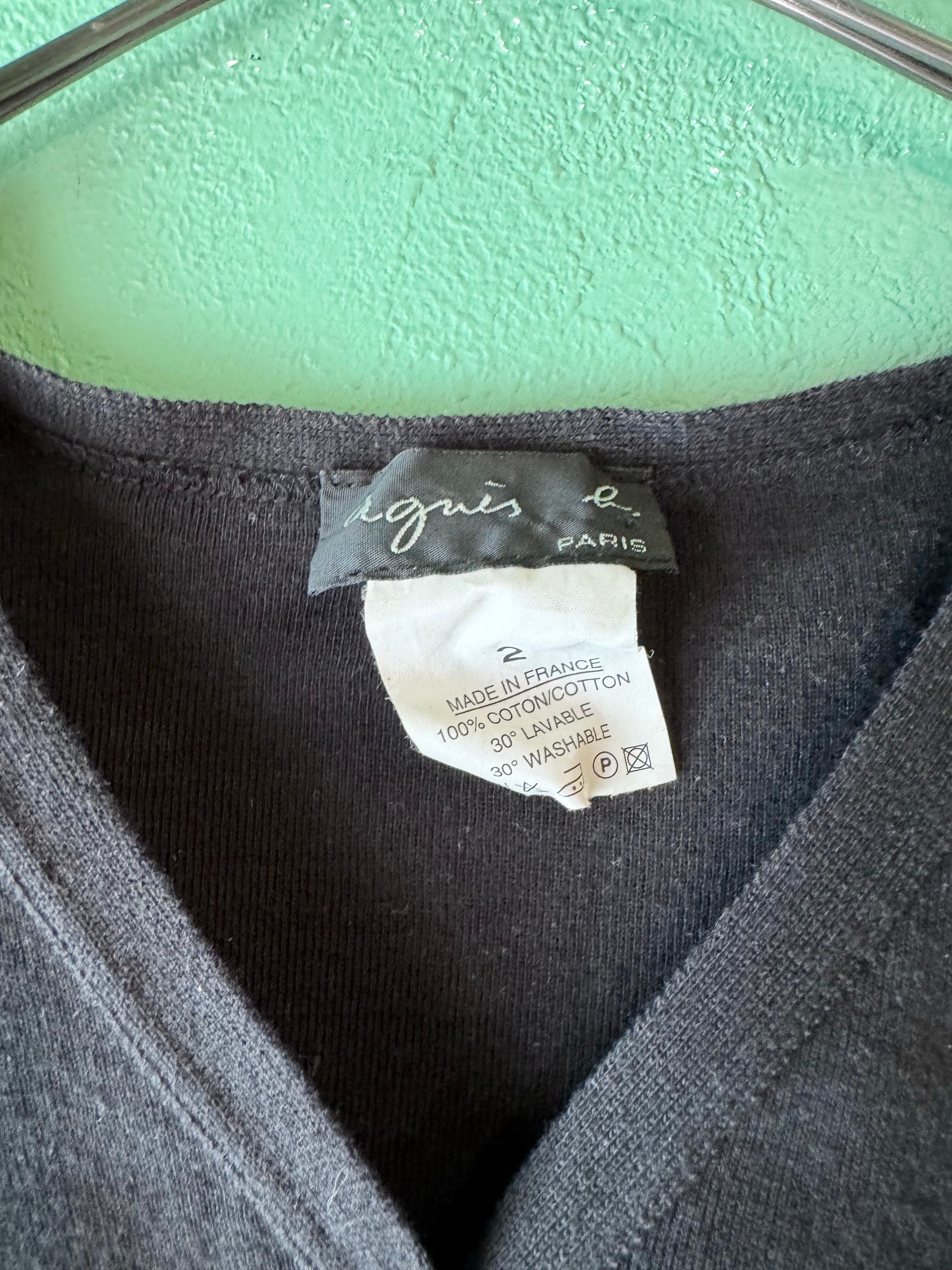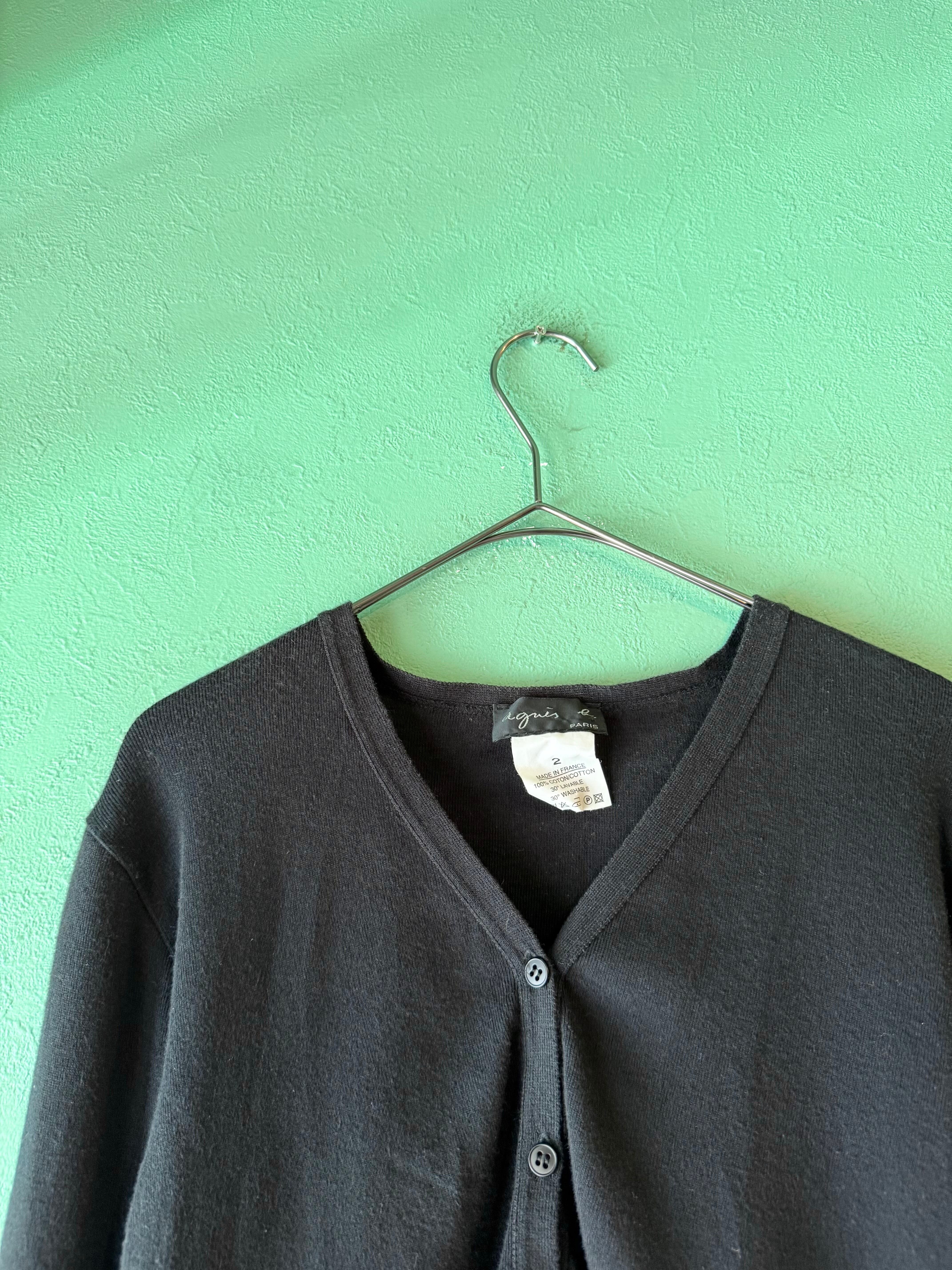 無地でシンプルですが実は古いアニエスベーなのが良く、薄手のハイゲージなのでインナーにも使いやすく重宝する1着かと思います。