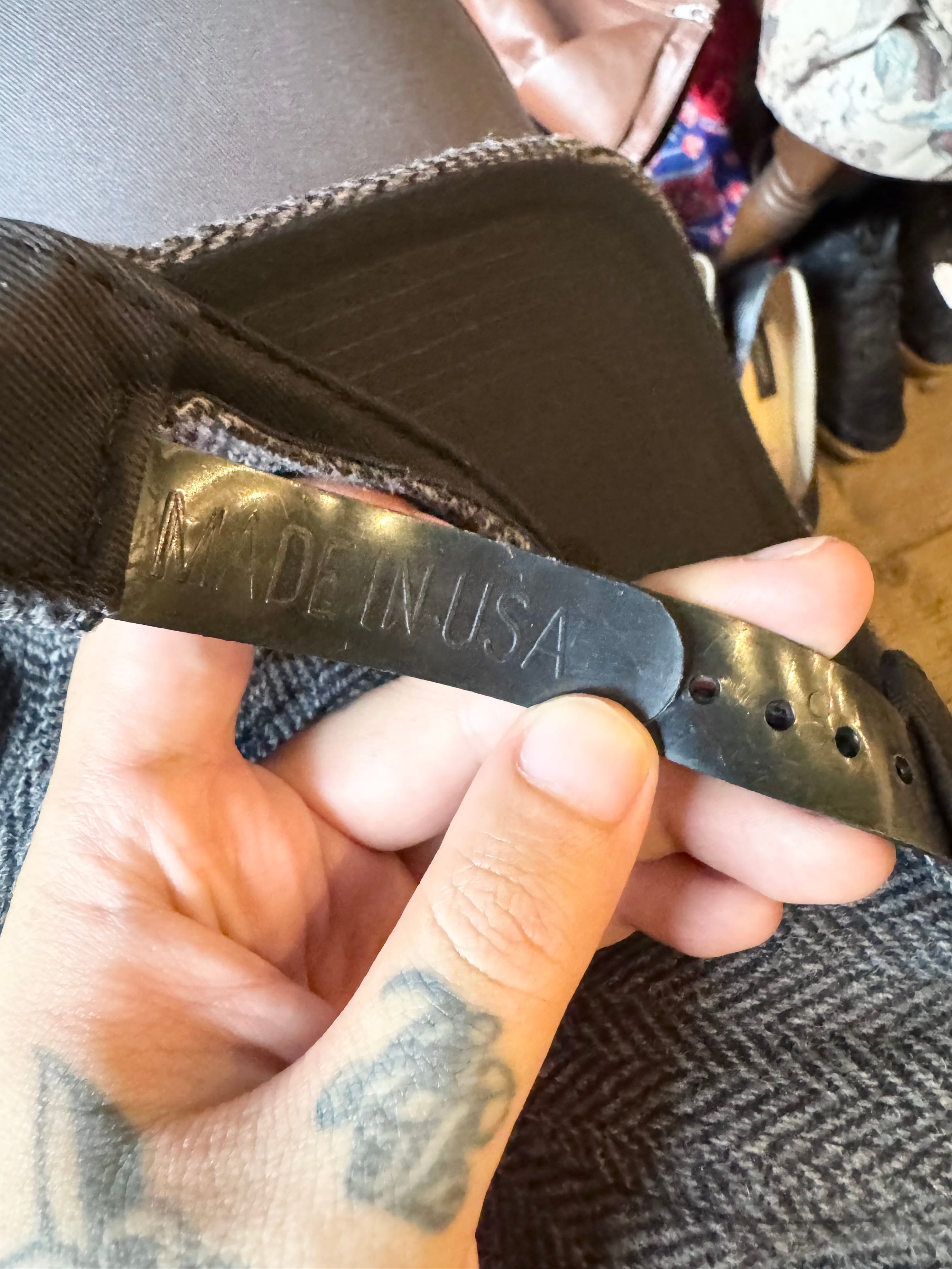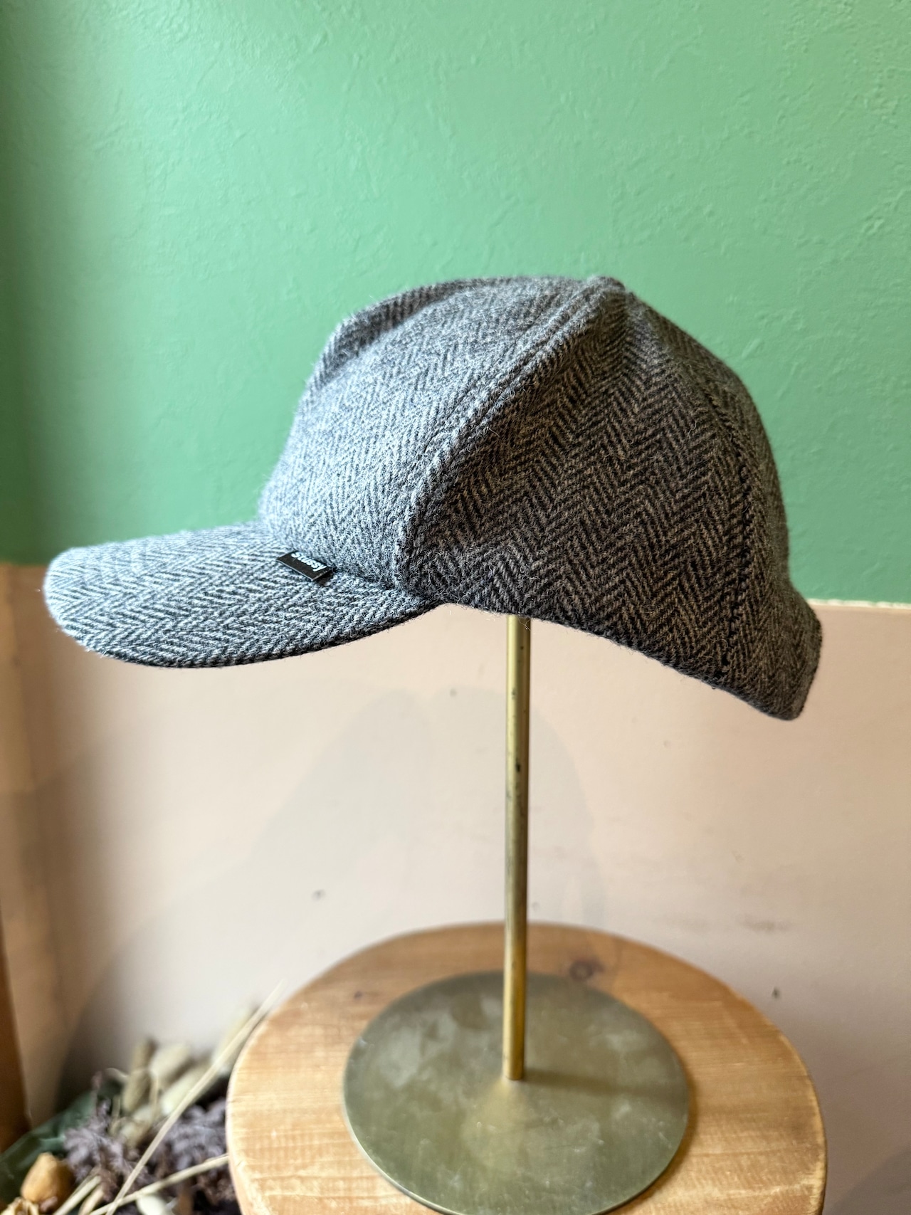 クラシックなウールツイード生地にフロントのピスネームのみのシンプルなデザインになっています。