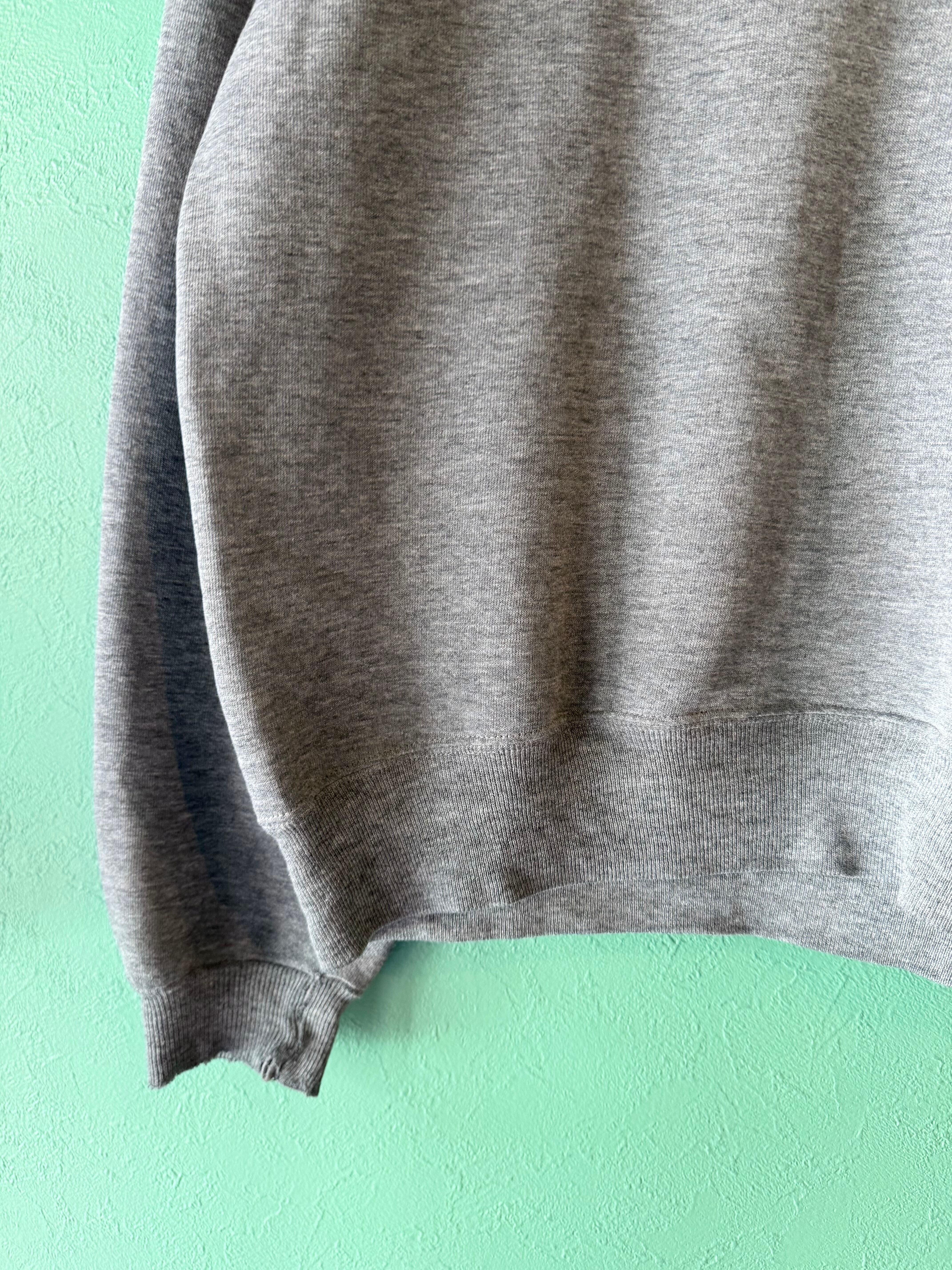 ヴィンテージらしい杢グレーボディーにアメリカ古着でよく見かけるネック部分のスリットリメイク、両袖にダメージとリペアがありますがそれもまた雰囲気抜群です。