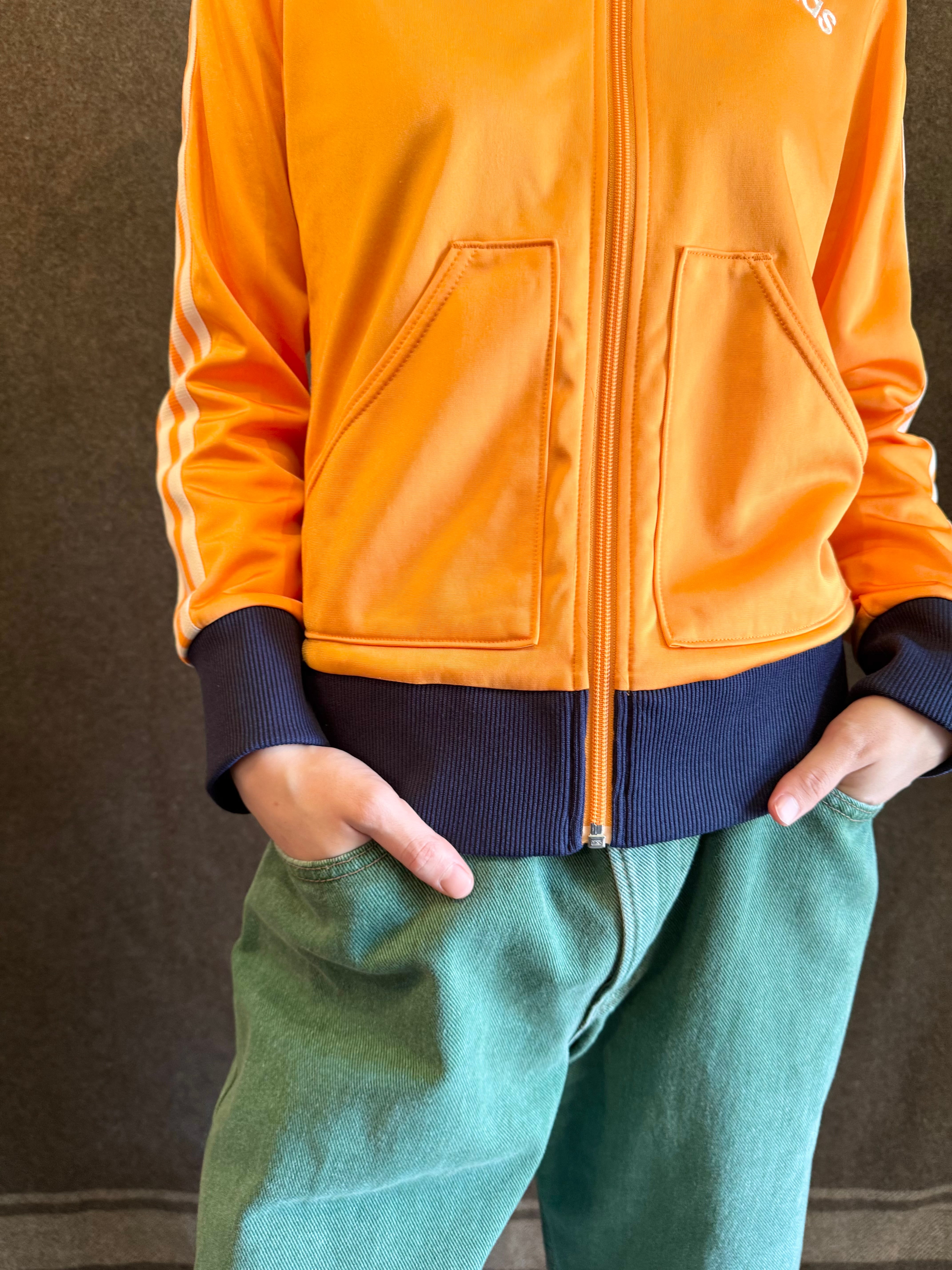 こちらは可愛らしいオレンジカラーにリブがネイビーに切り替わったオールドライクな可愛いデザインになっています。
