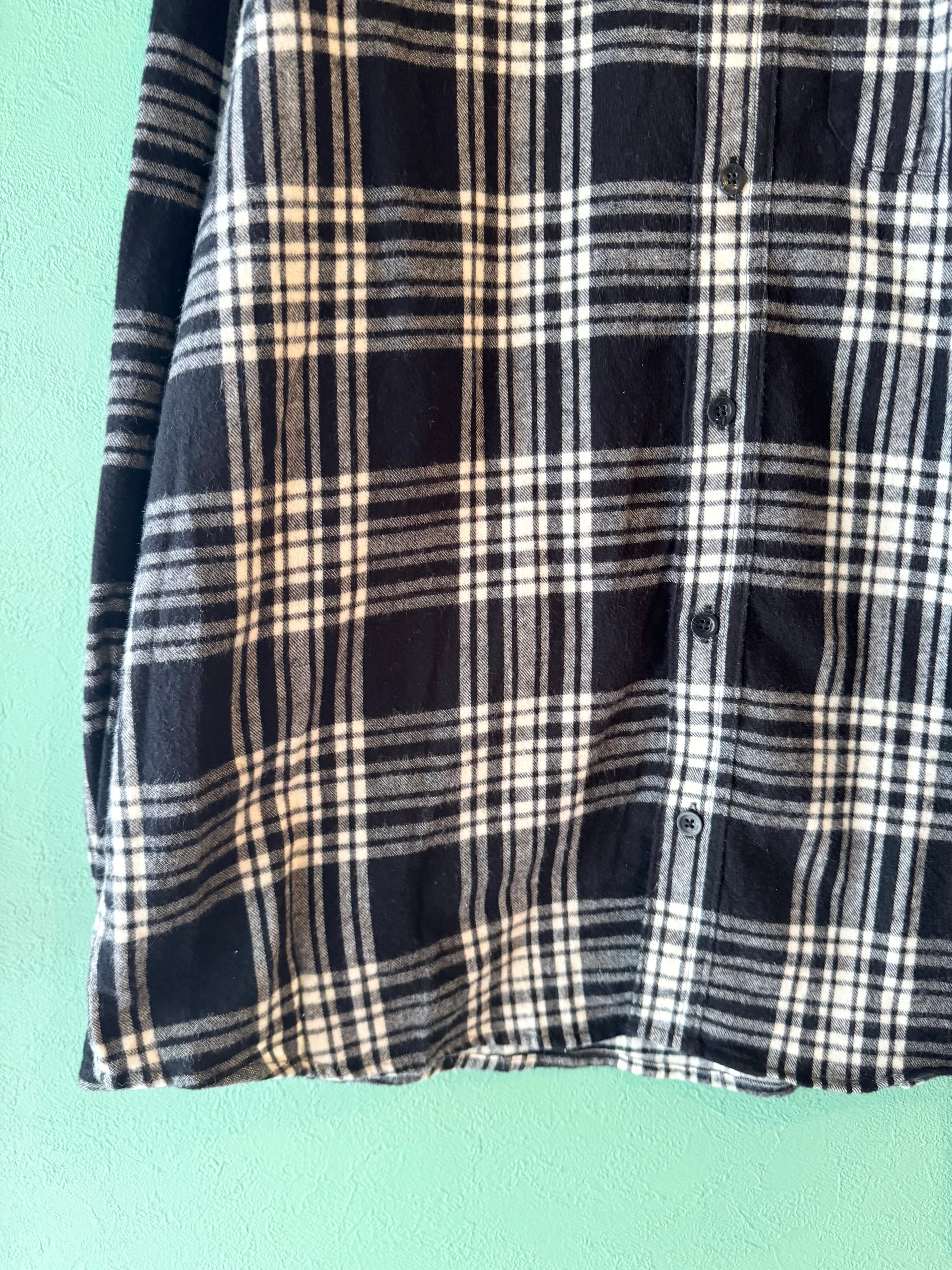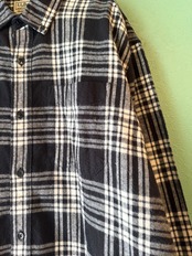 こちらはホワイト×ブラックのモノトーンカラーのチェックパターンシャツ。