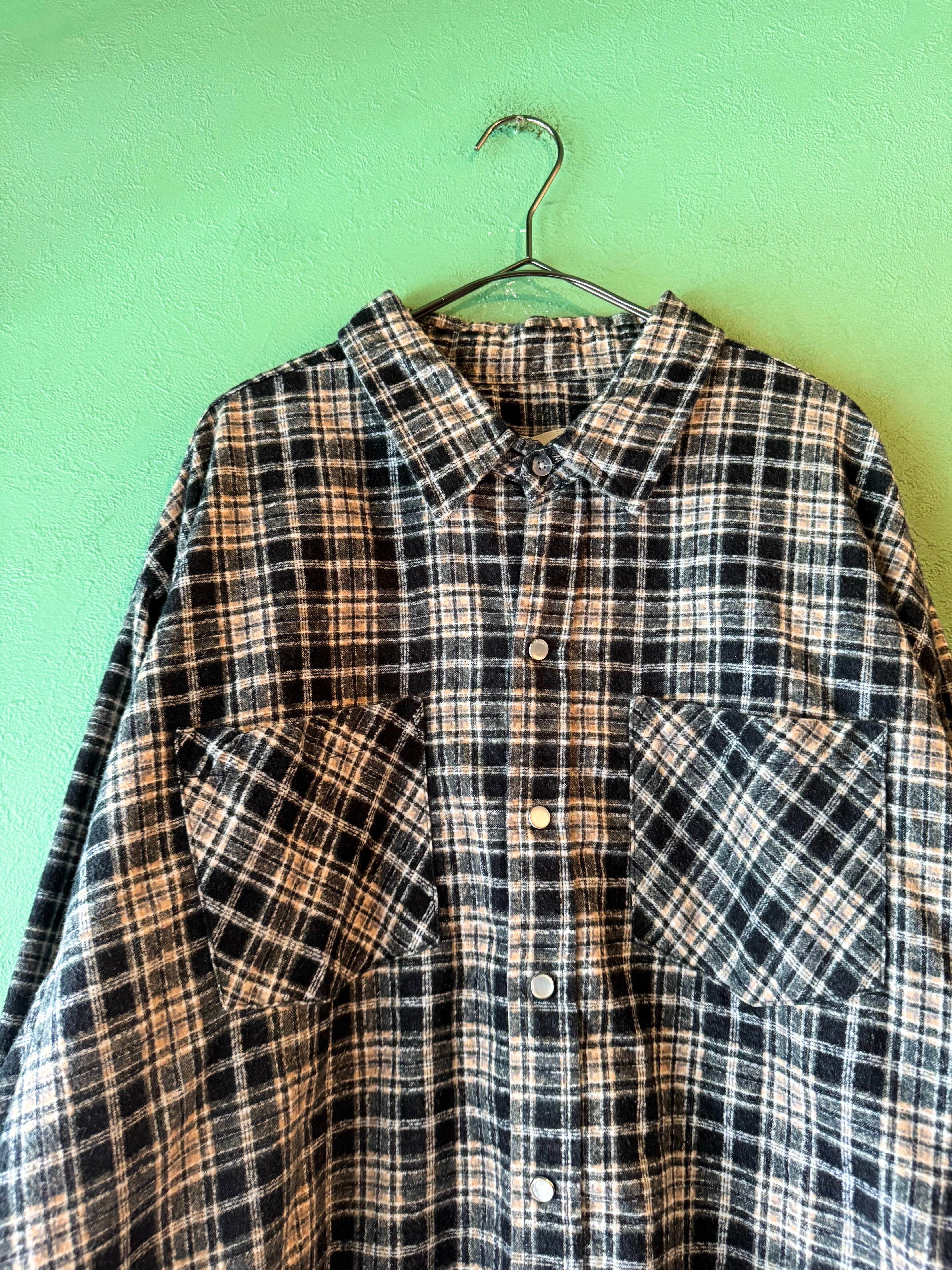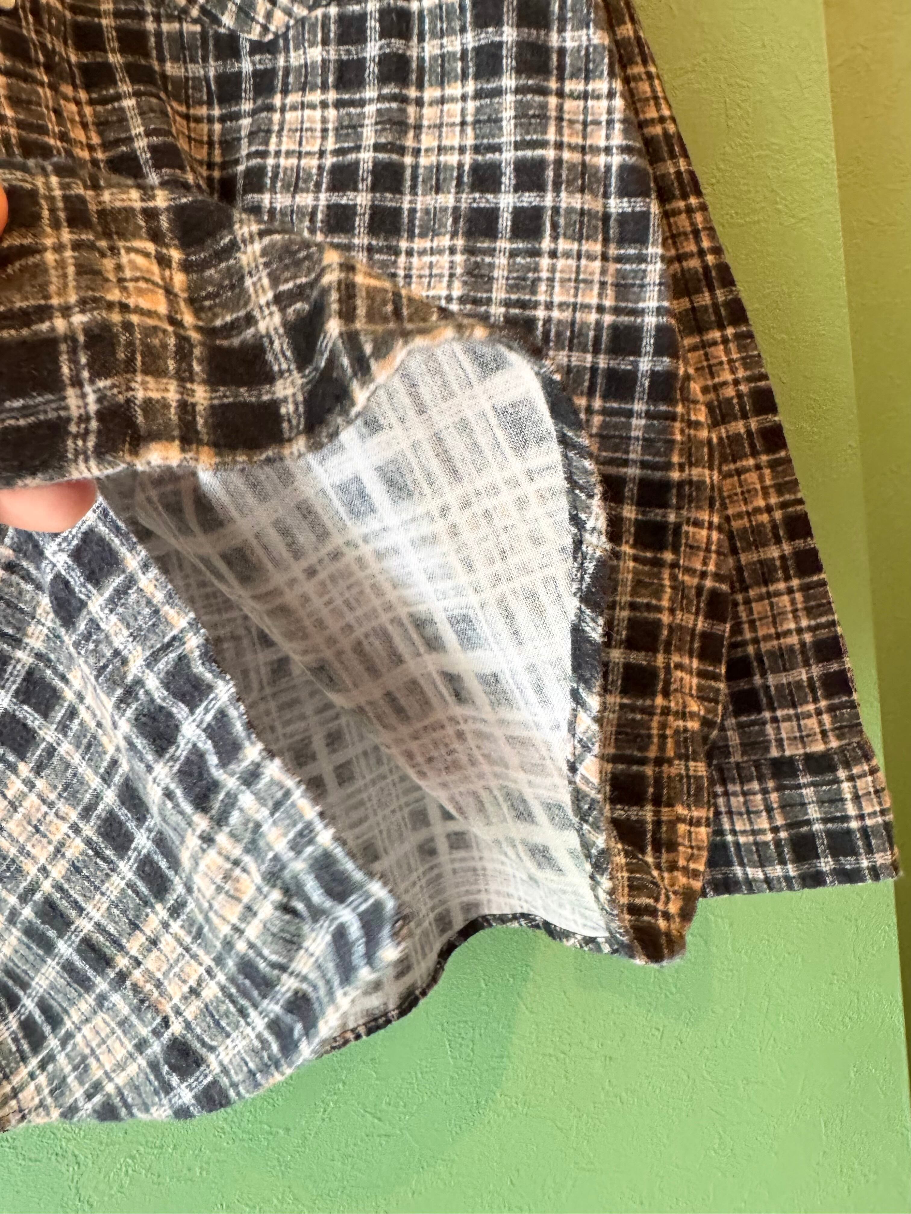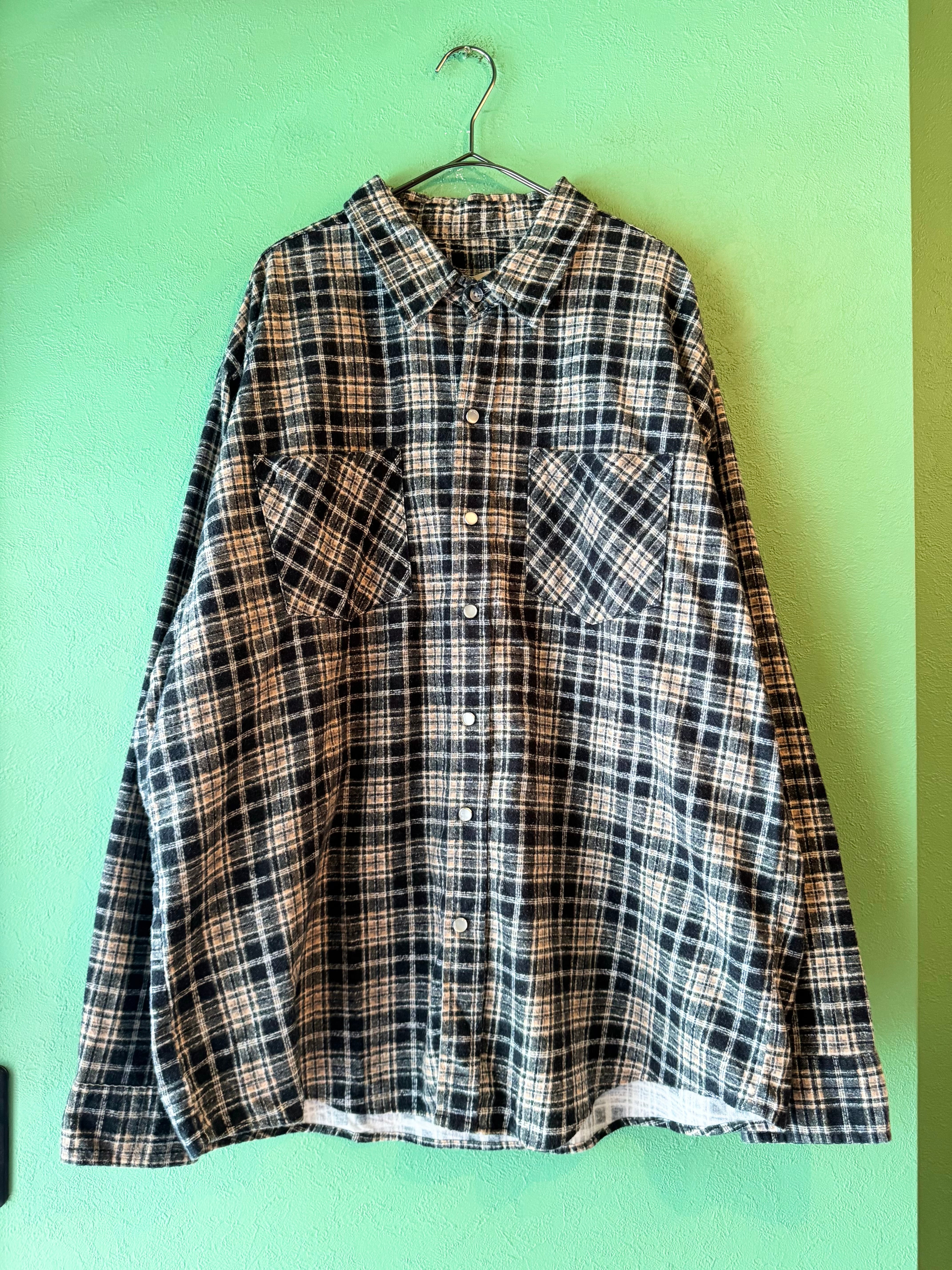 こちらはベージュ×ブラックの渋くてカッコいいカラーリングのチェックシャツ。