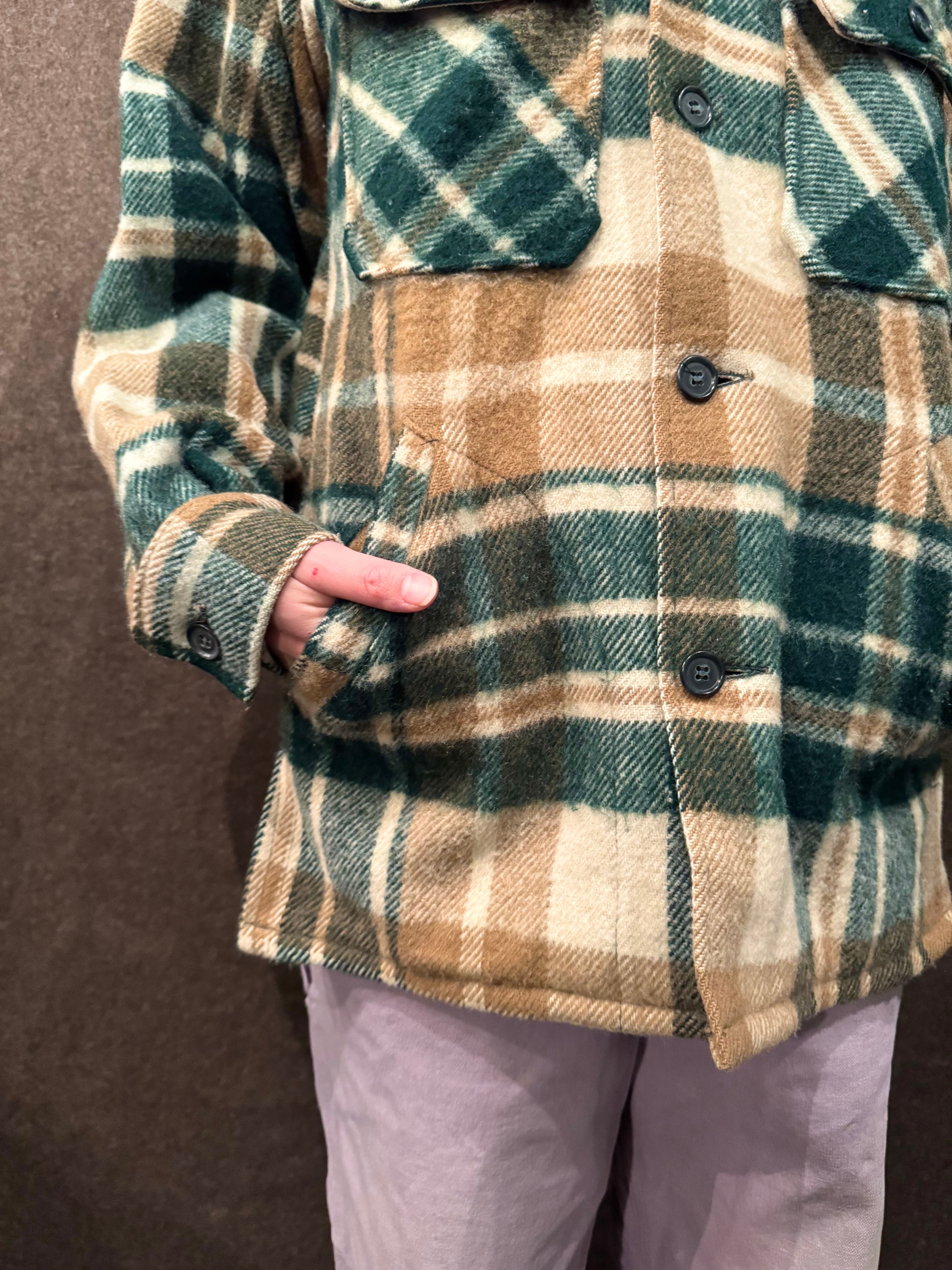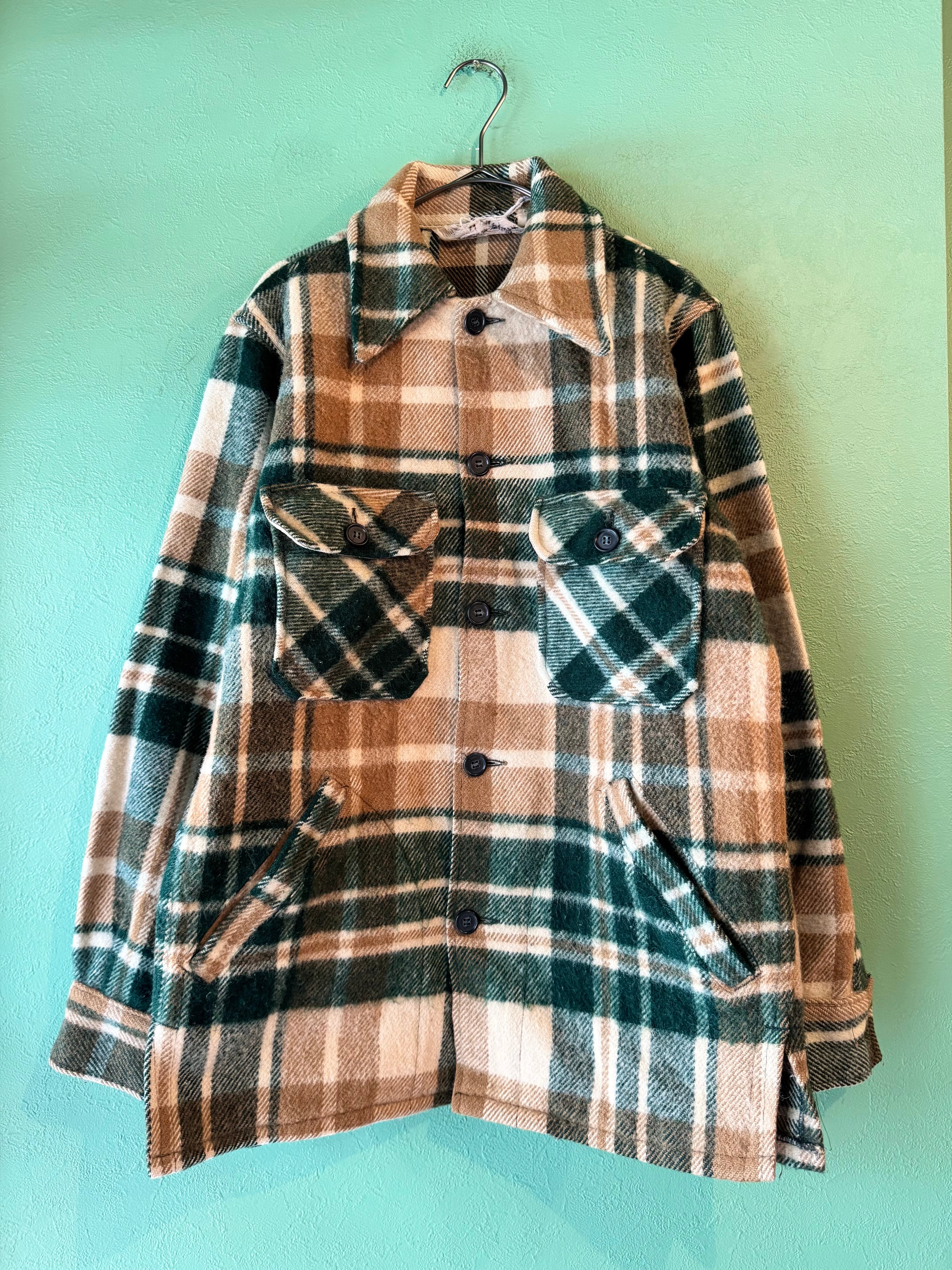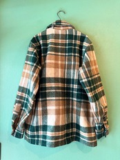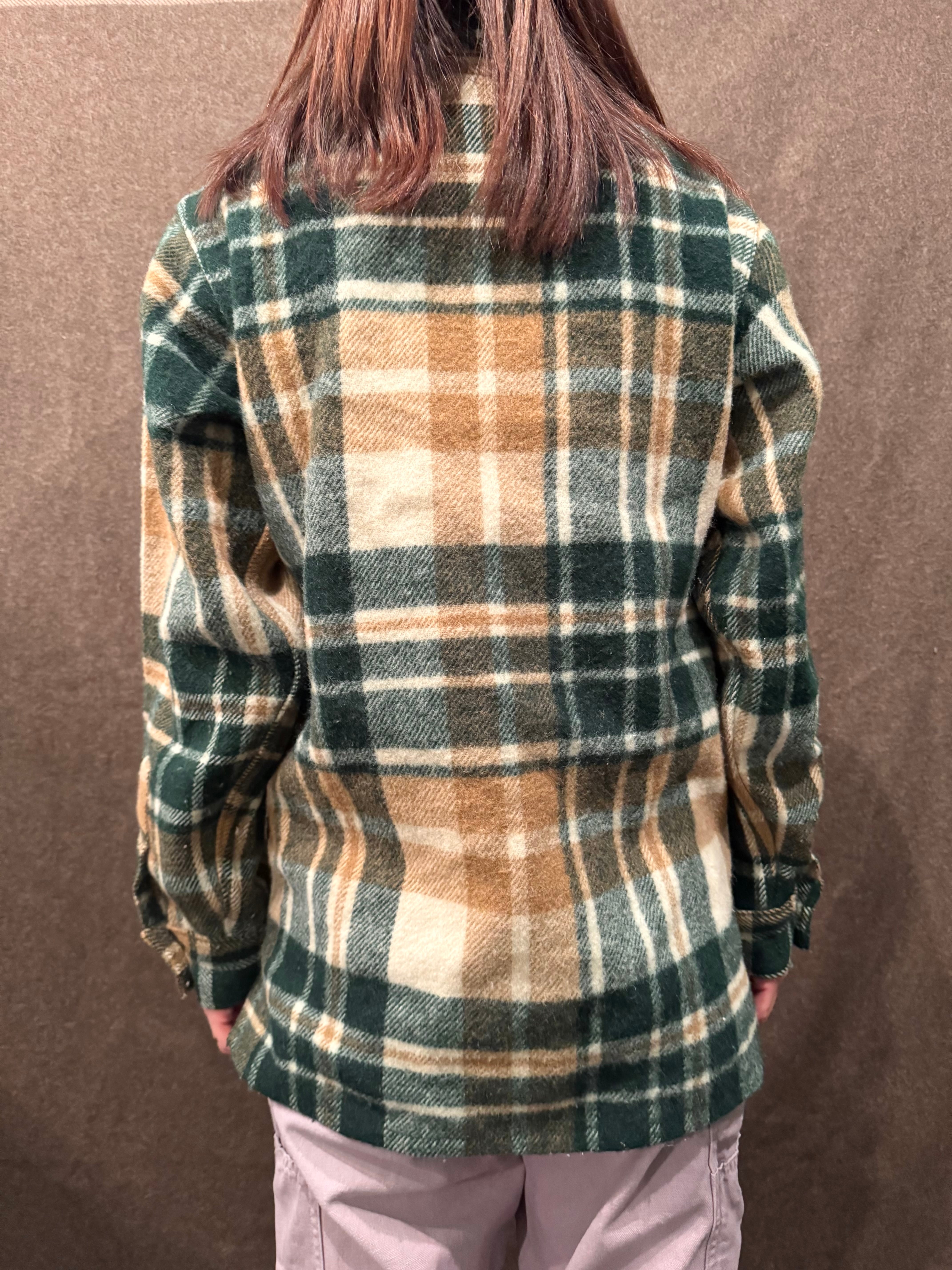 こちらは可愛らしいグリーン×ベージュ×ホワイトのカラーリングのチェックパターンウールジャケット。
