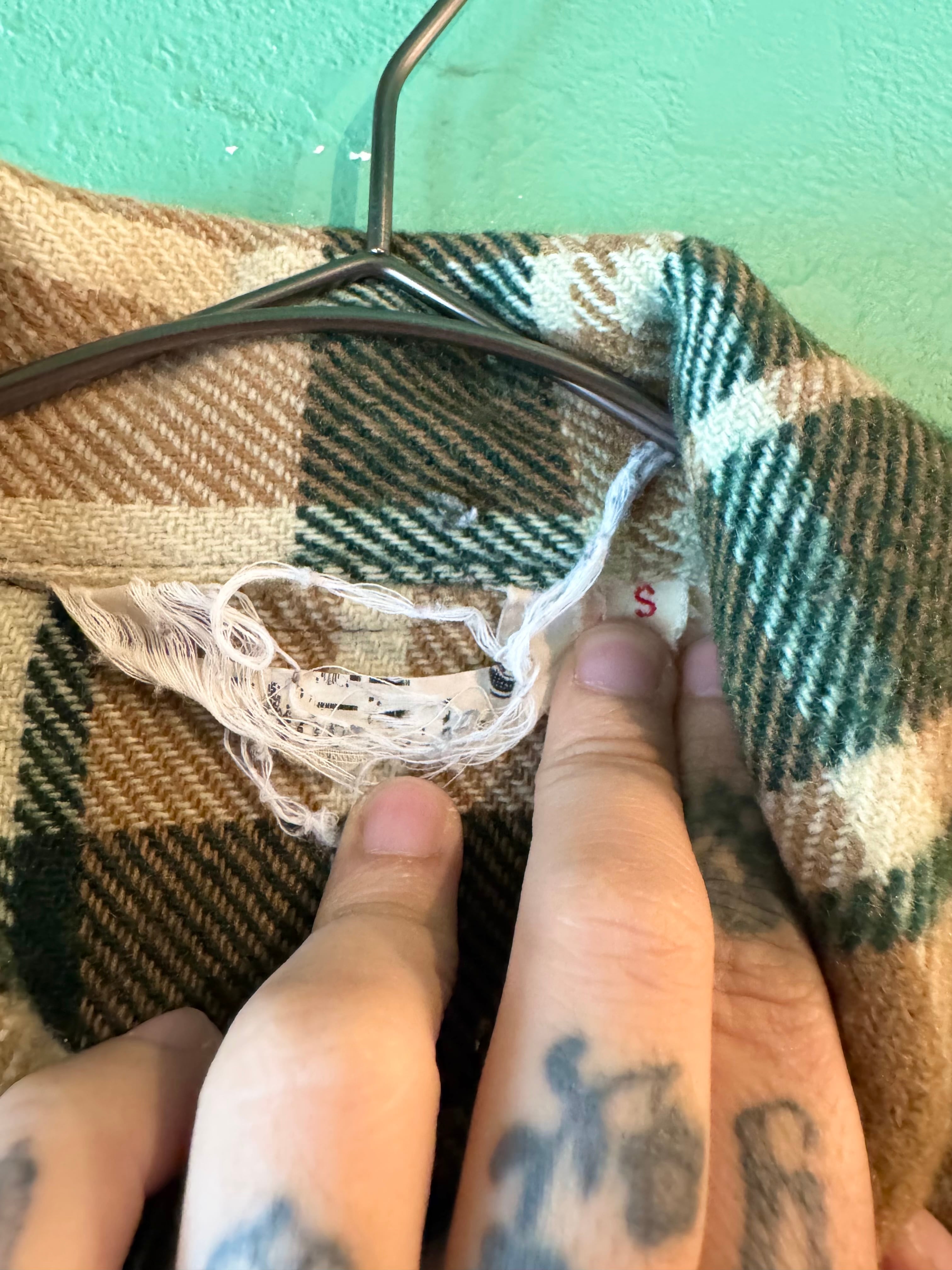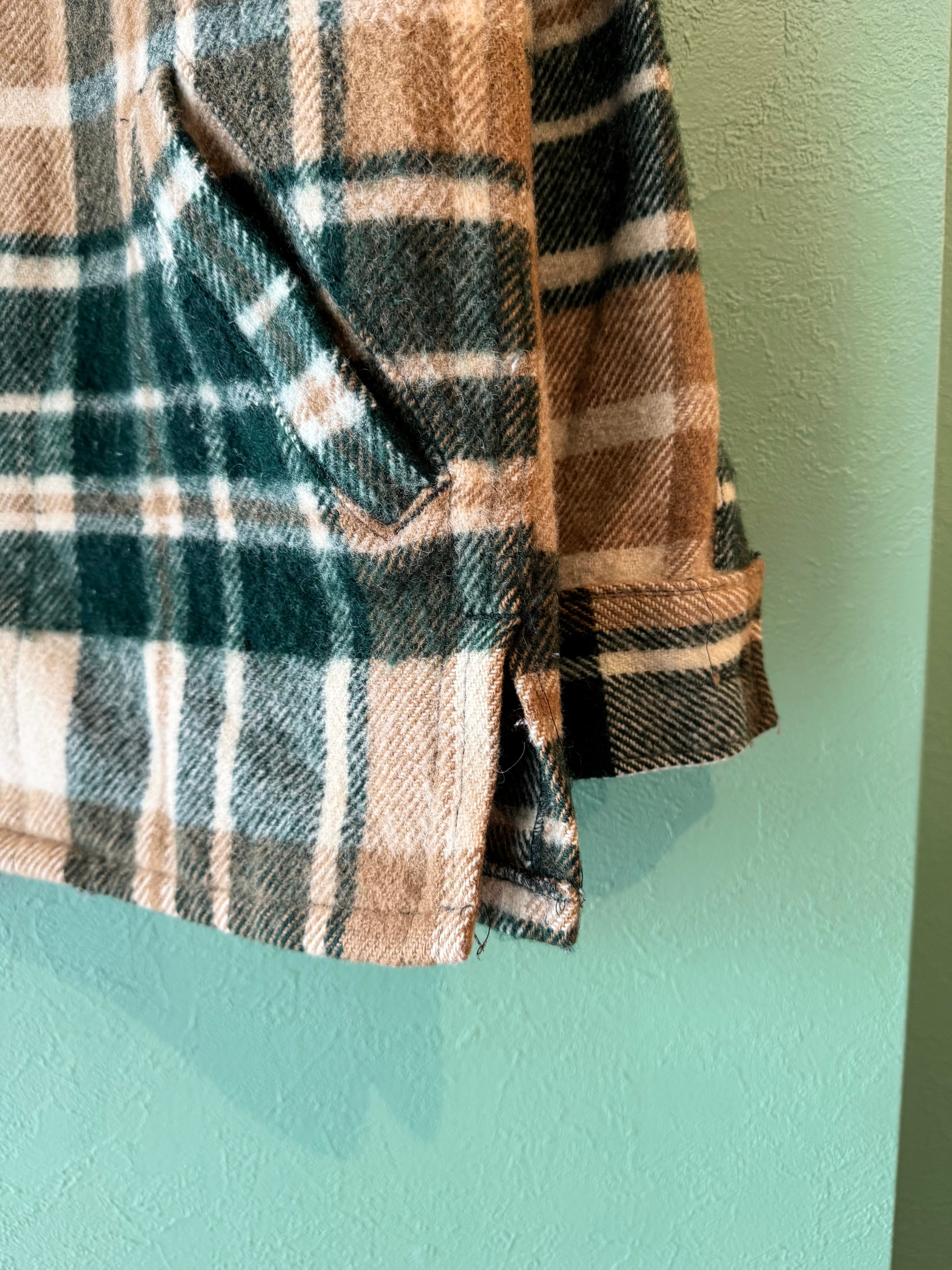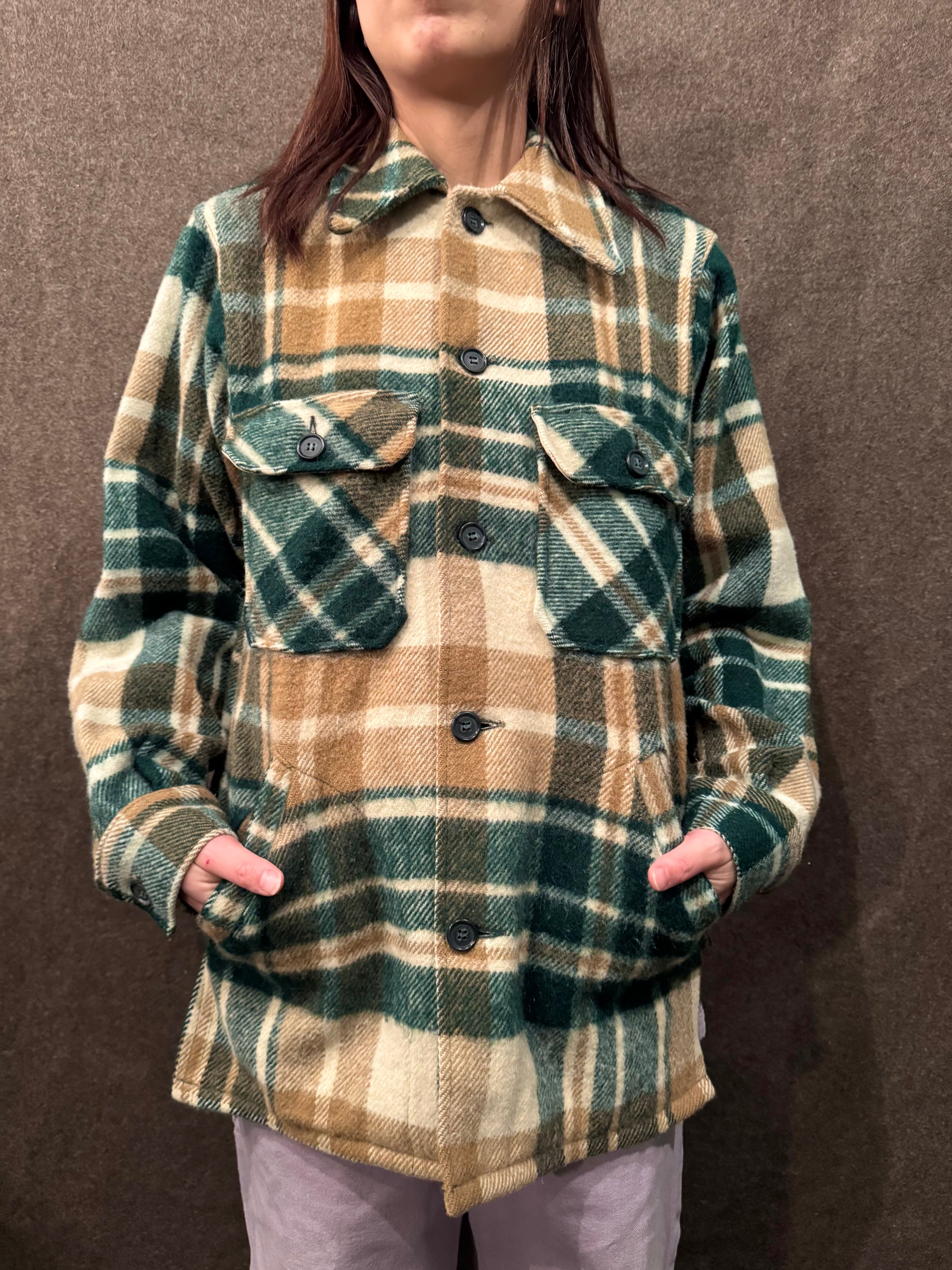こちらは可愛らしいグリーン×ベージュ×ホワイトのカラーリングのチェックパターンウールジャケット。