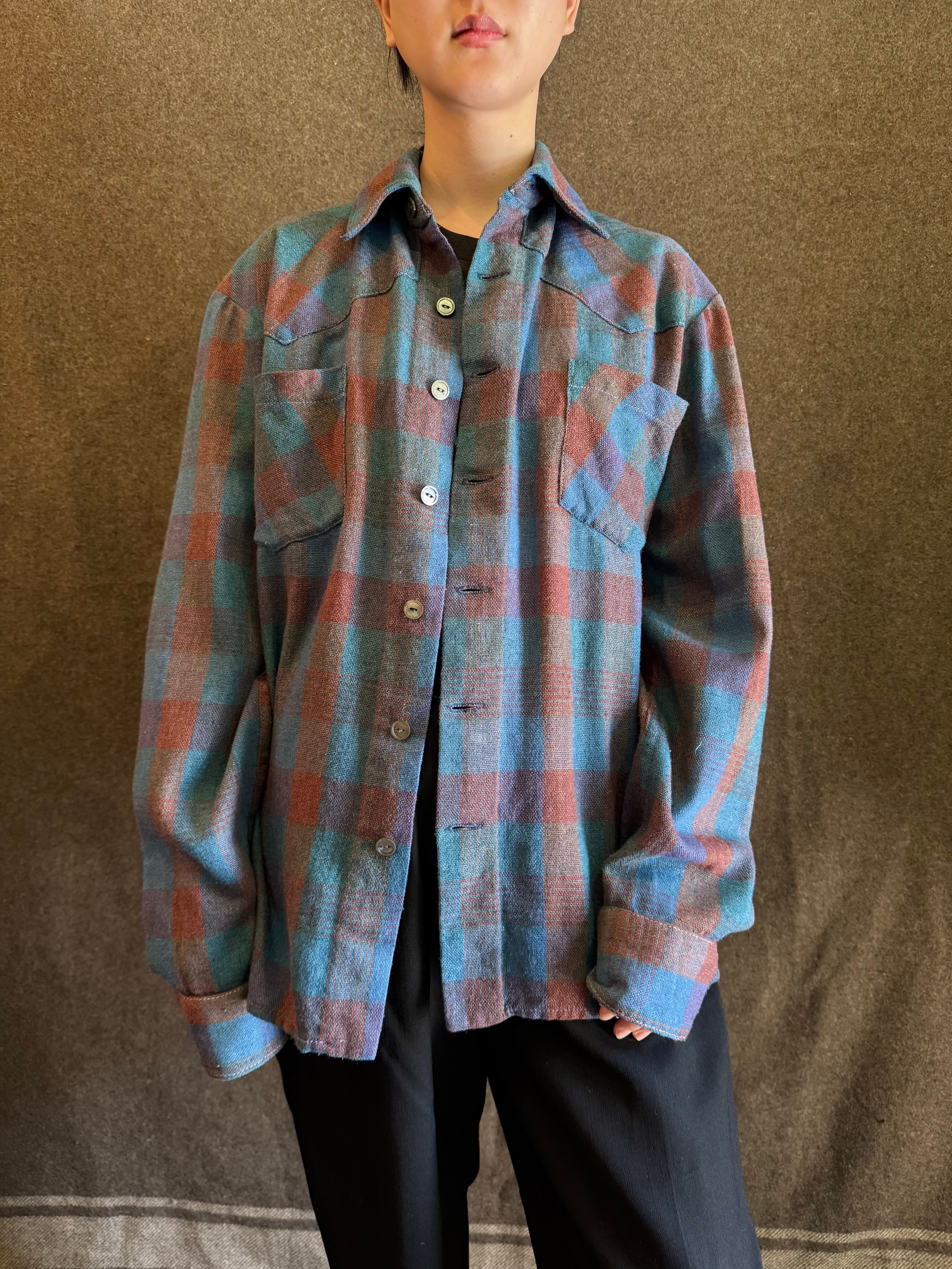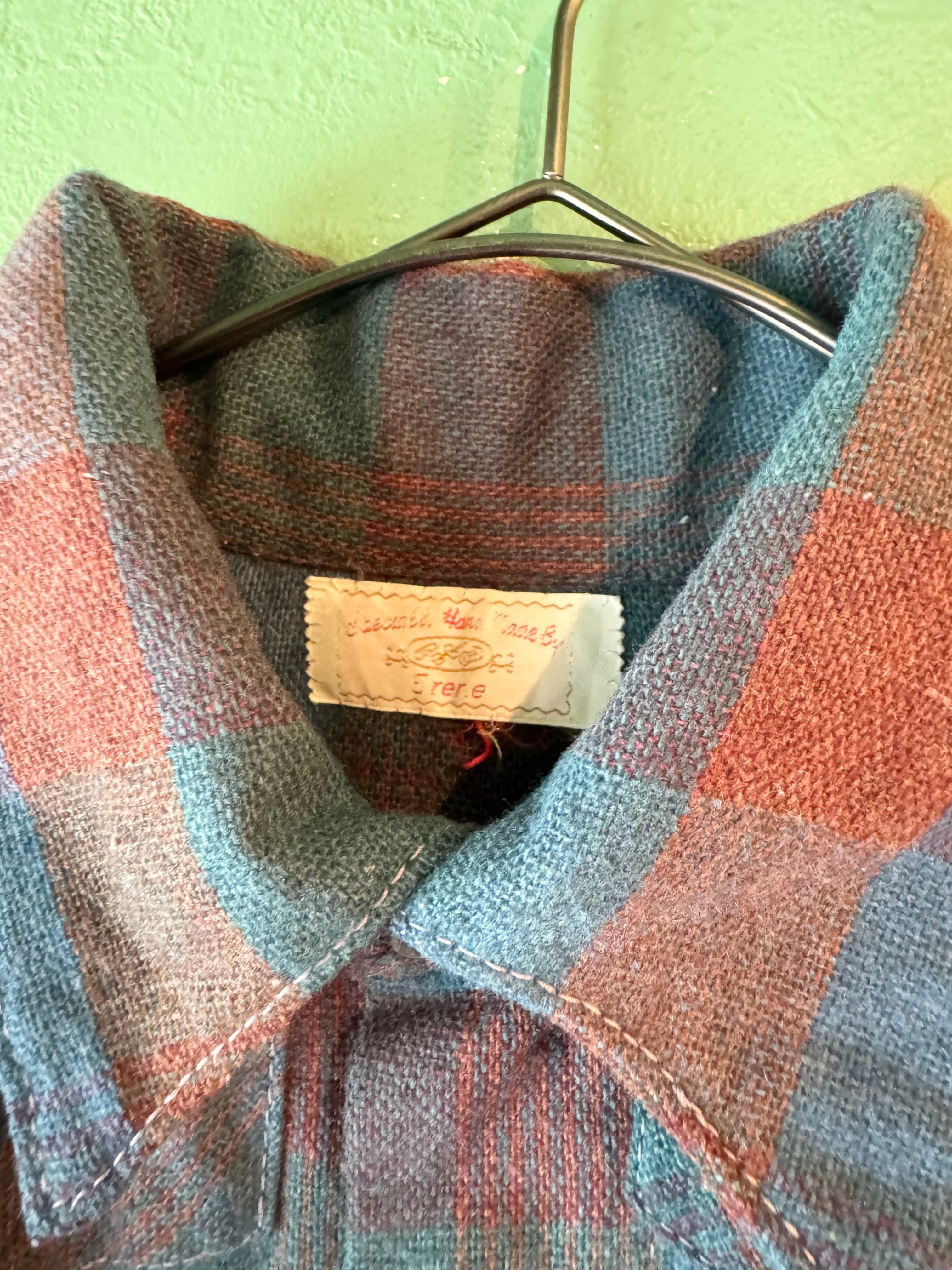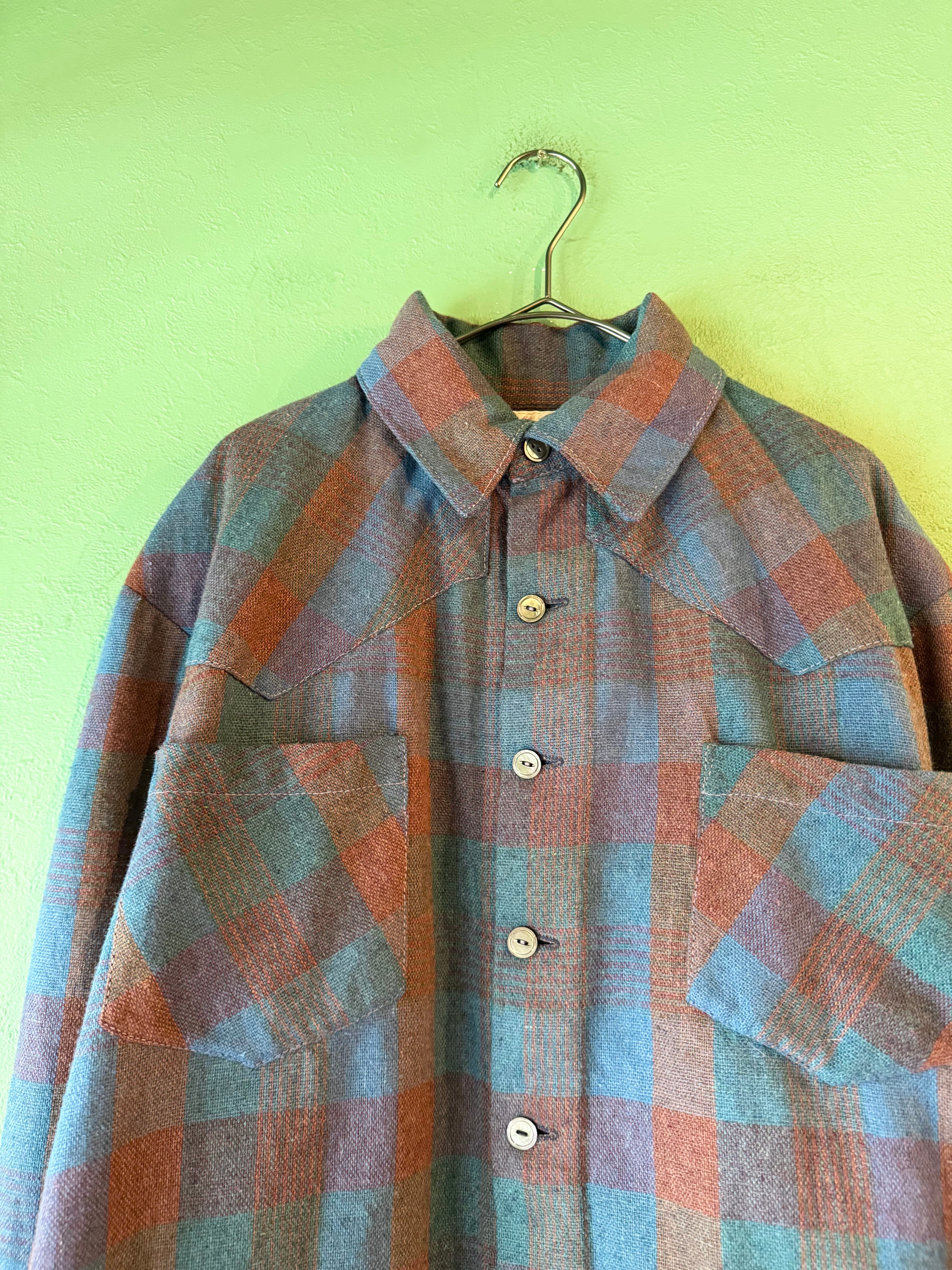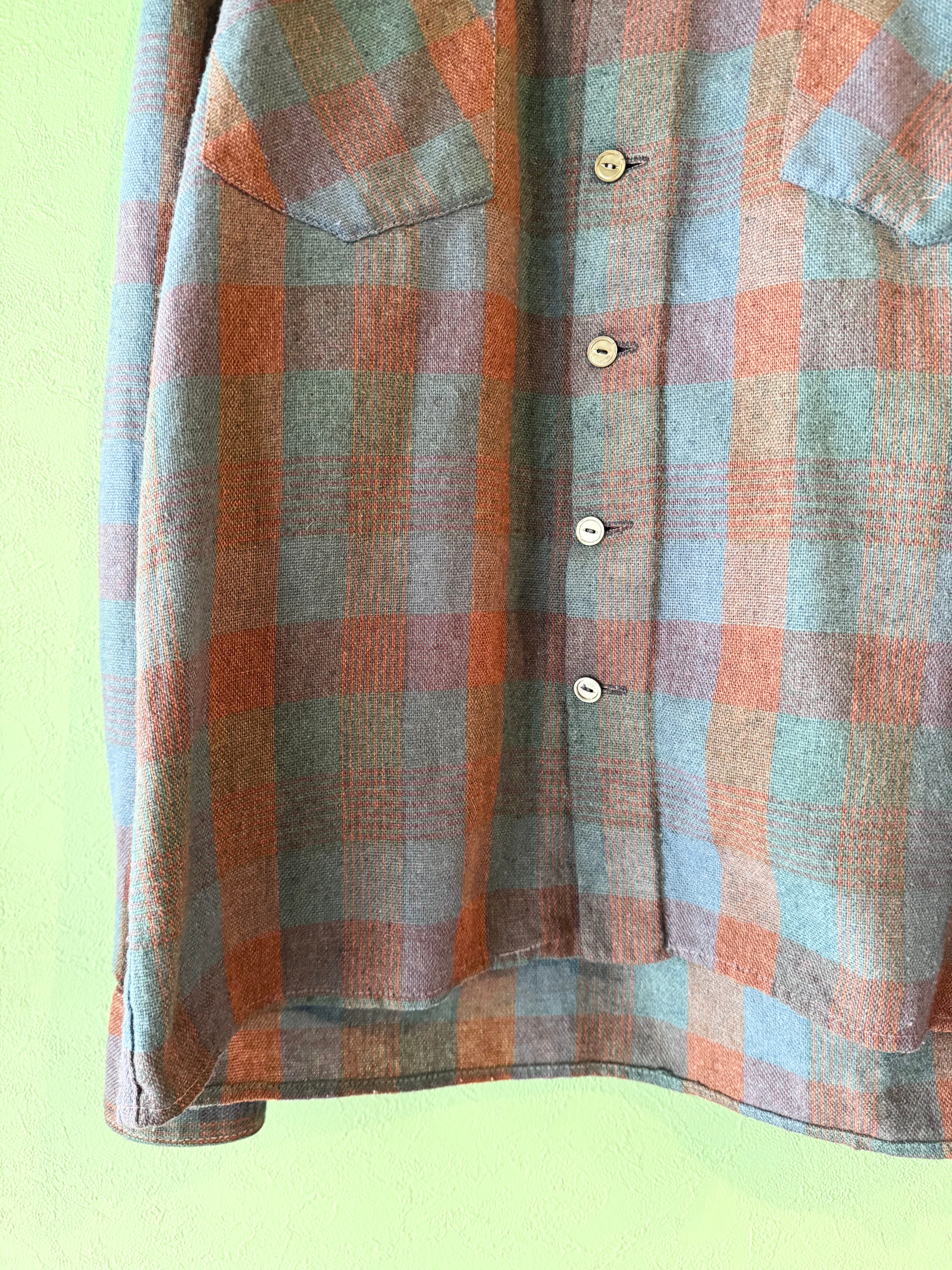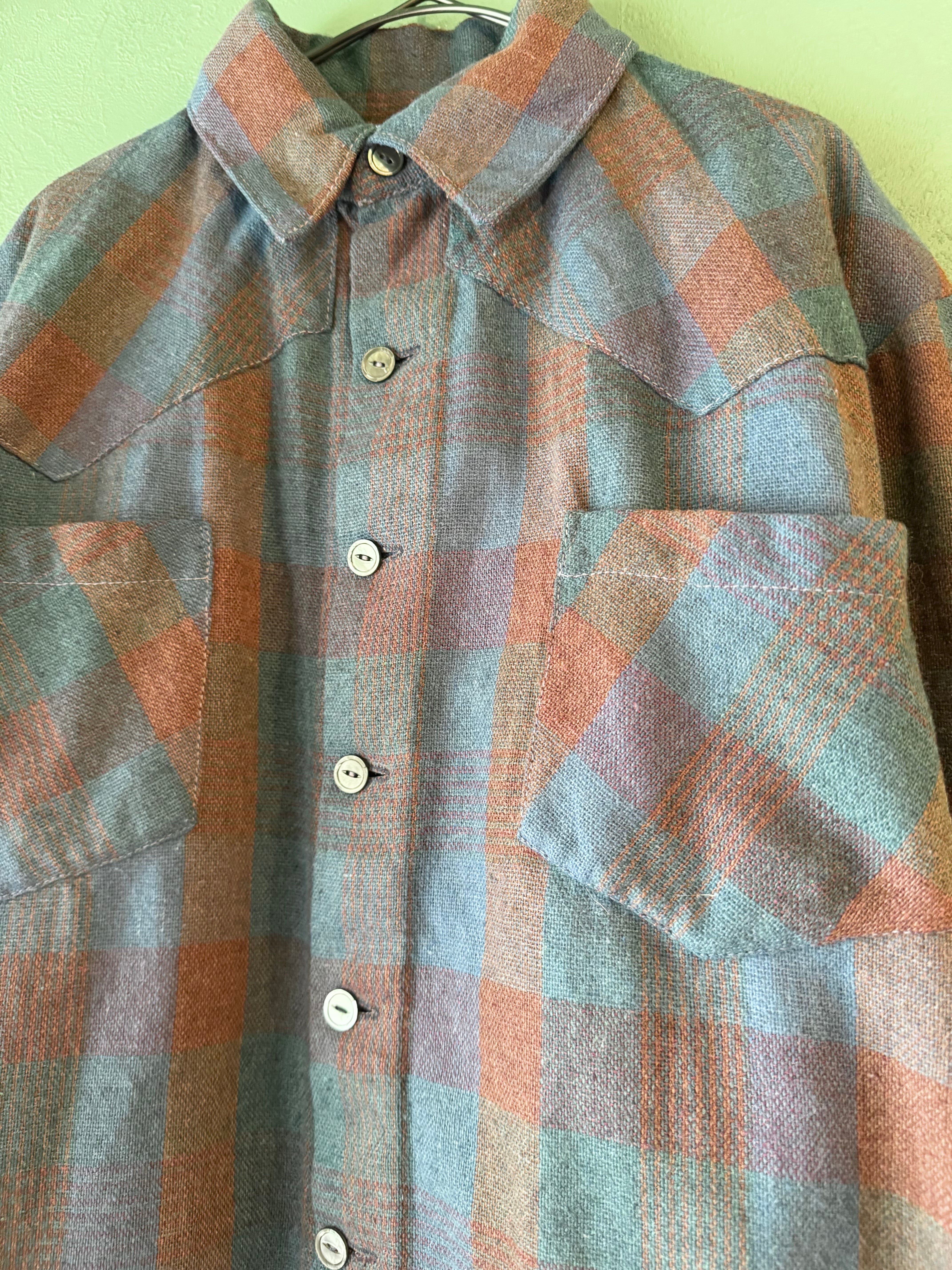 こちらは淡いブルー×オレンジブラウンを基調としたヴィンテージらしい絶妙なカラーリングの可愛いチェックシャツ。