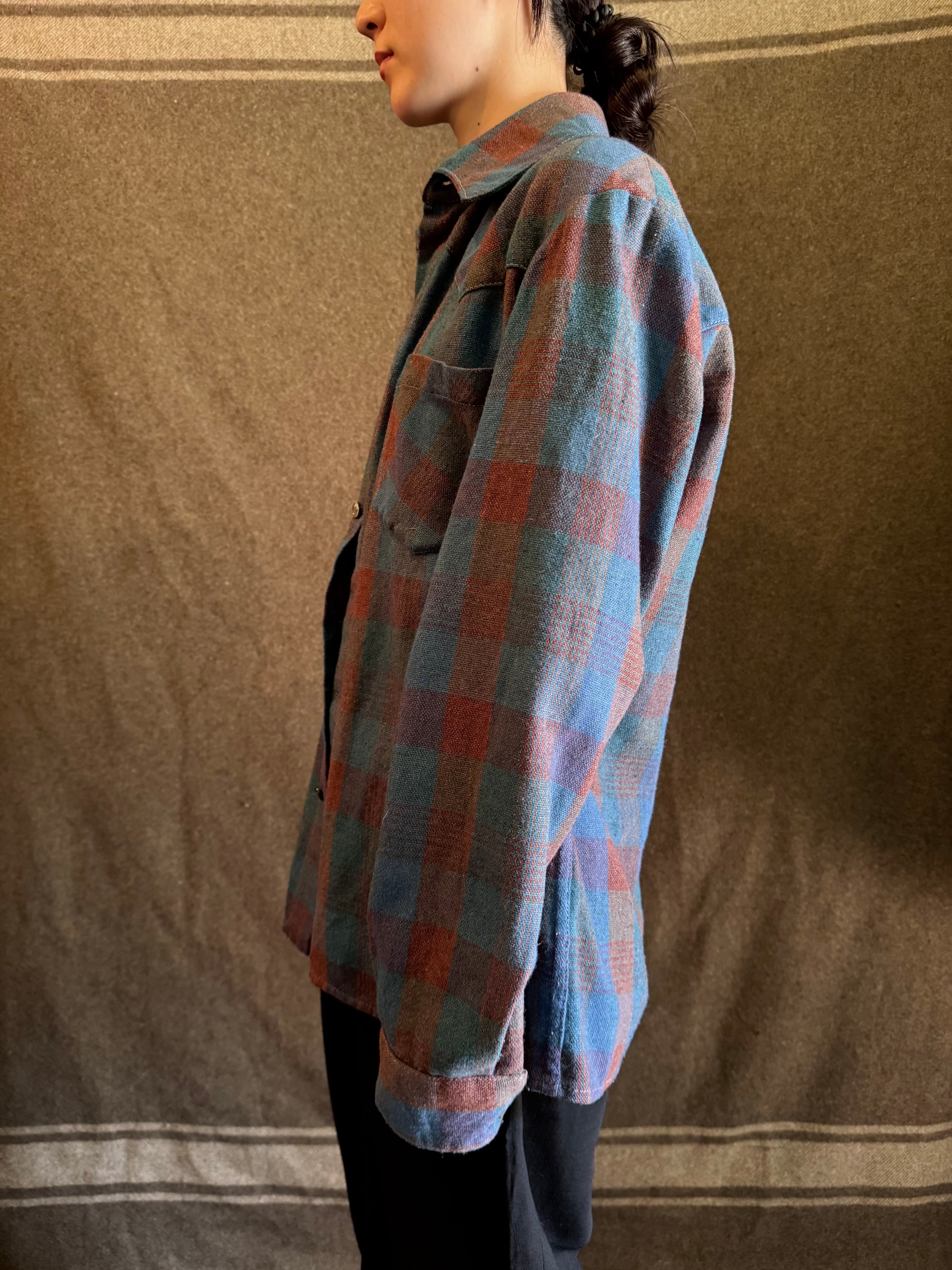 ペンドルトンのボードシャツのようなヴァージンウールを使用している為あまりチクチクしたりせず、身幅のゆったりとしたボックスシルエットになっています。