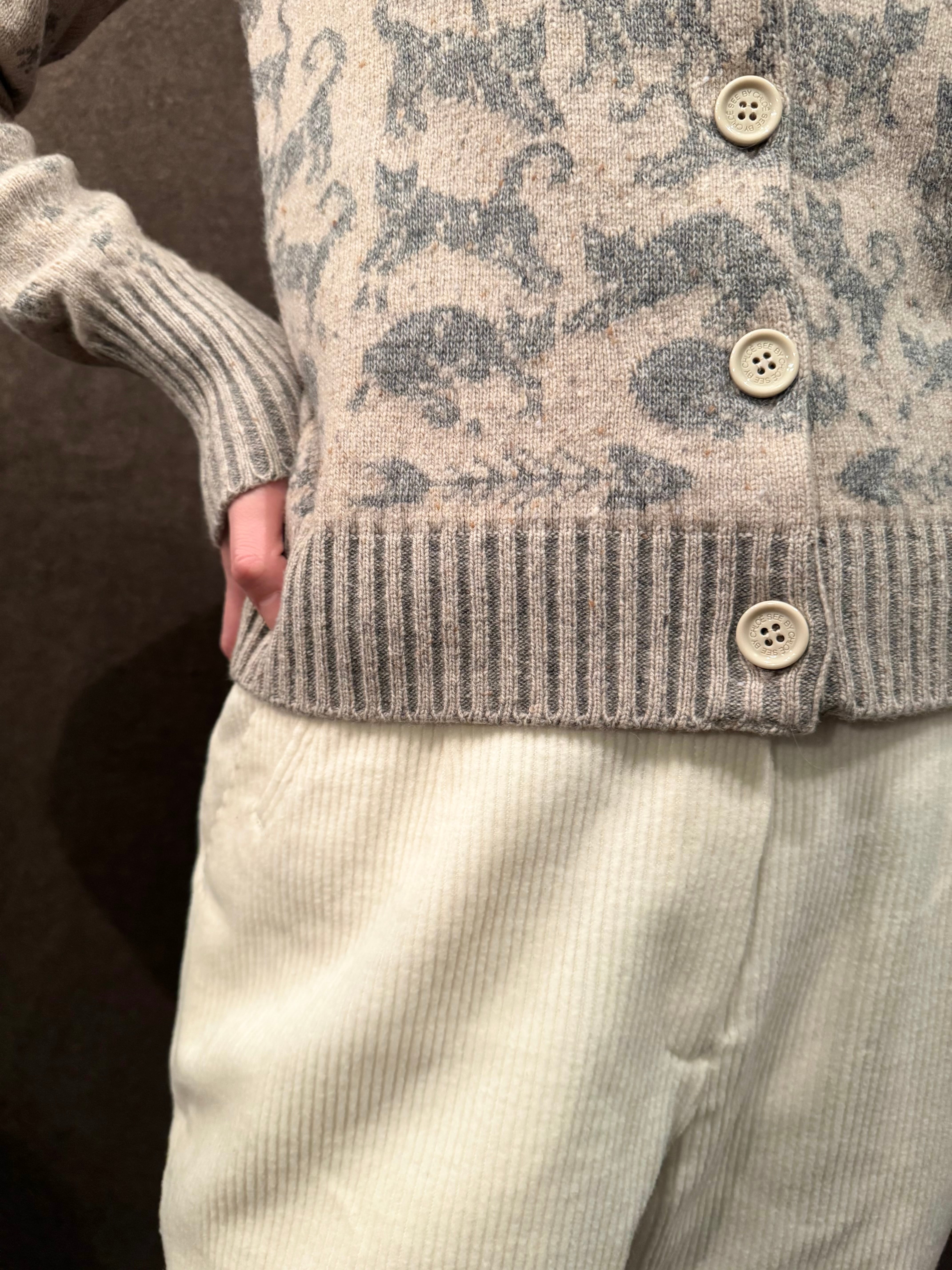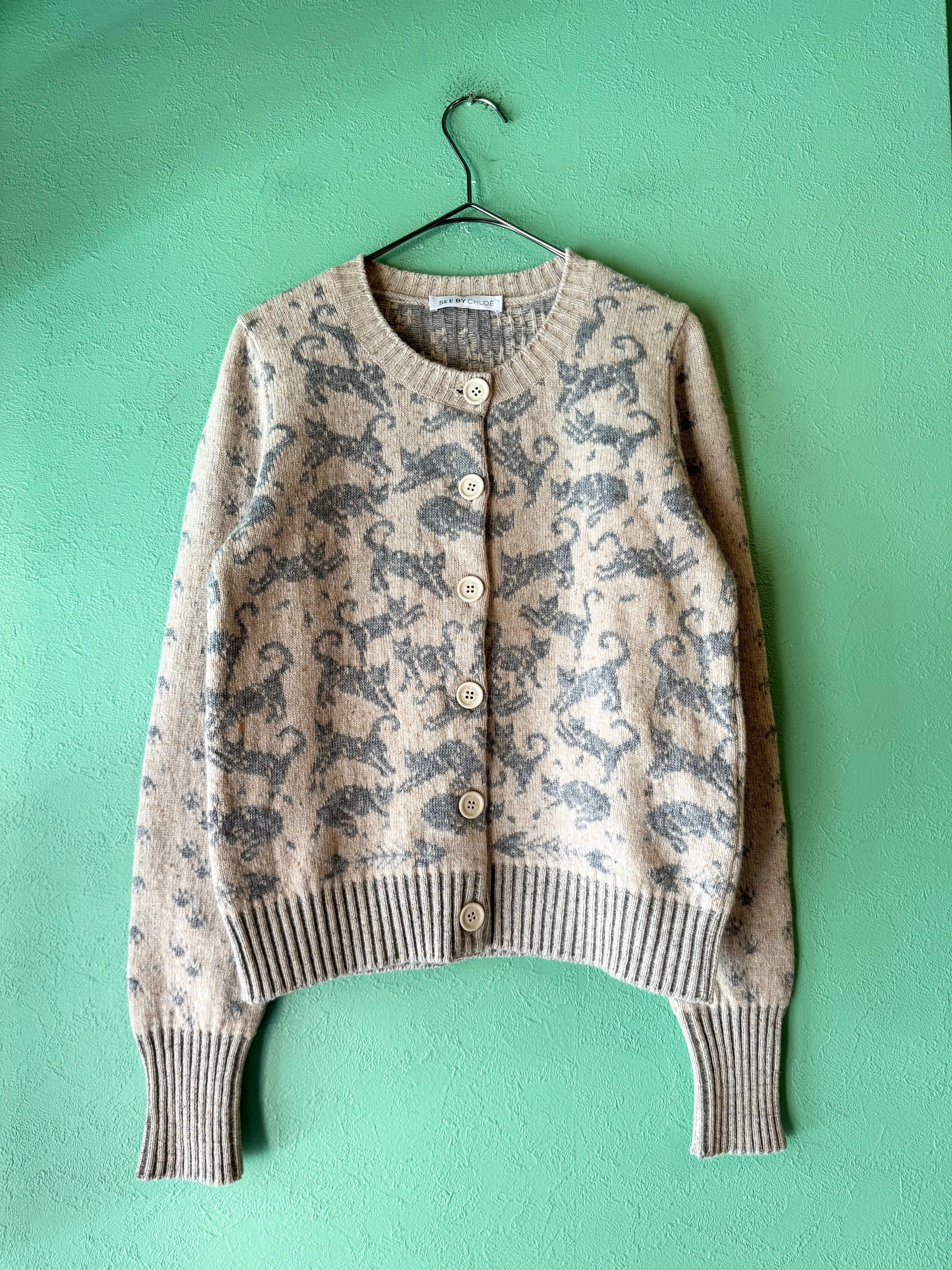 ■シーバイクロエの猫柄ニットカーディガンです。