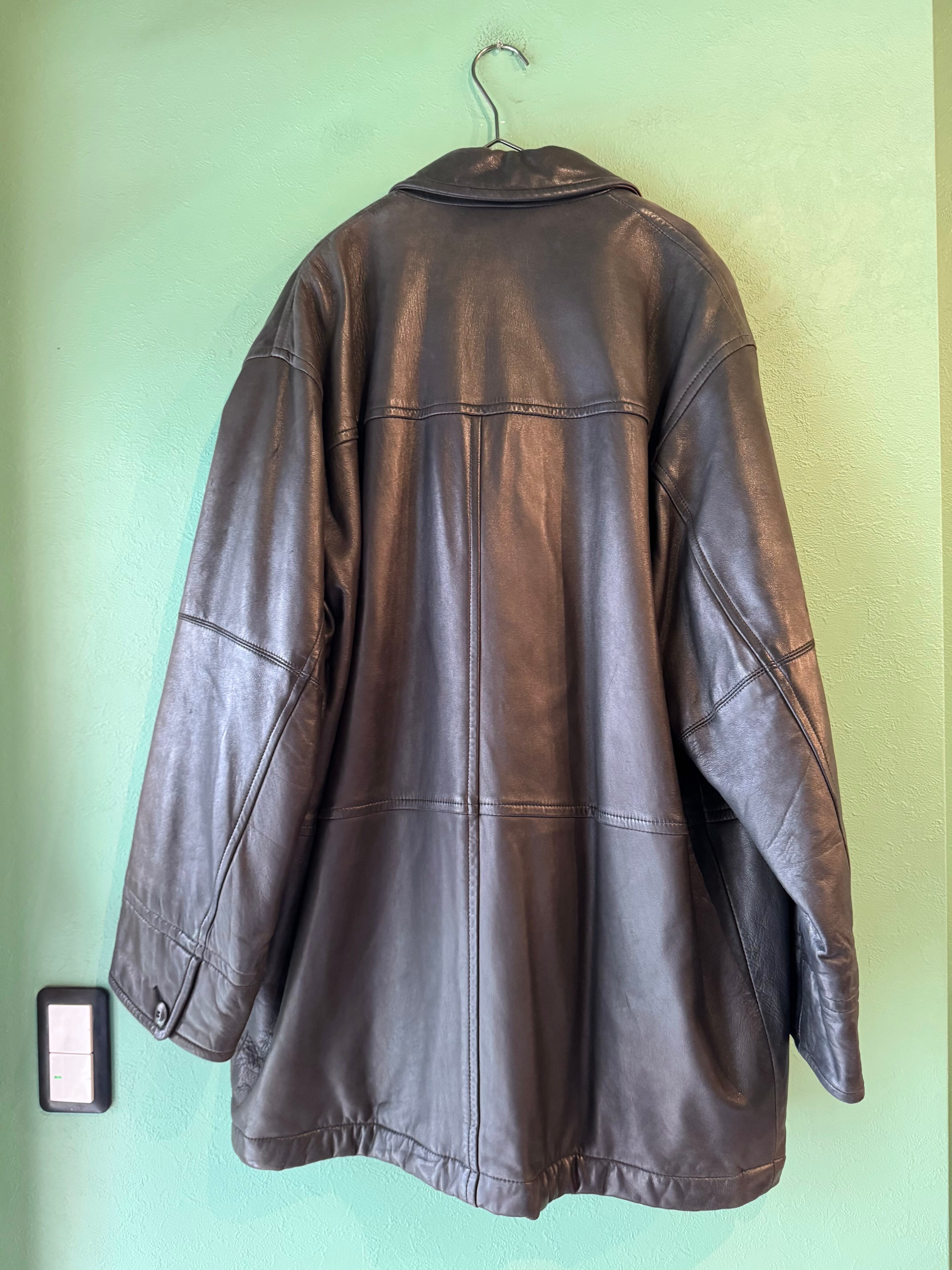 こちらはハーフコートのような着丈の長めに設定されたレザージャケット。