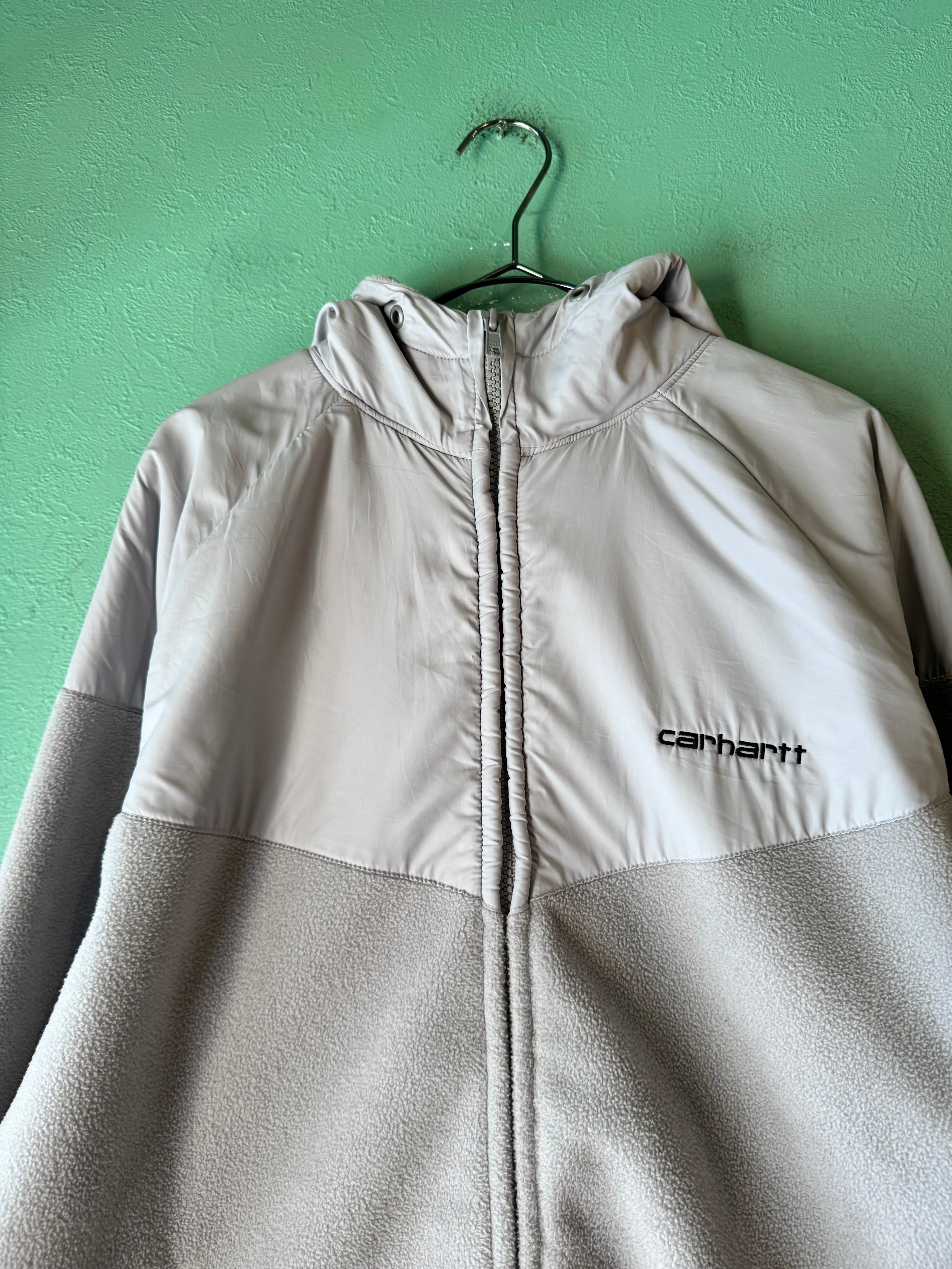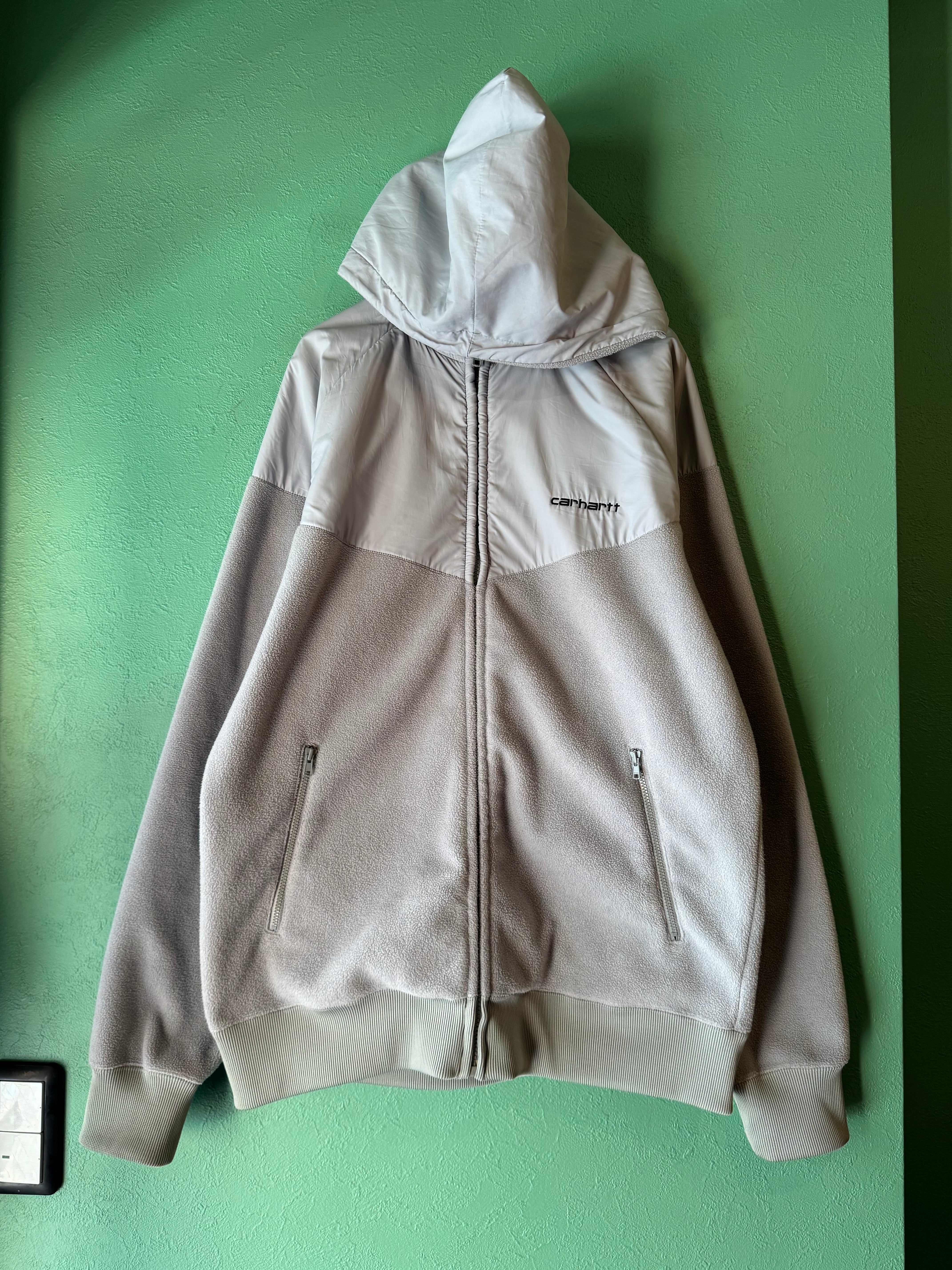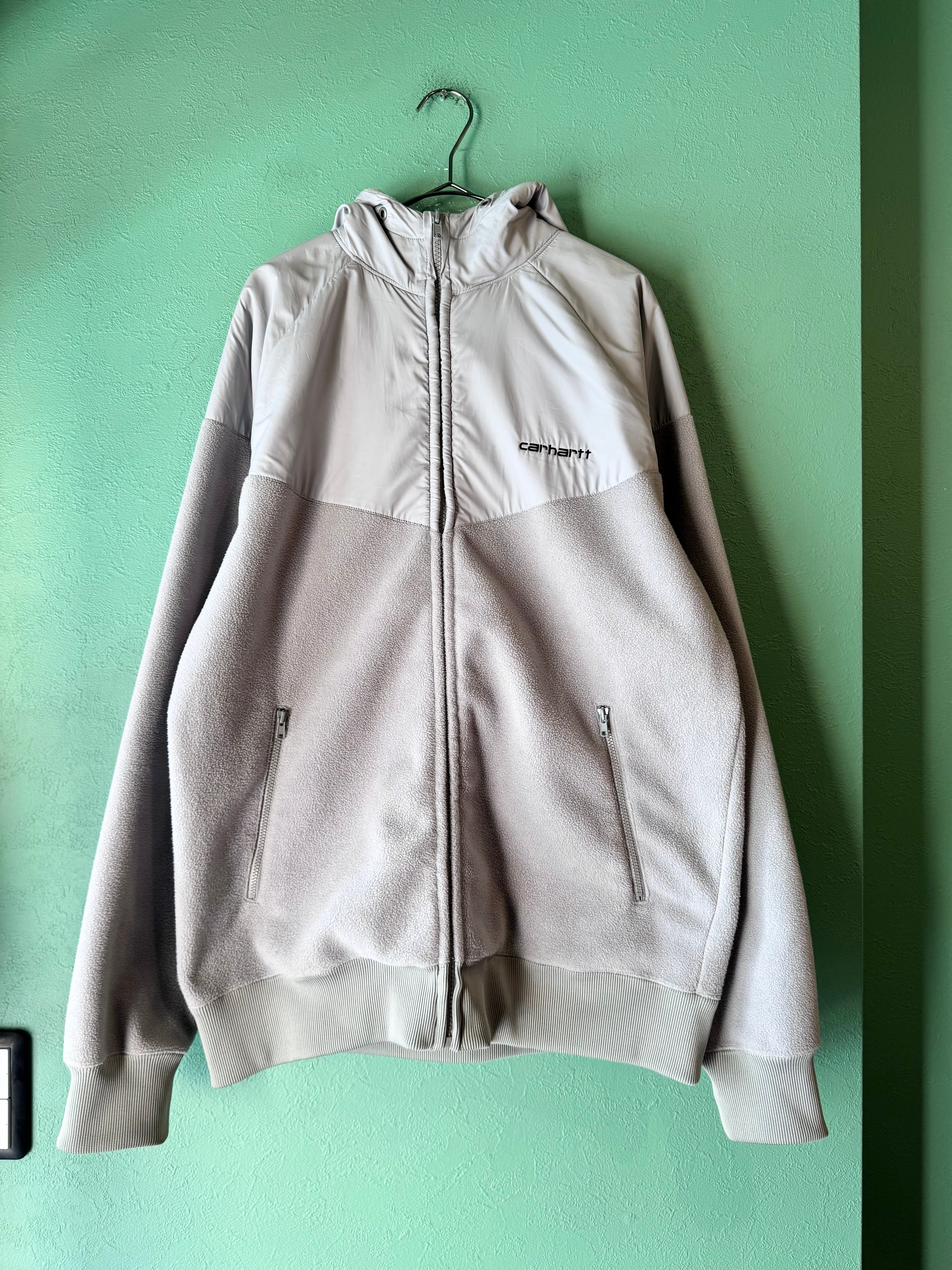 こちらはフードから肩、胸にかけてナイロン素材に切り替わったノースフェイスのデナリジャケットのような切り替えデザインのフリースジャケット。
