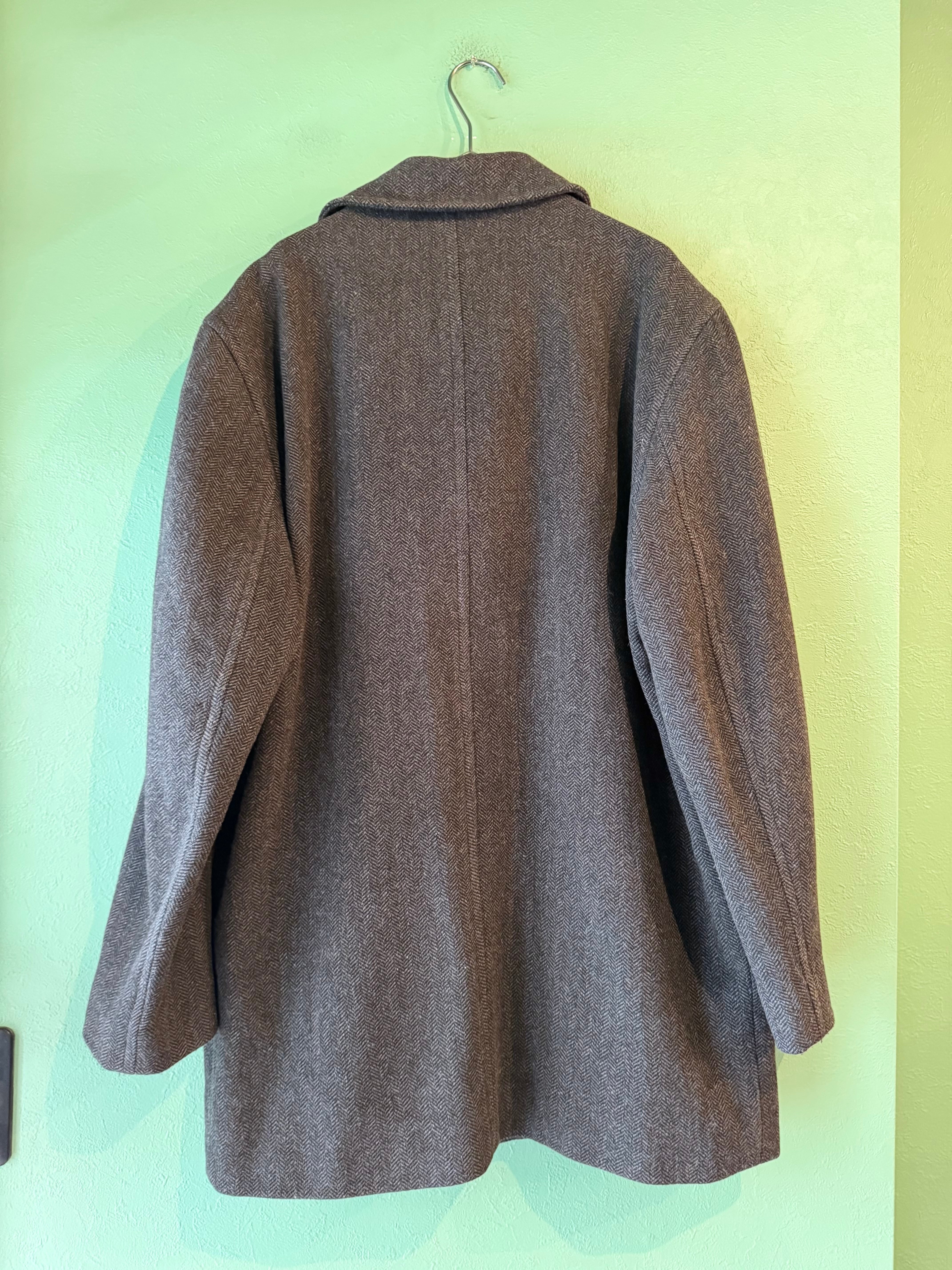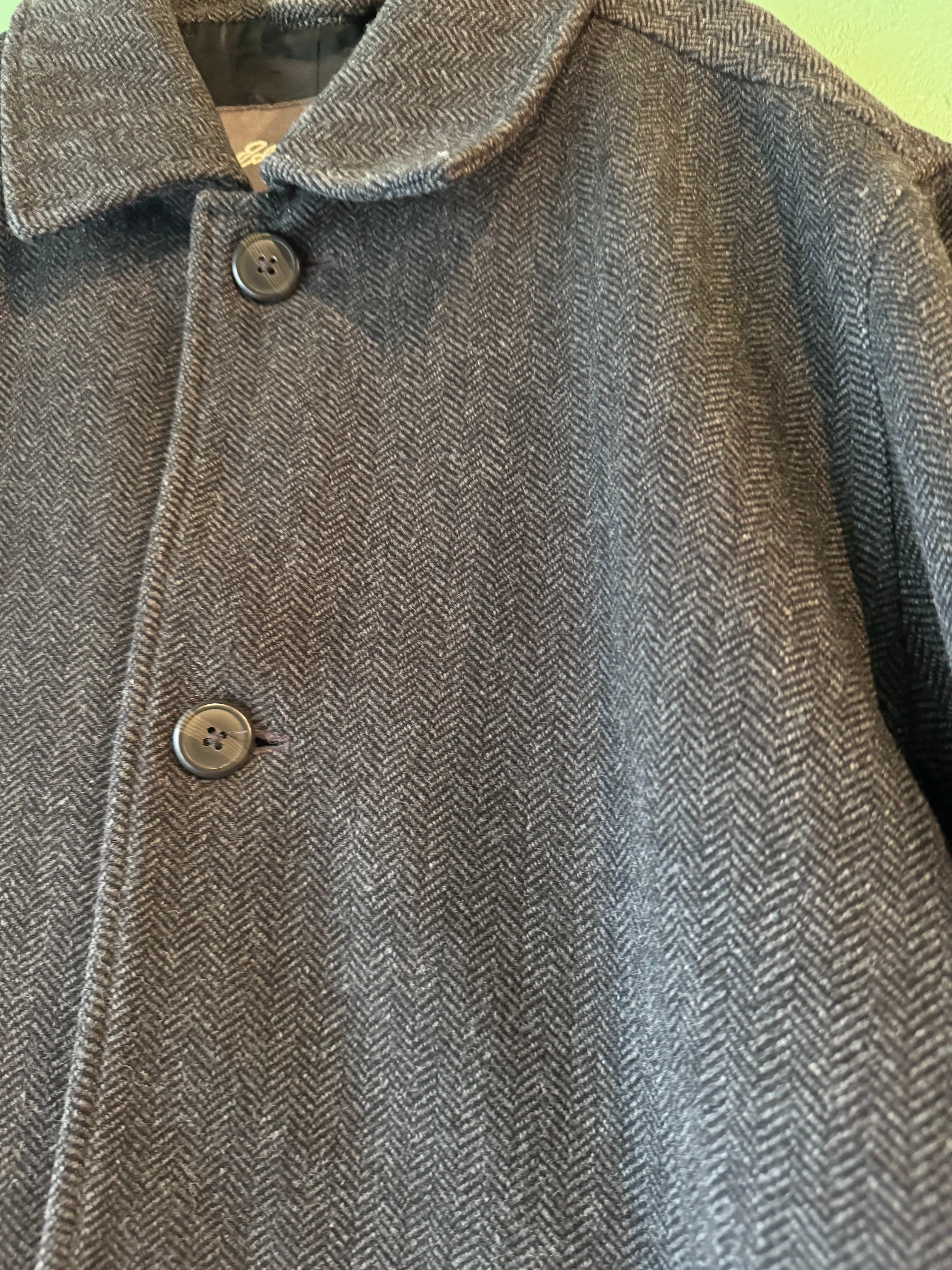 こちらはシックなチャコールグレーカラーにクラシカルなツイード素材のハーフコート。