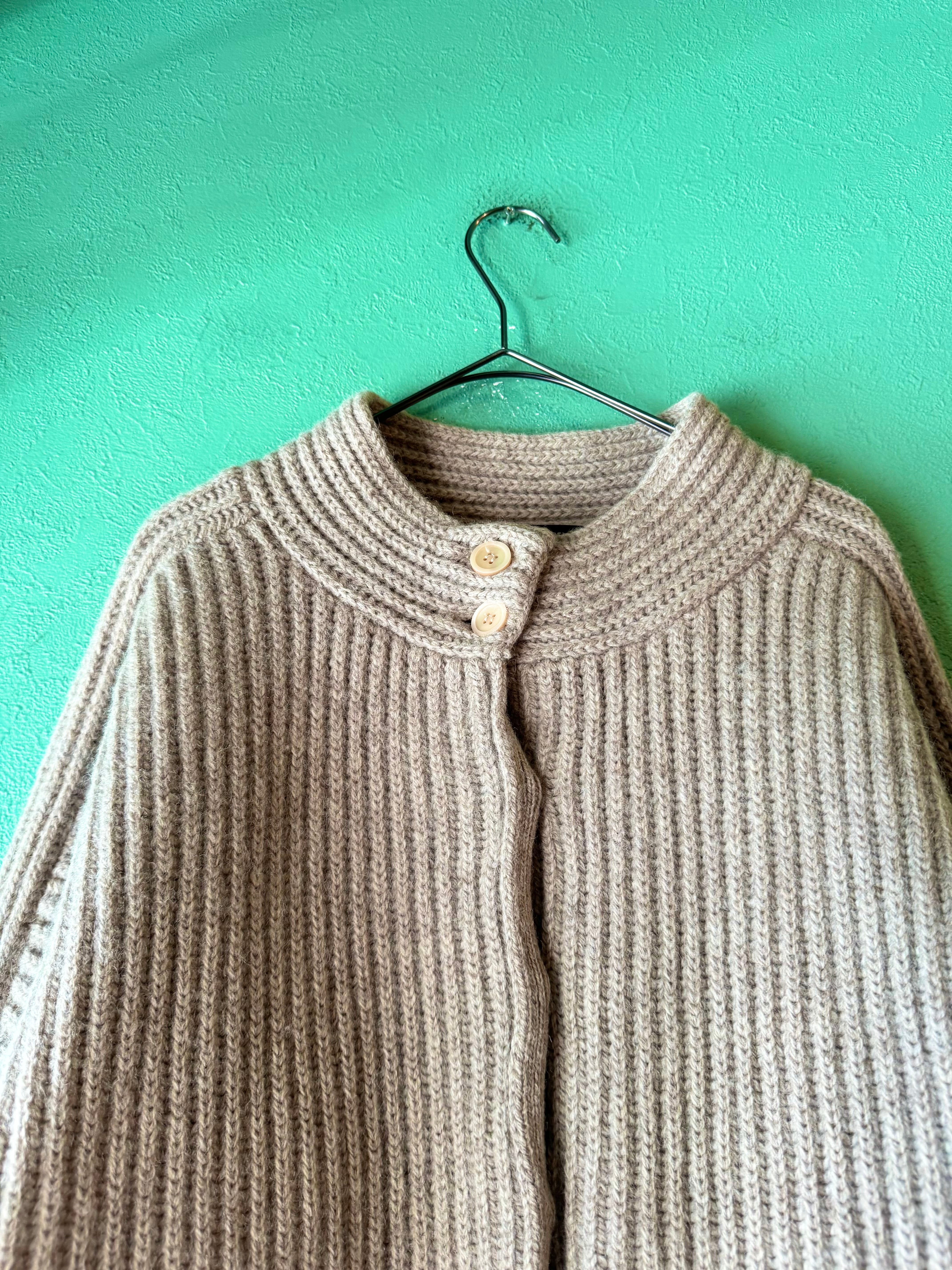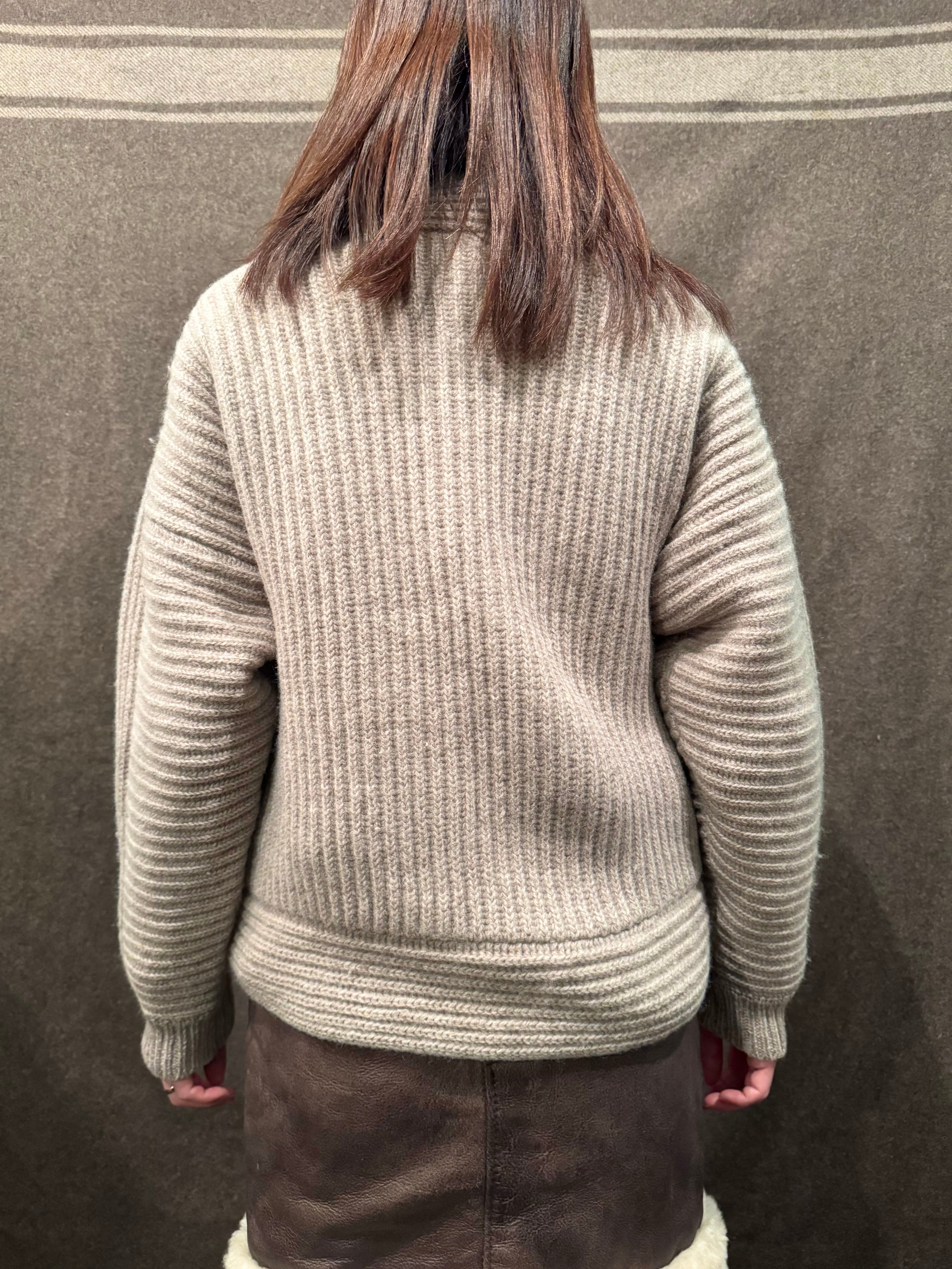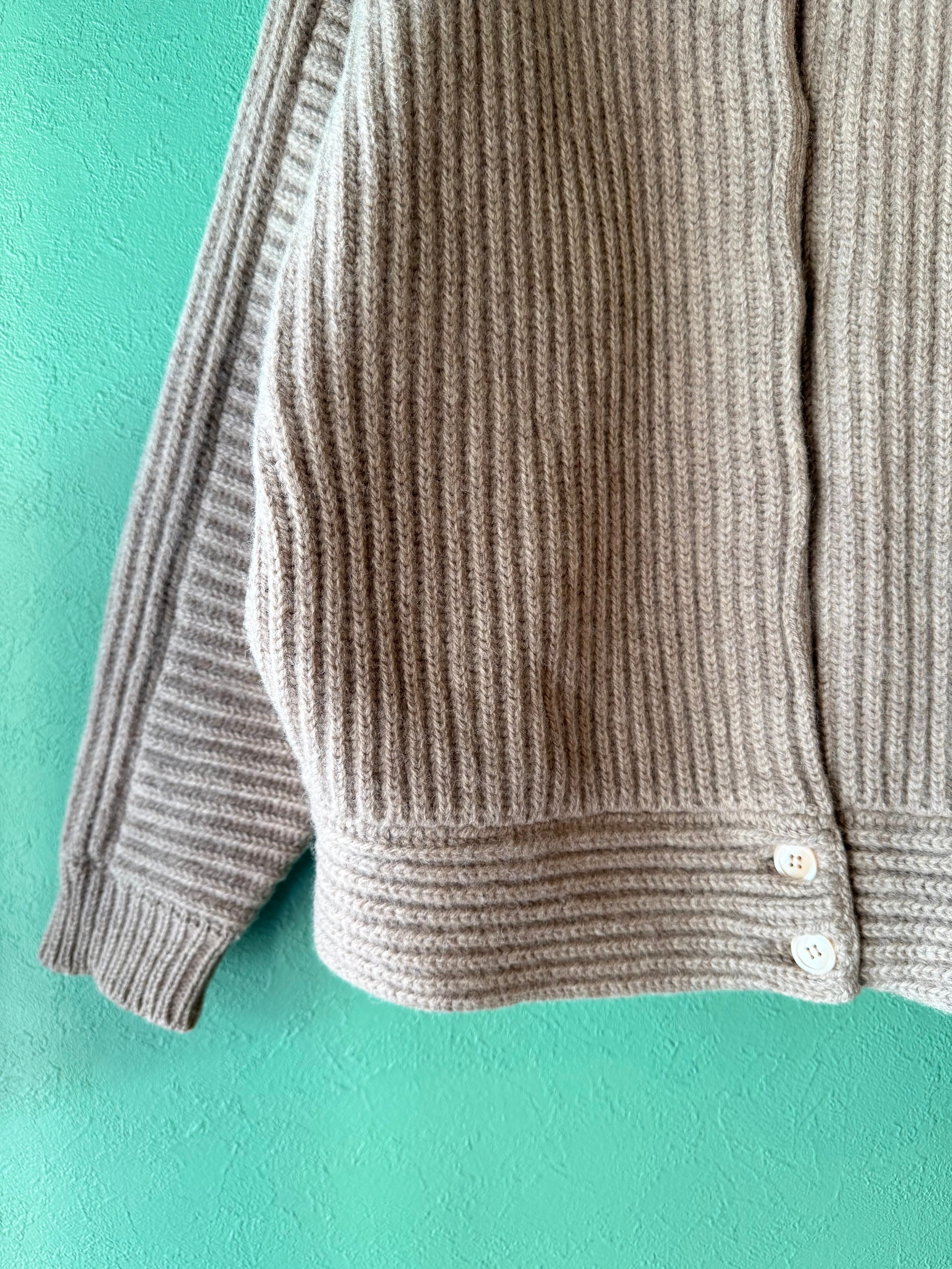 こちらは肉厚なニット地にリブ編みのライトベージュカラーのニットジャケット。