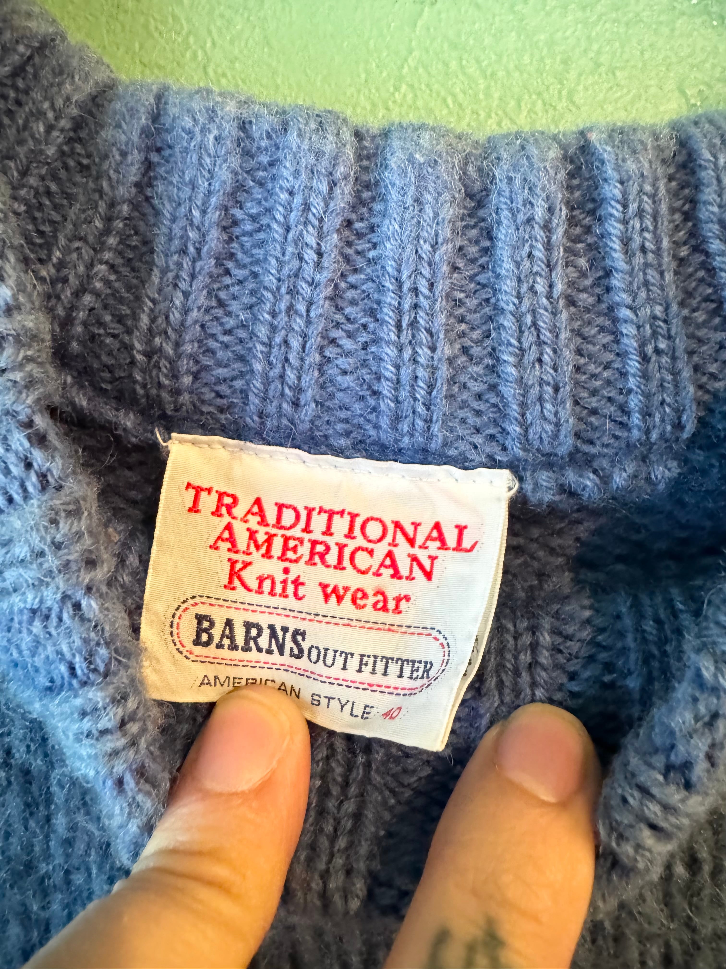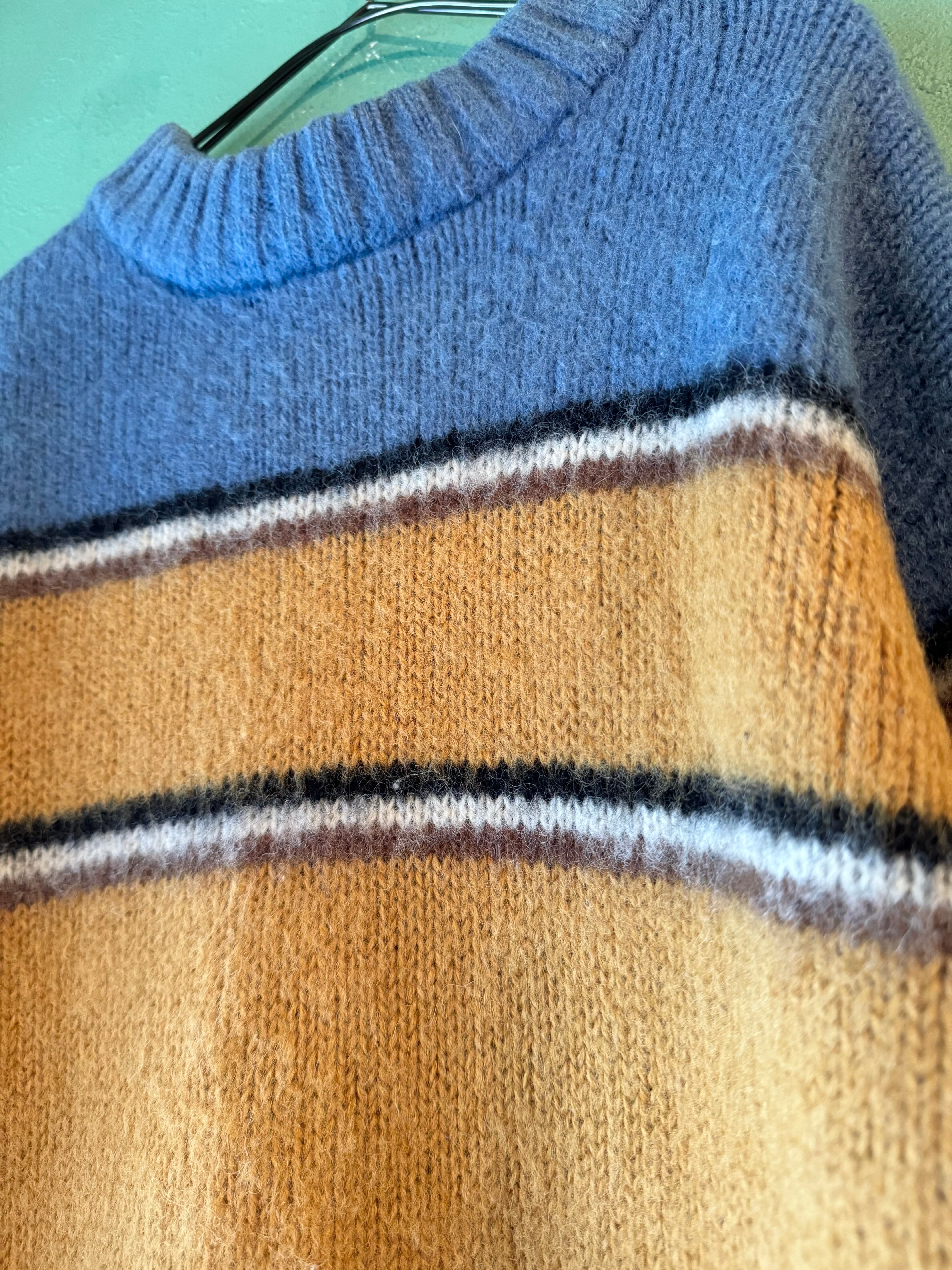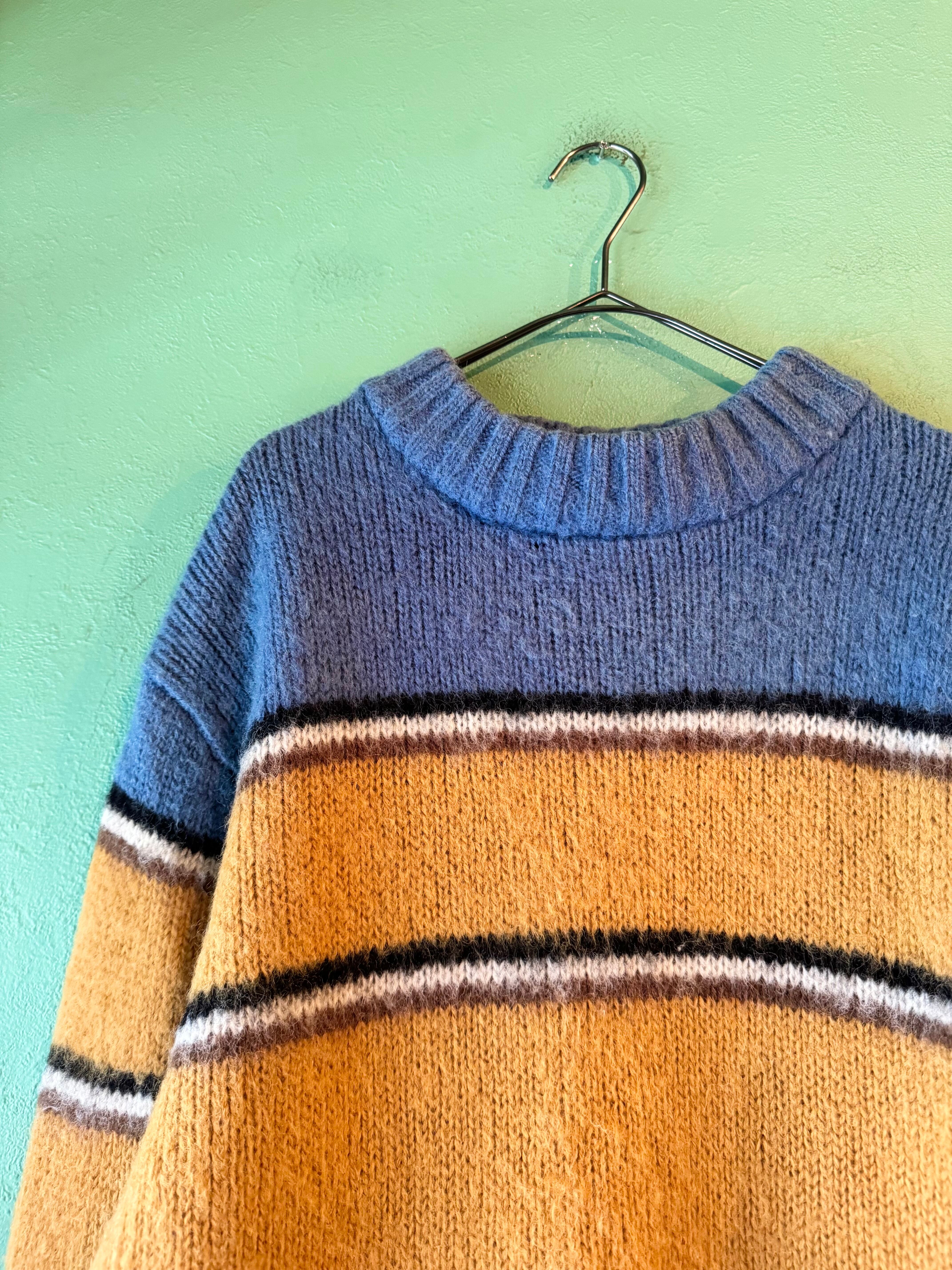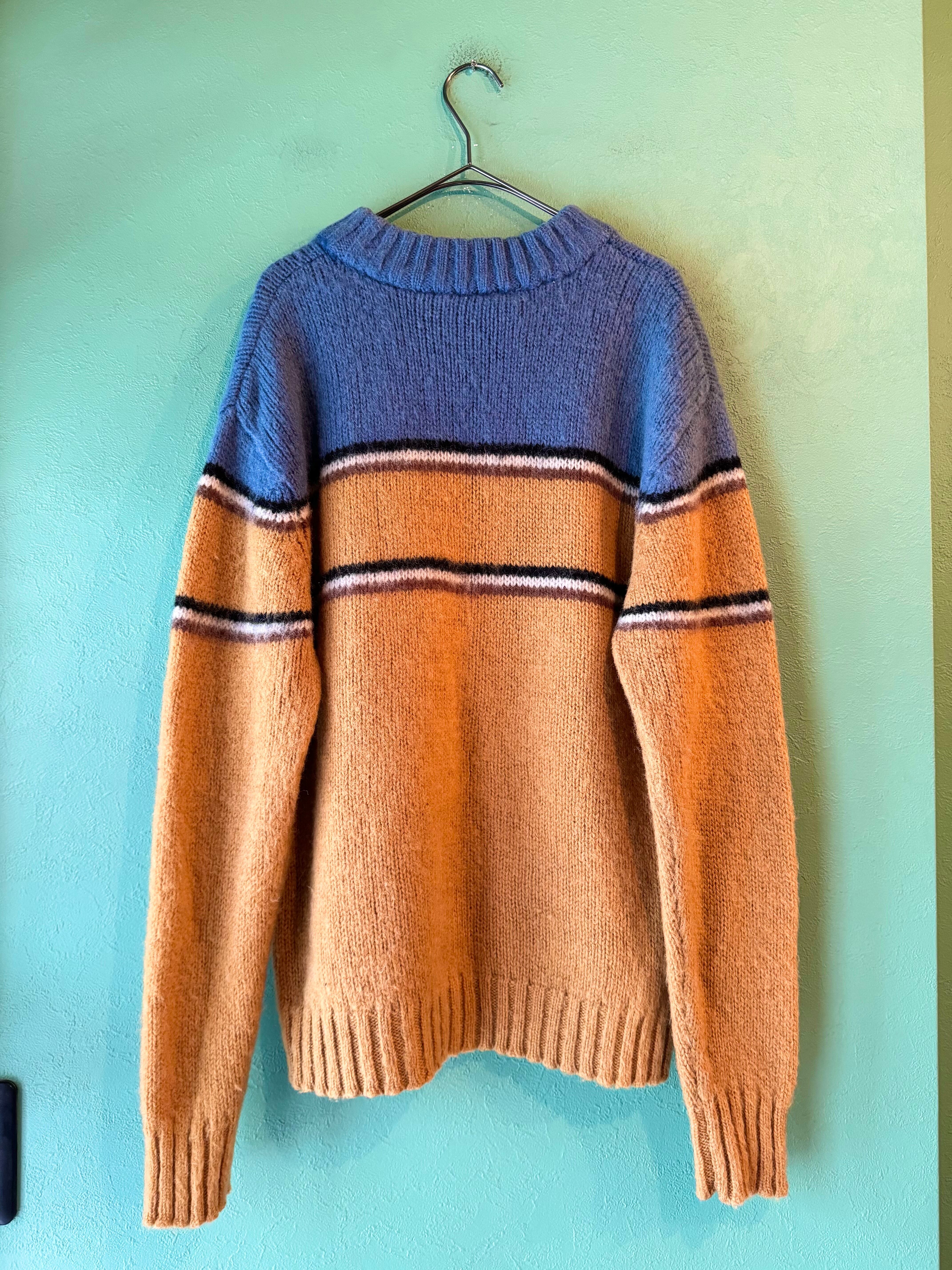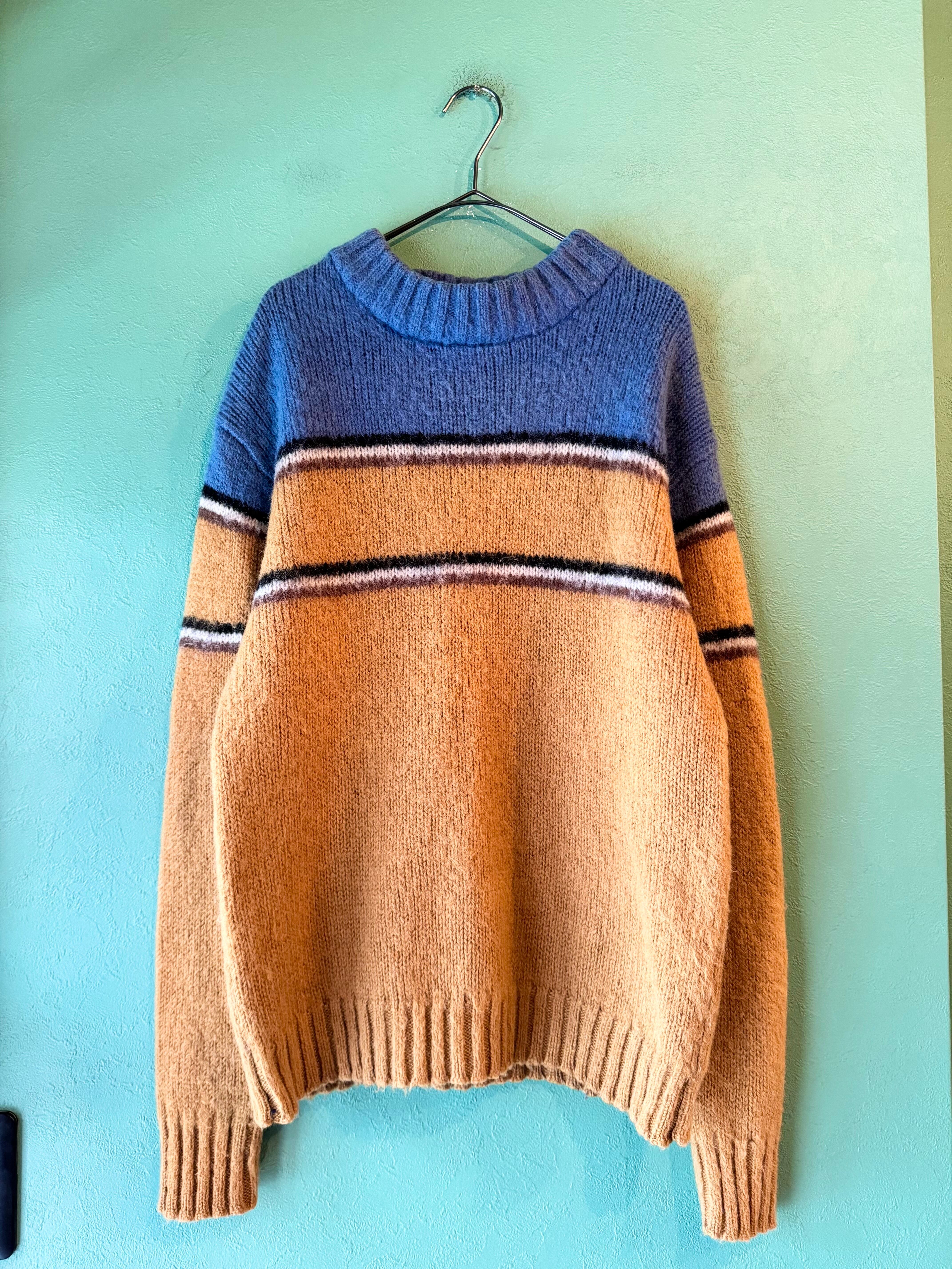 こちらはブルー×マスタードイエローの切り替えカラーリングの可愛いデザインニット。
