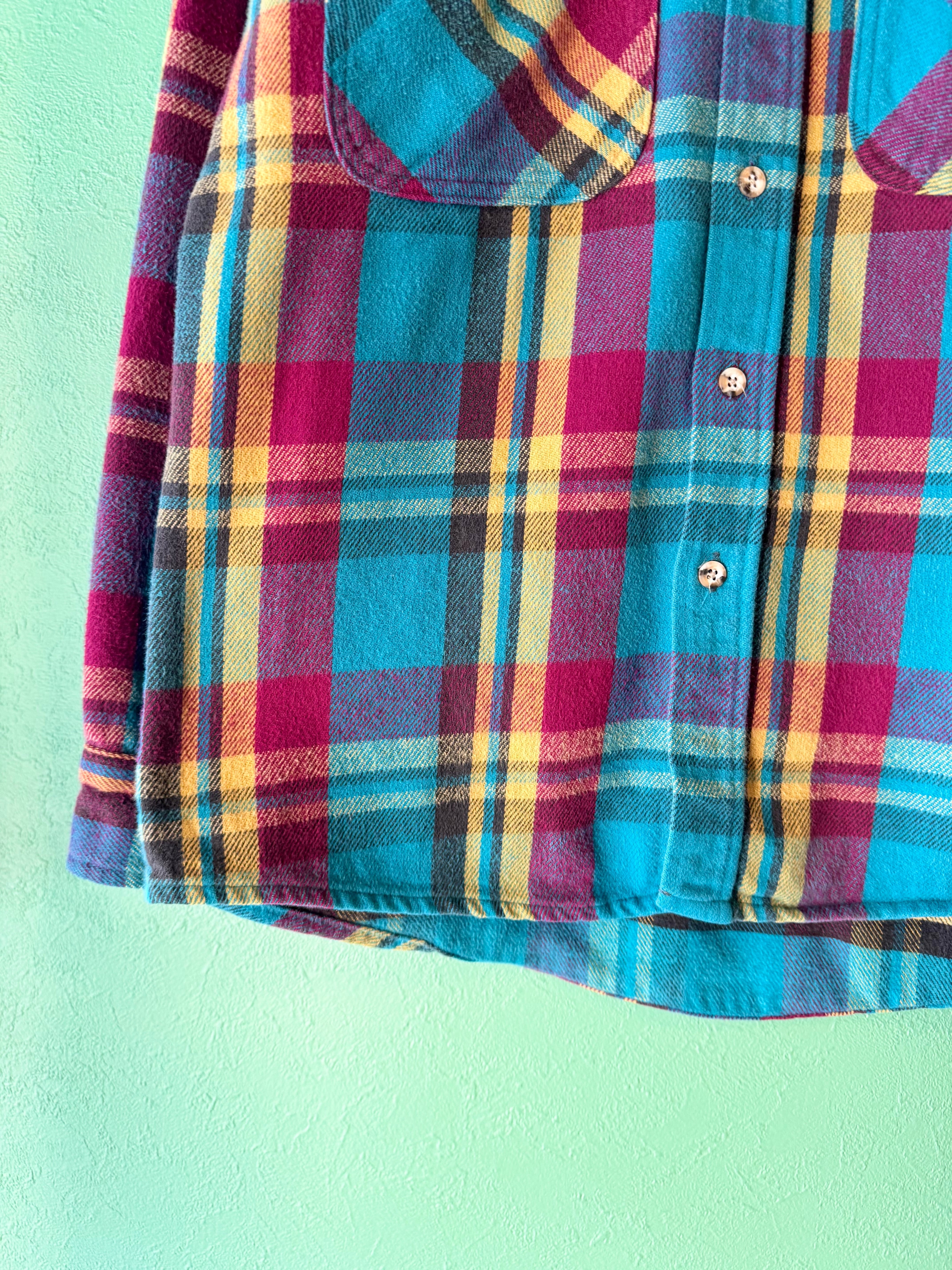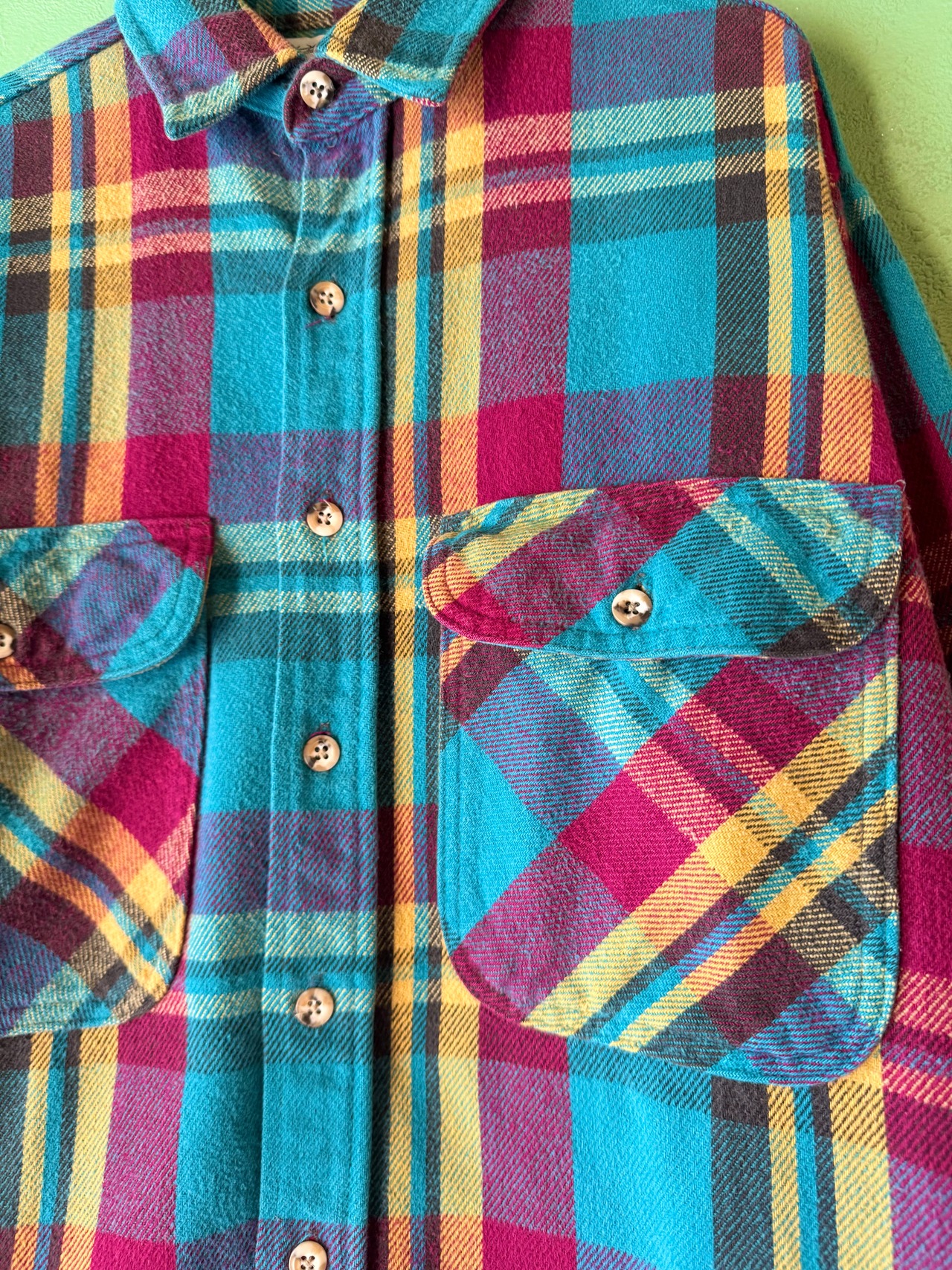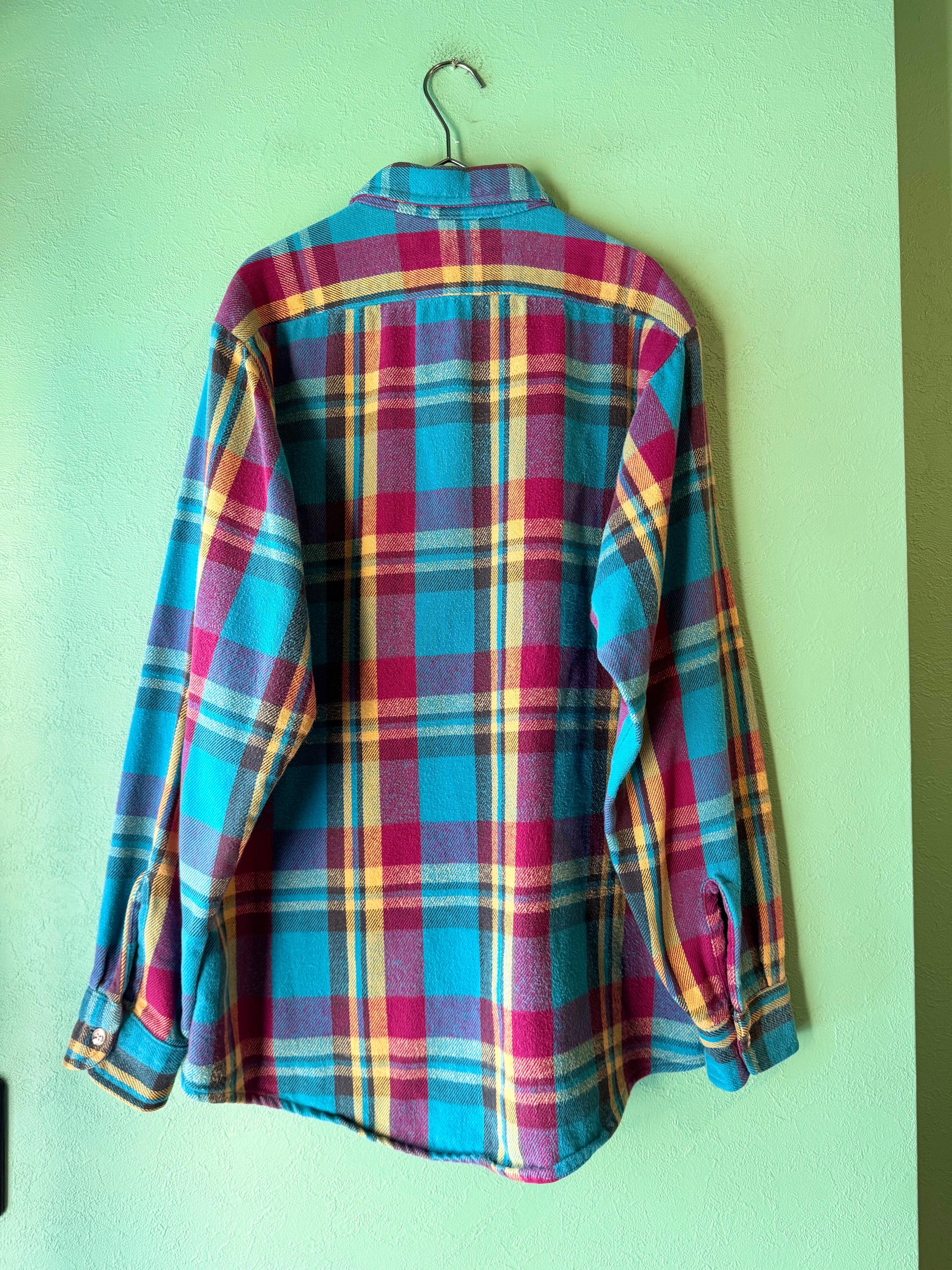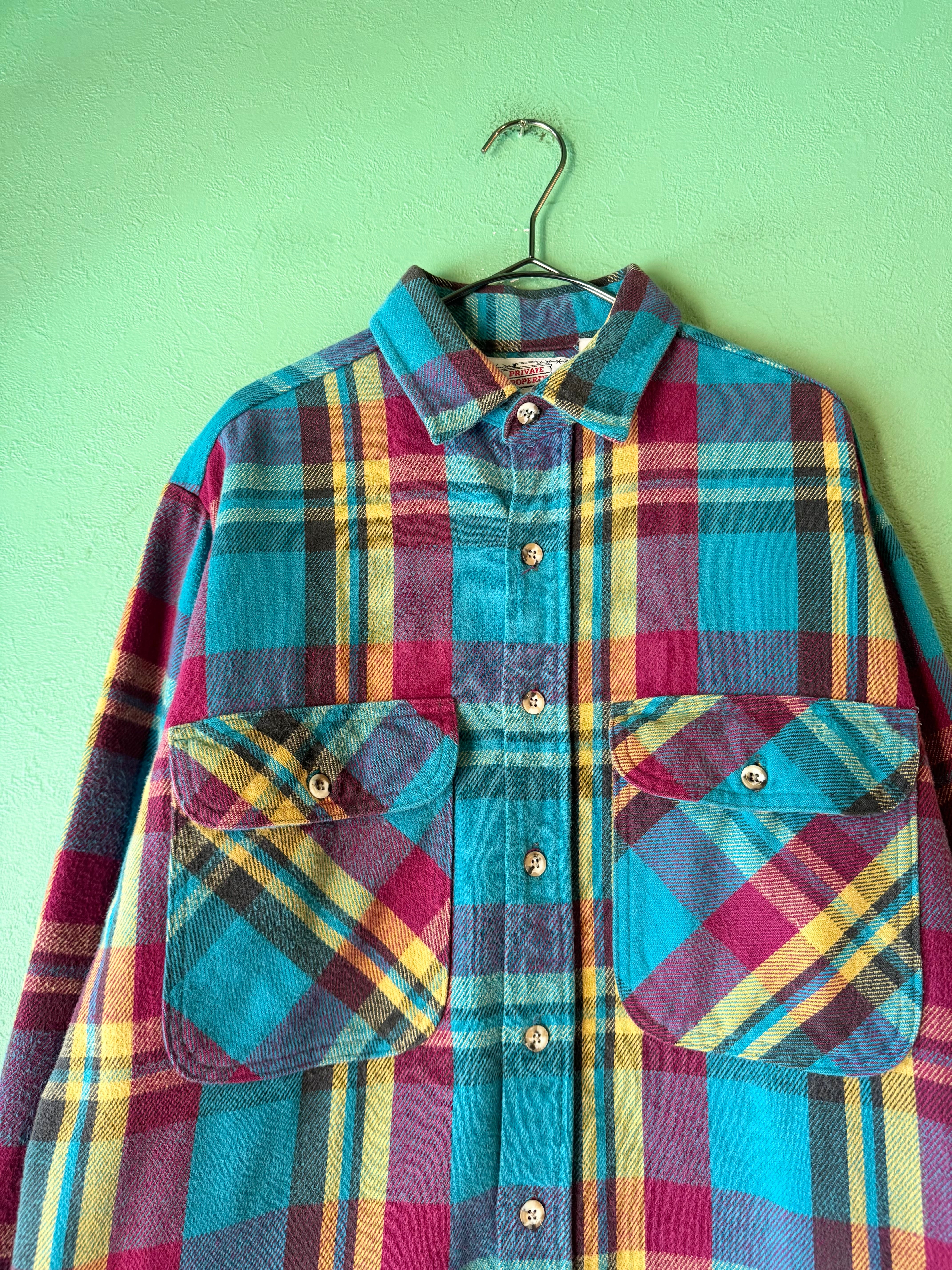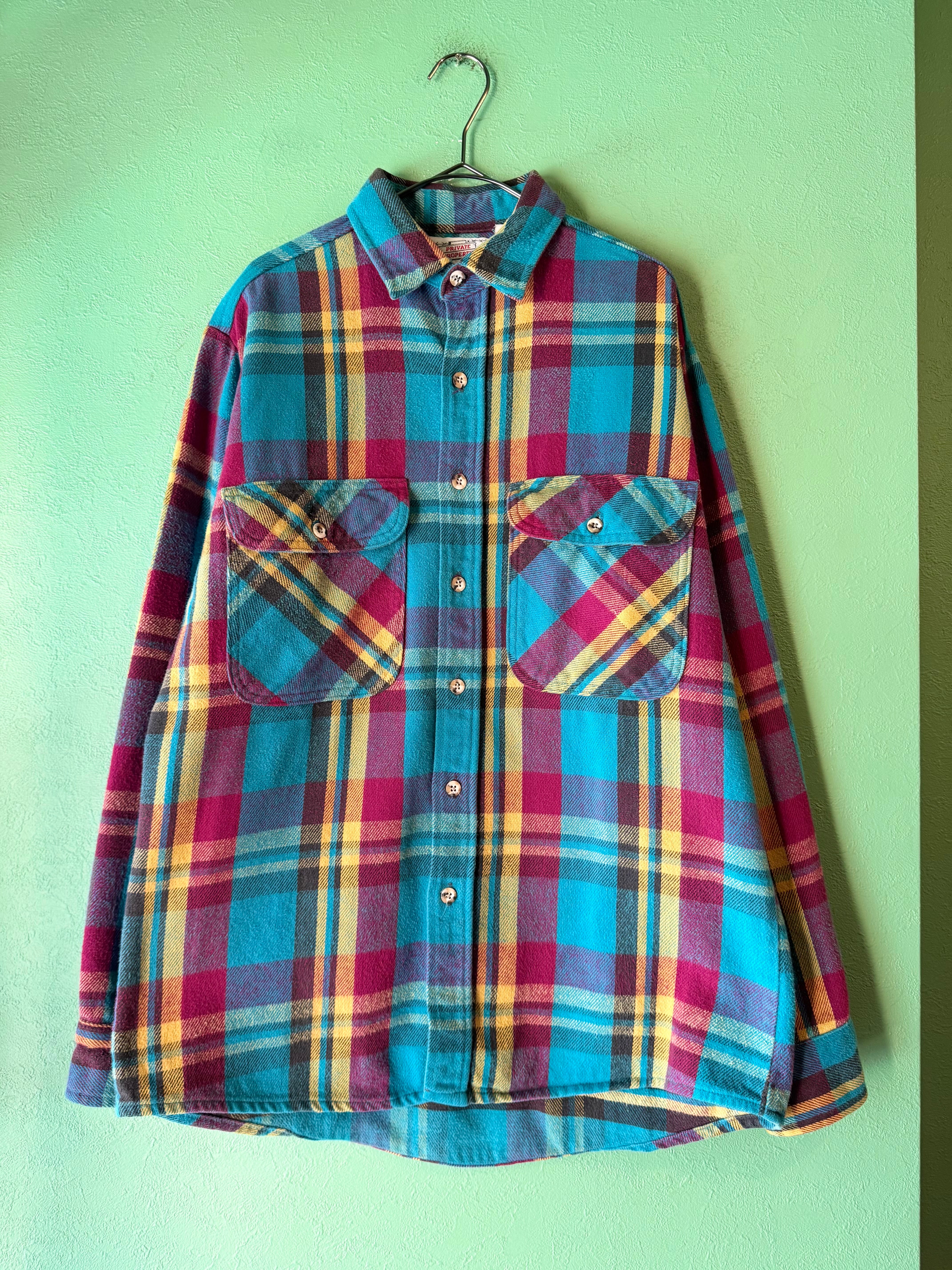 ブルー×イエロー×レッドのあまり見かけないチェックパターンに古着好きには嬉しいアメリカ製が◎