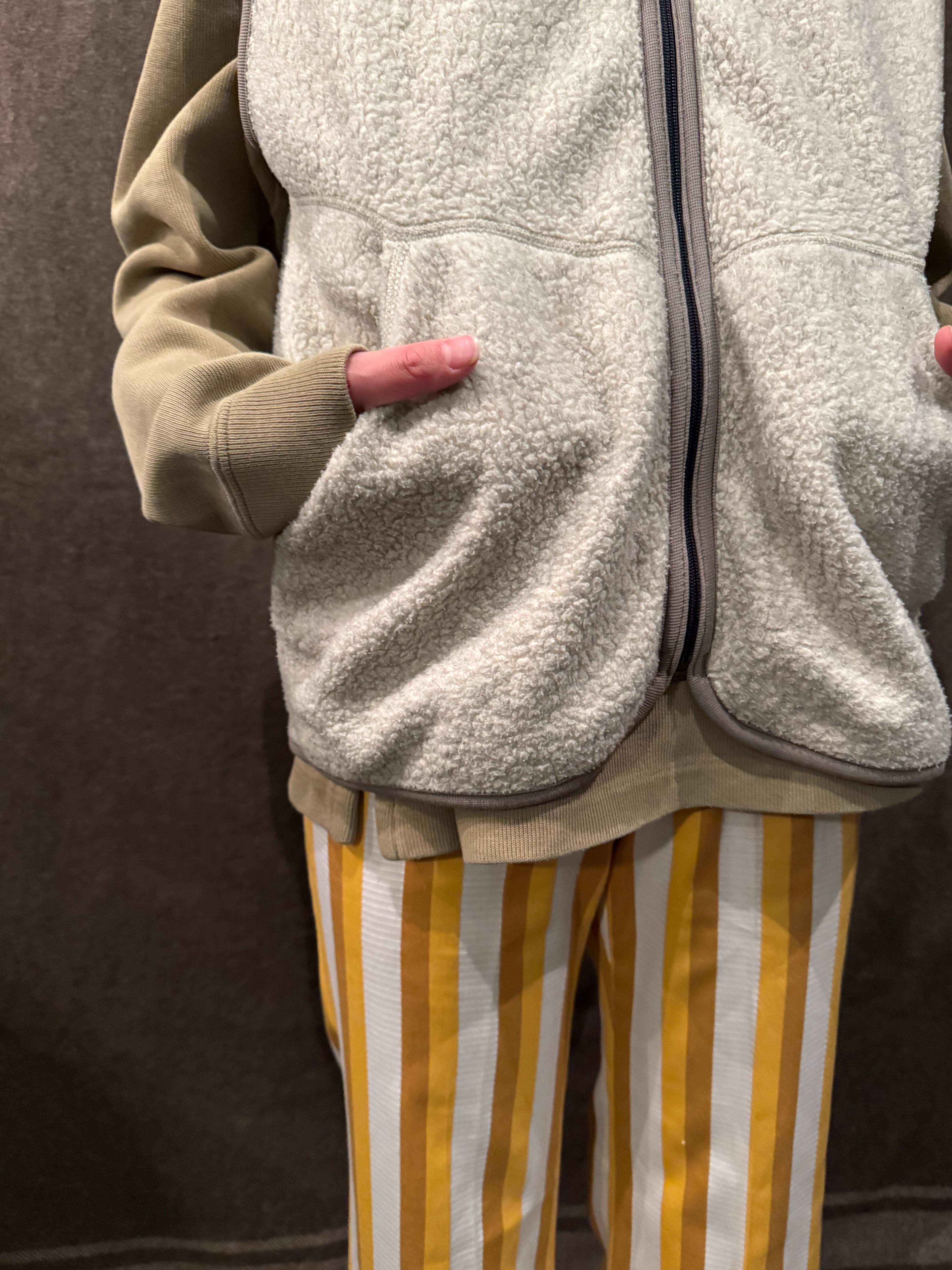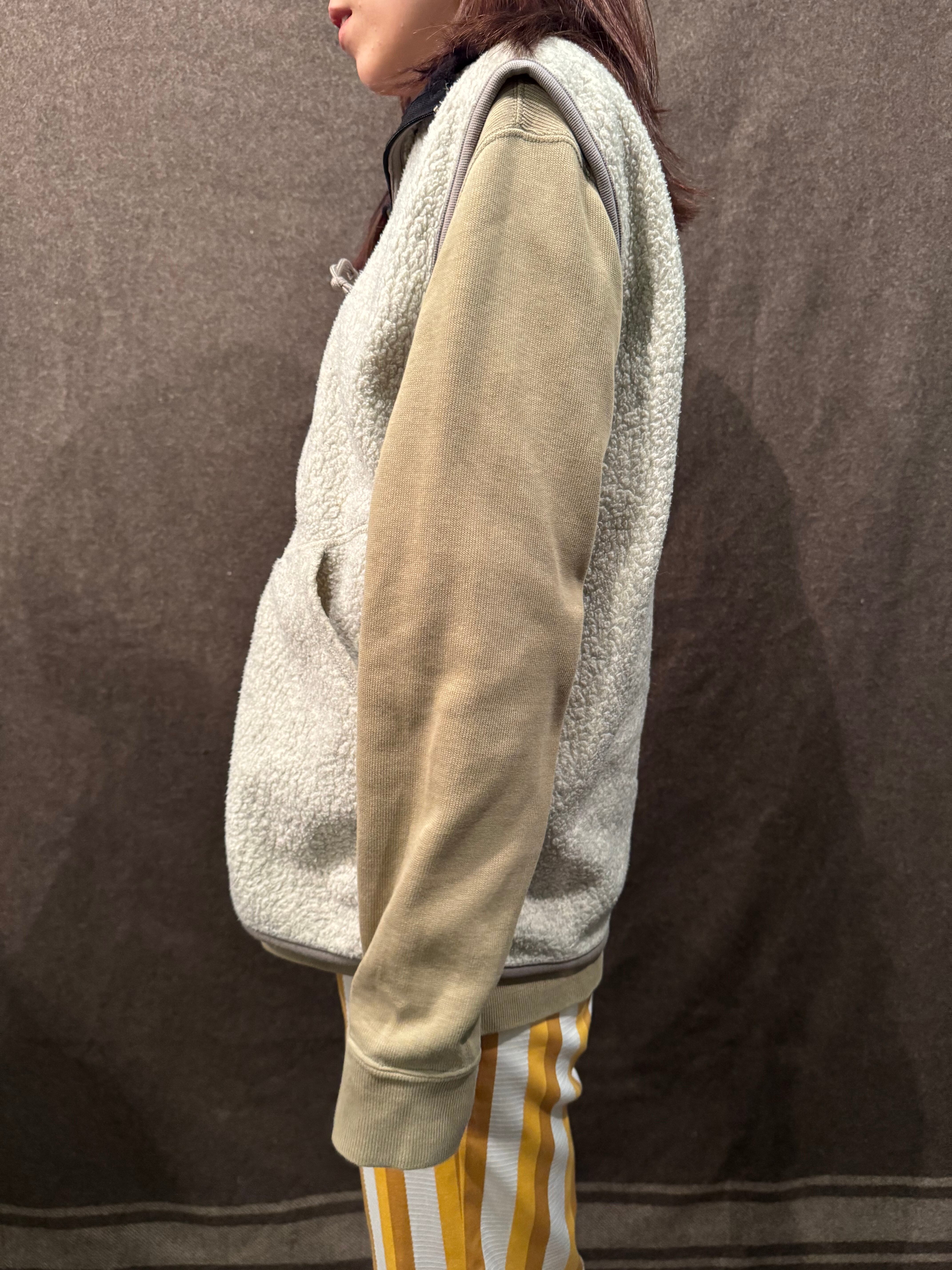 ジップタイプなので着脱もラクでそこまで生地も厚くないのでアウターの中にも仕込め、レイヤードの楽しめる1着かと思います。