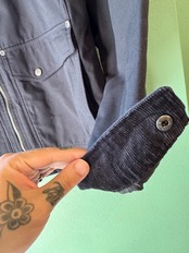 本来のダックよりやや柔らかめの生地感に襟と袖裏がコーデュロイ素材に切り替わっています。