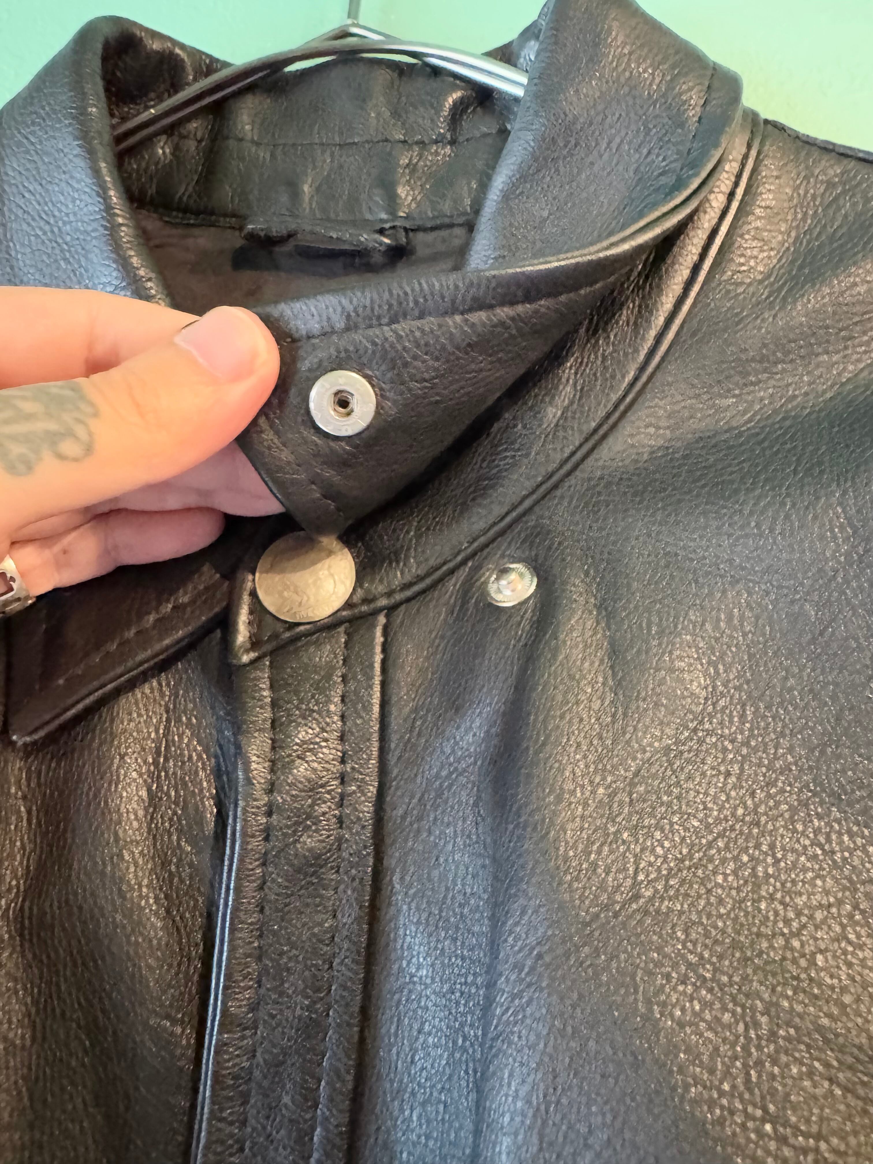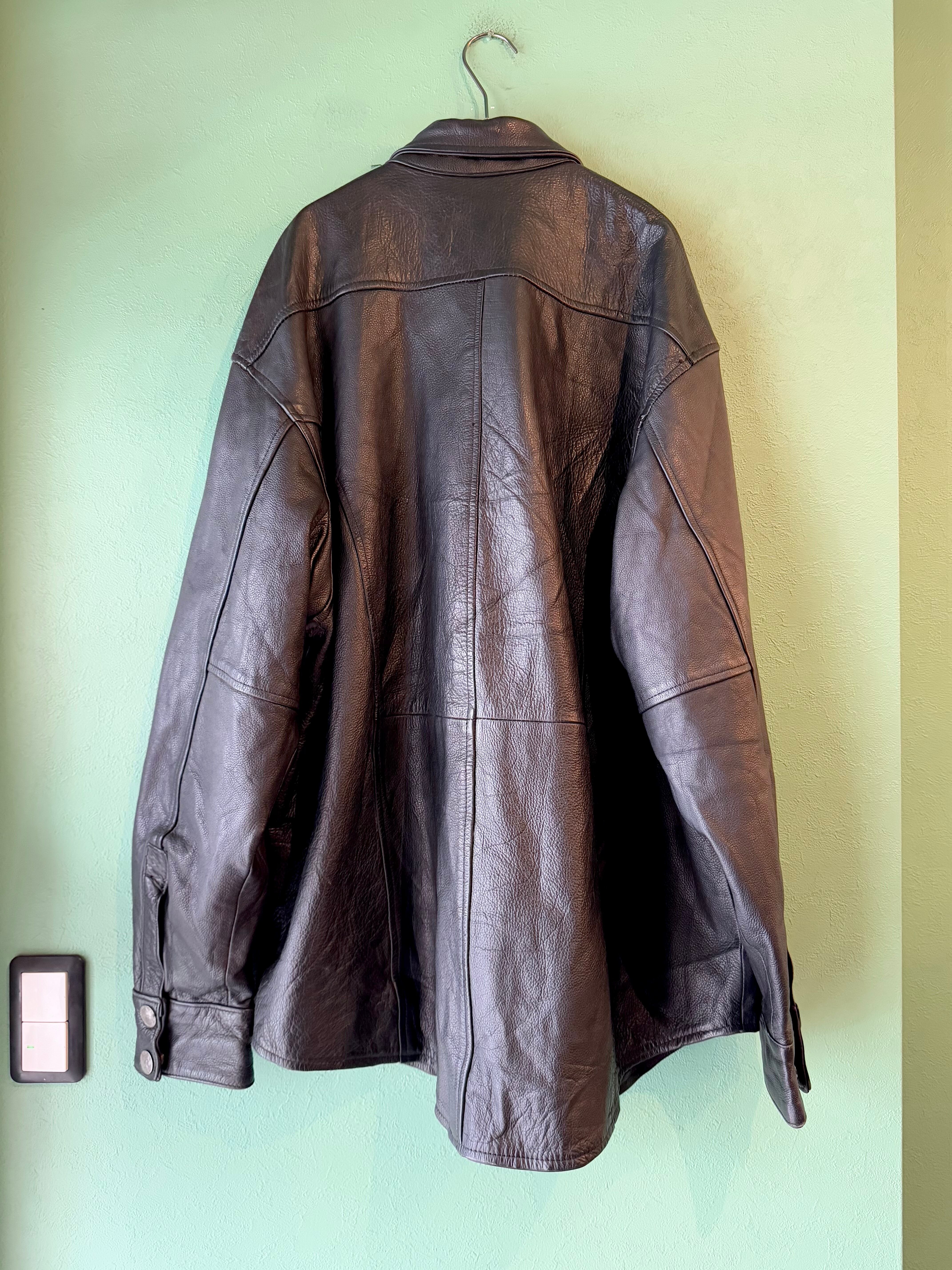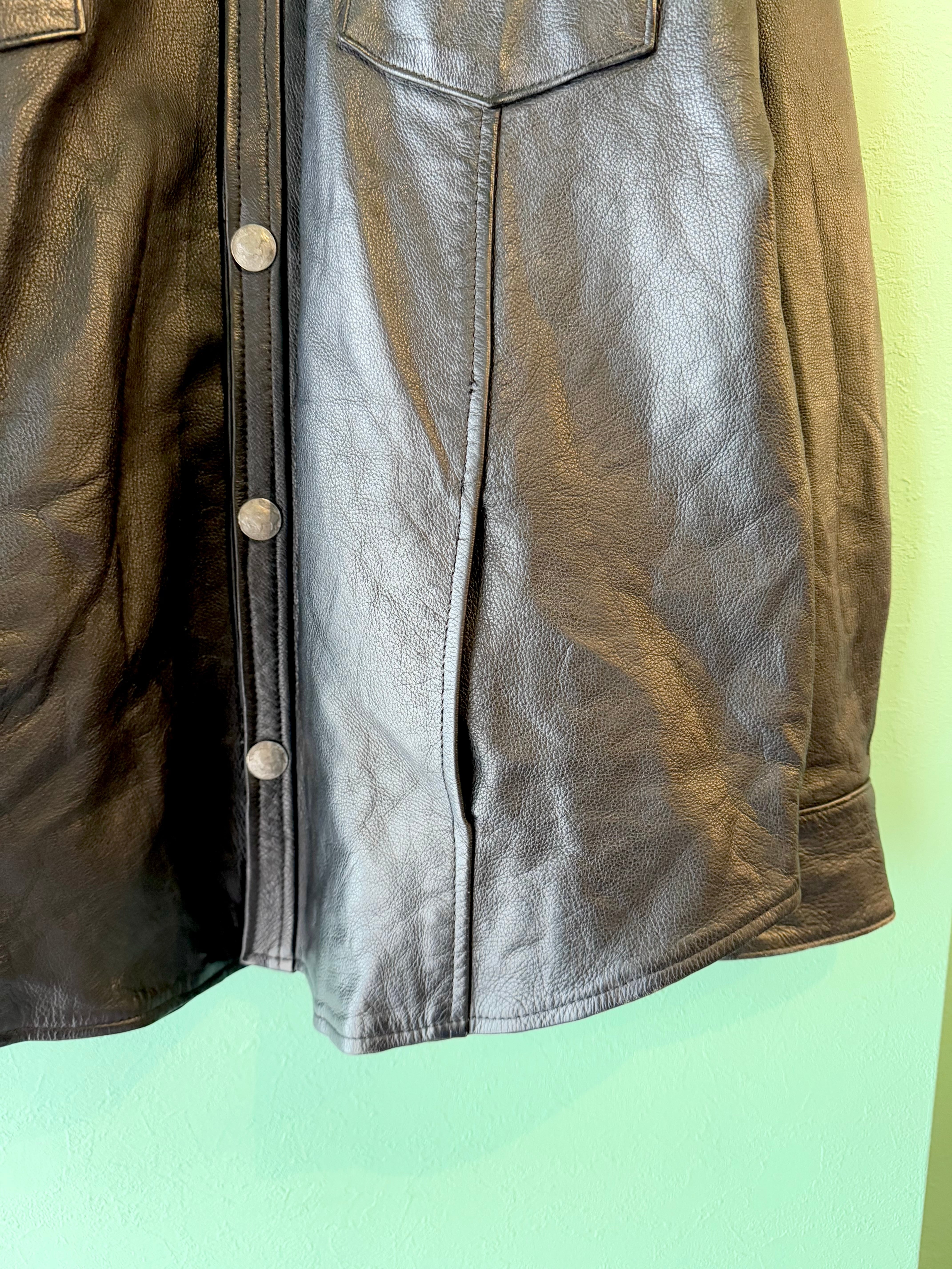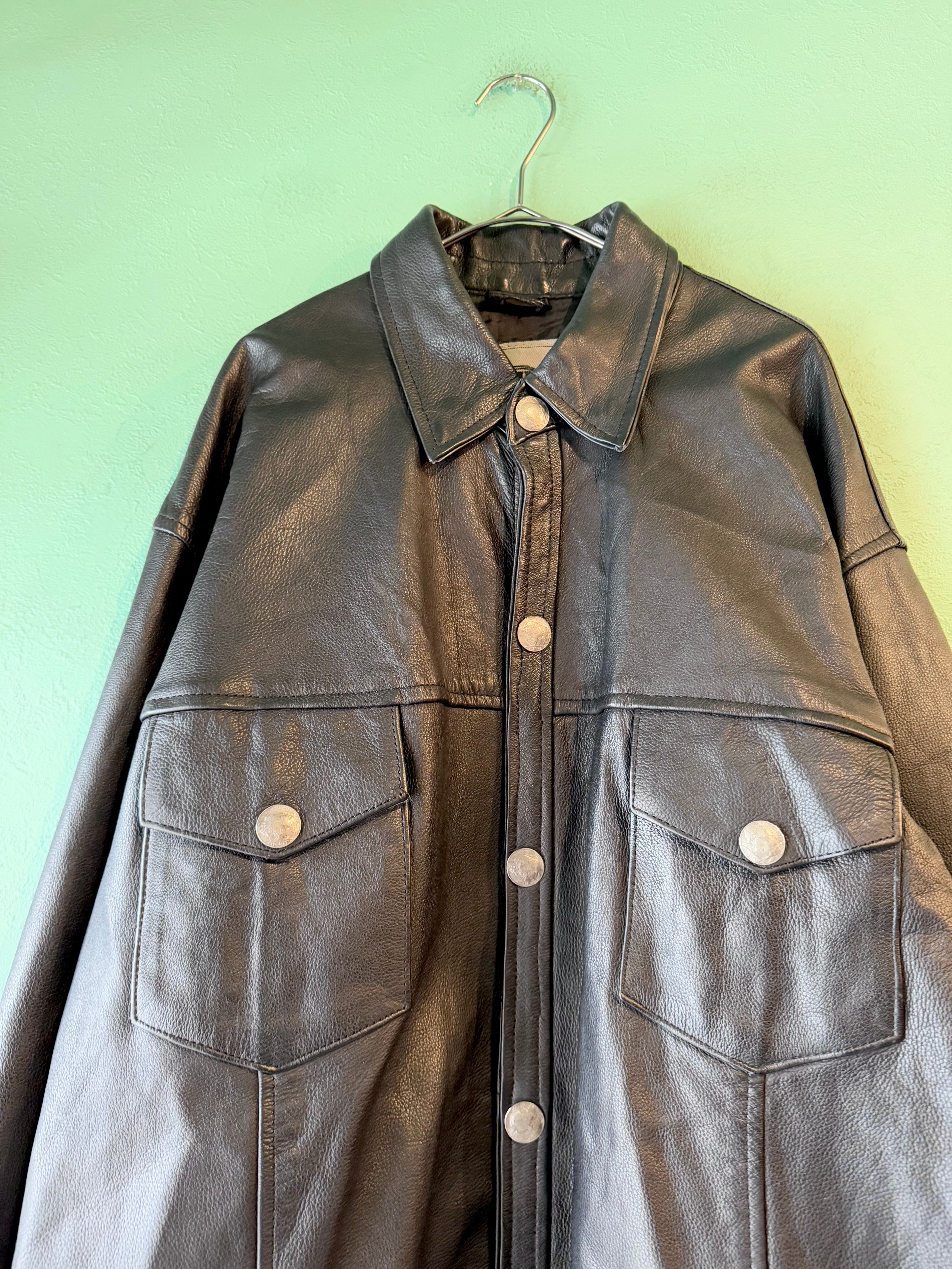 こちらはまるでシャツのようなディテールの珍しいレザージャケット。