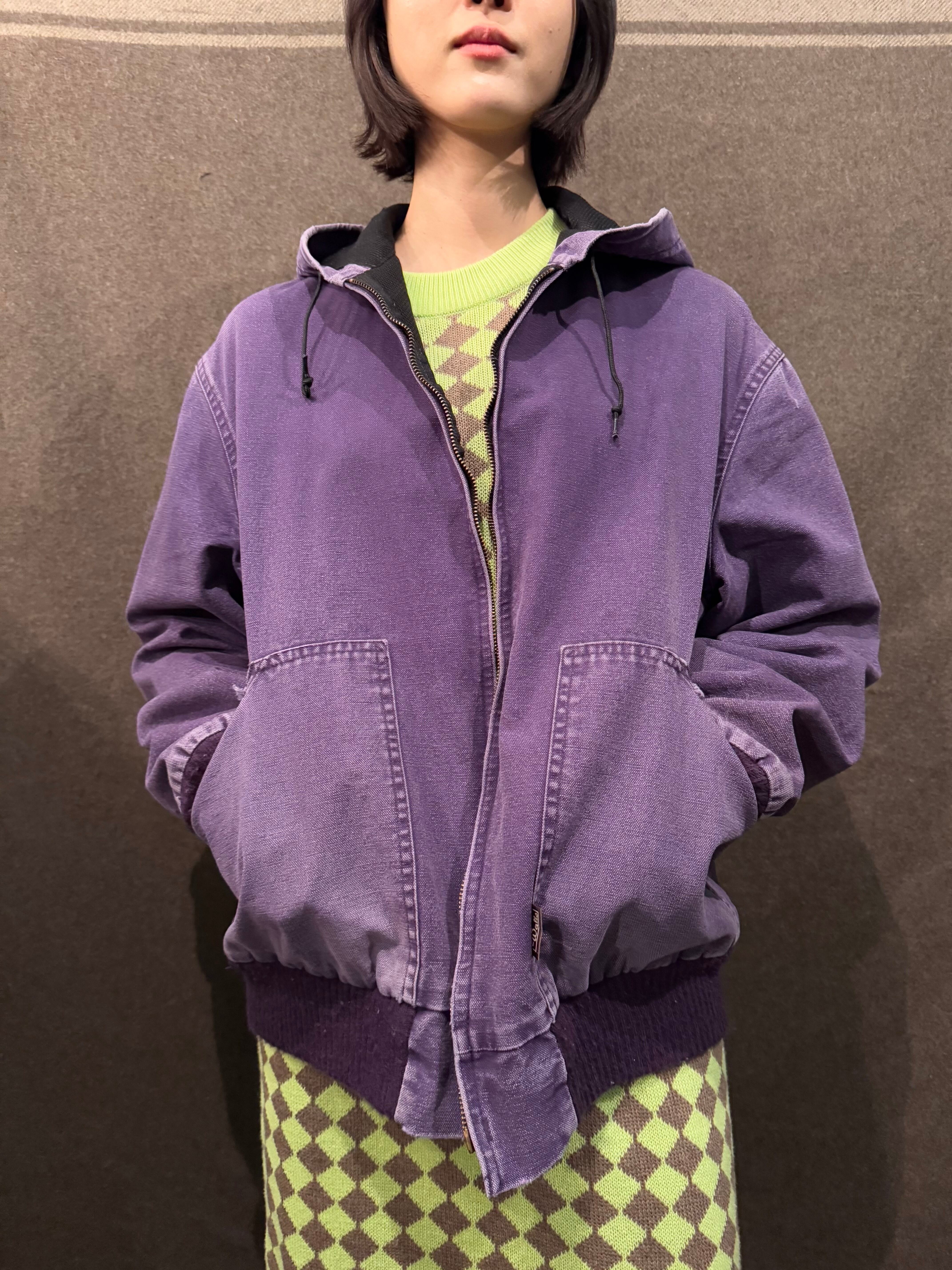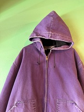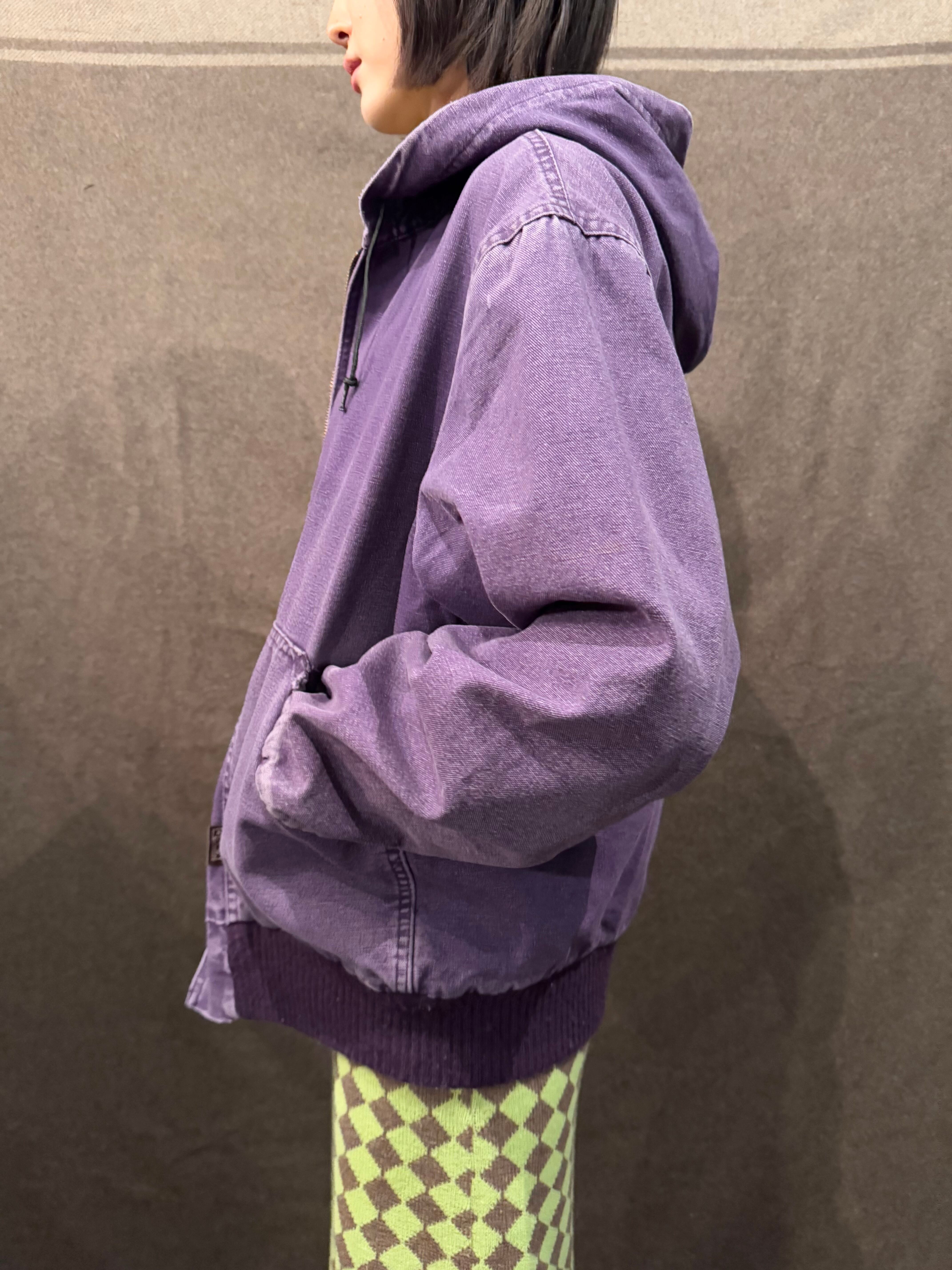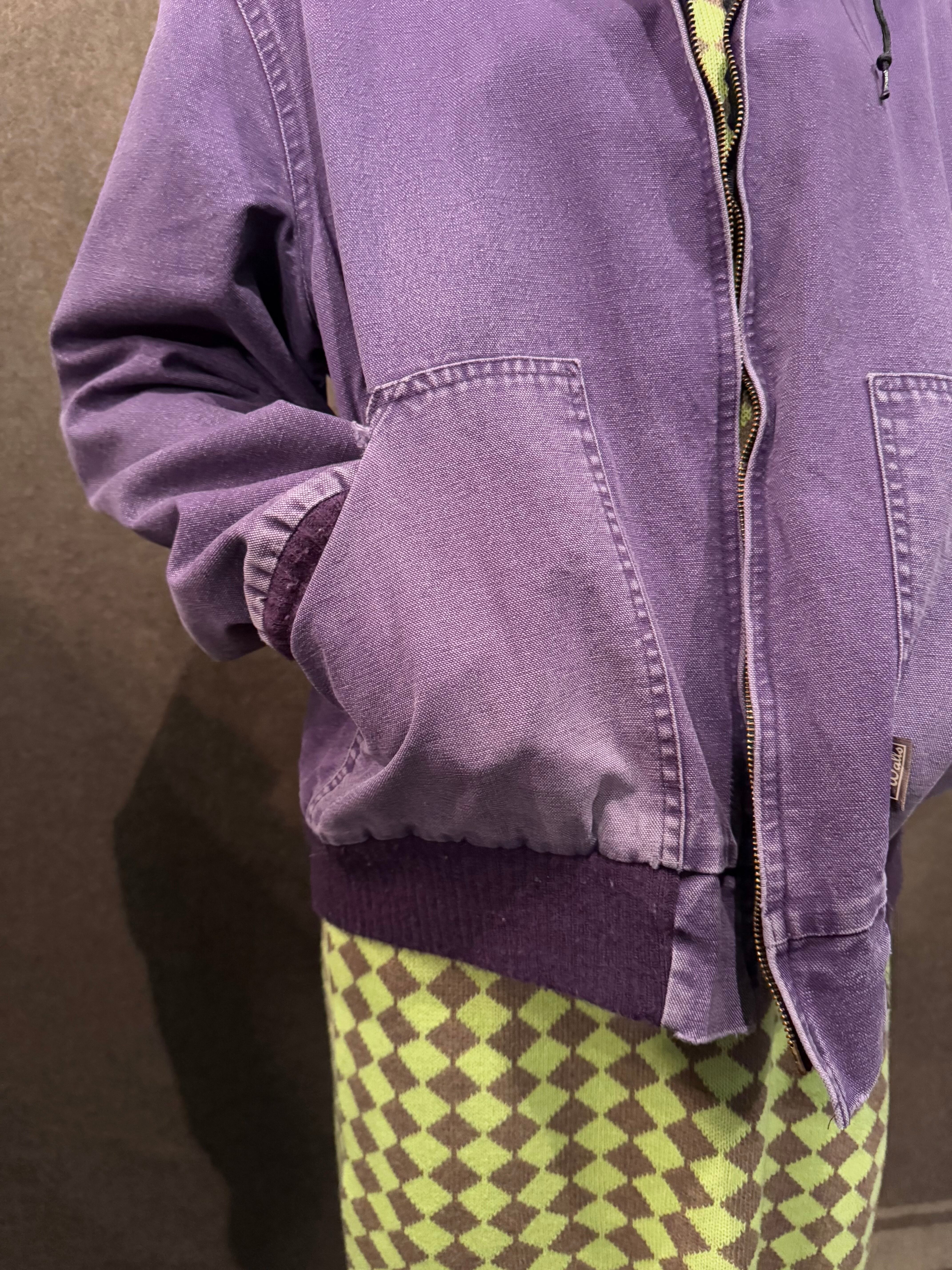 裾やポケット付近にダメージはありますがヴィンテージならではの色落ち具合に、カーハートのオリジナルでは見かけないパープルカラーが魅力的で天邪鬼な方におススメです。