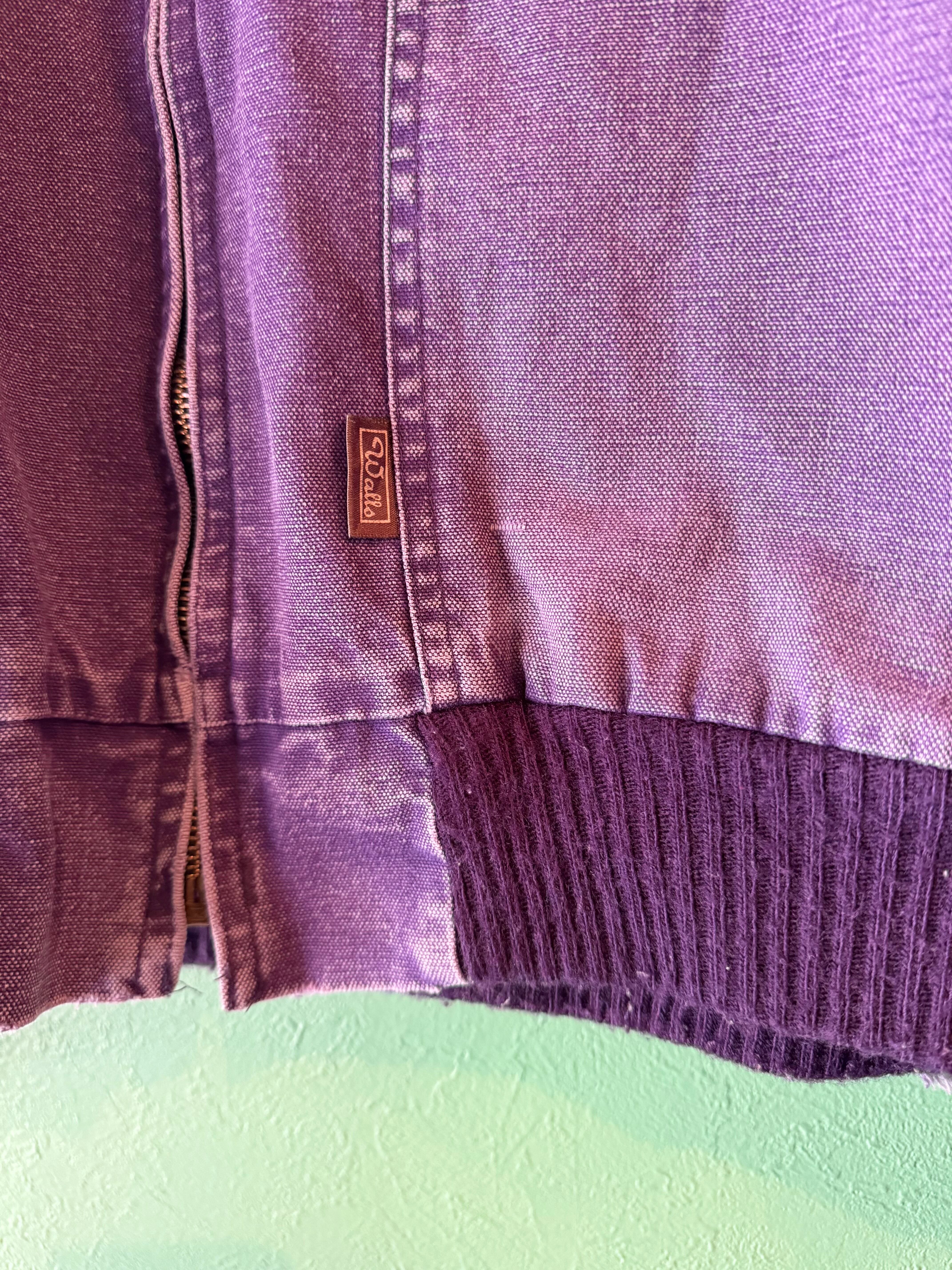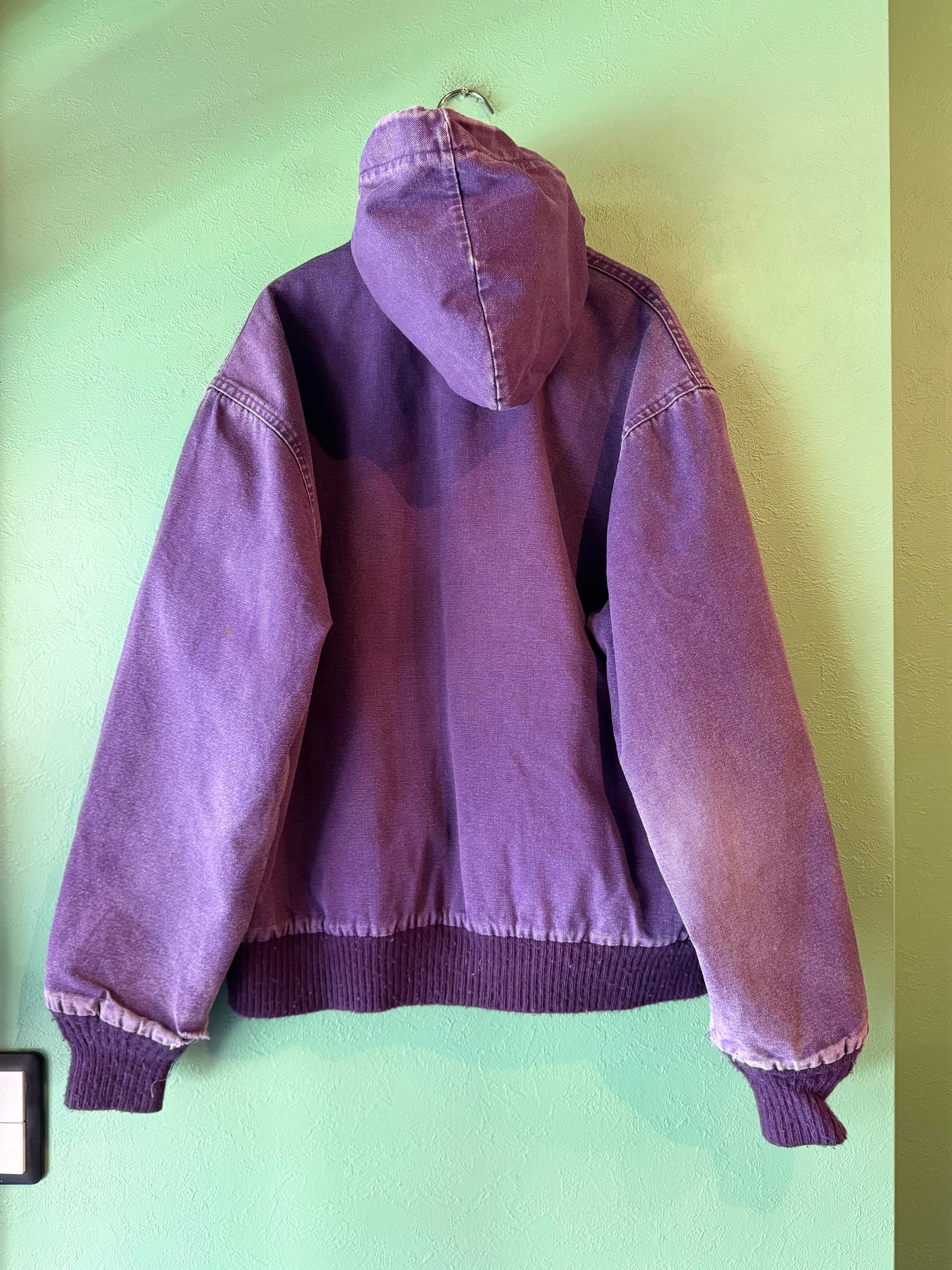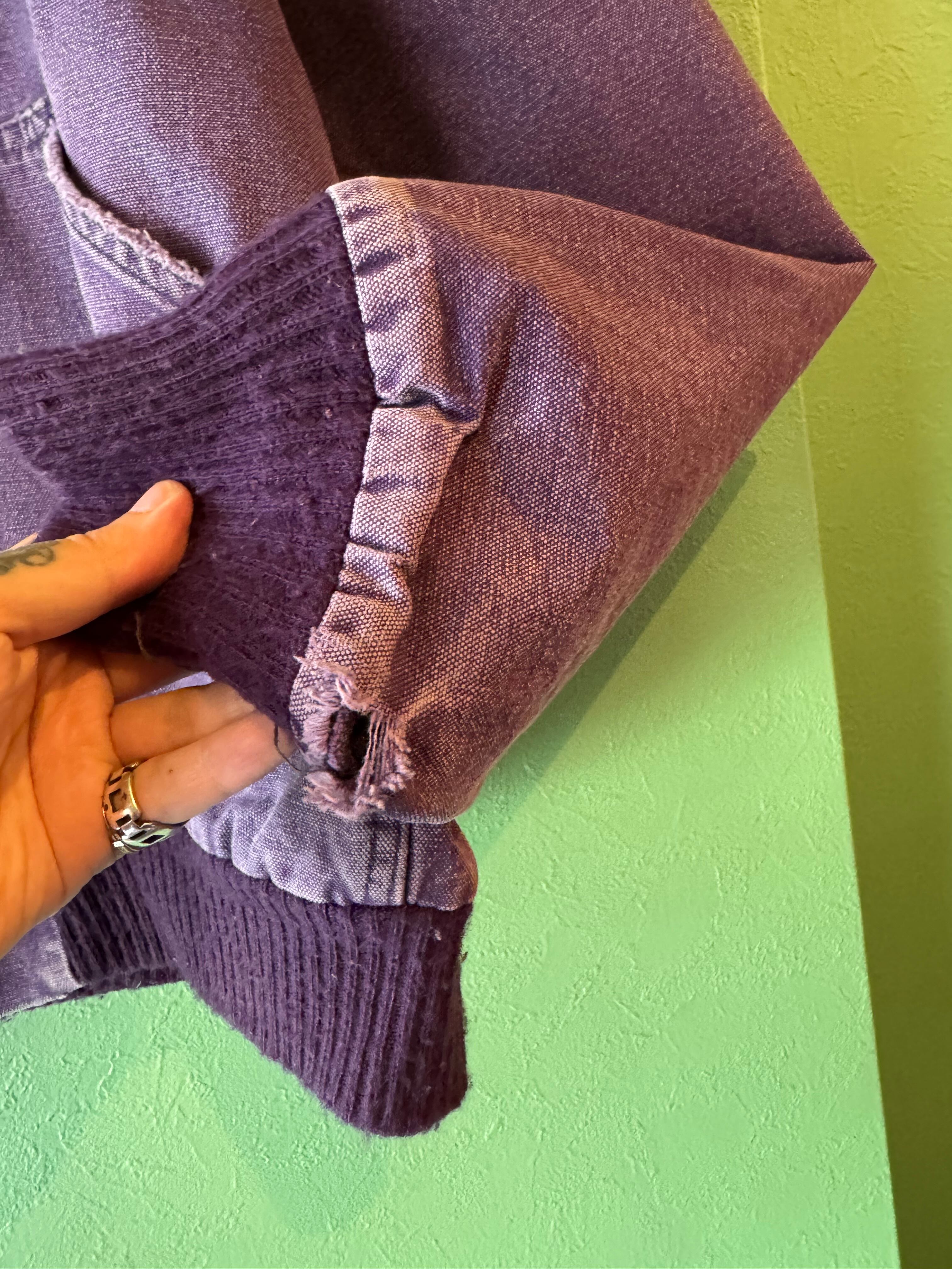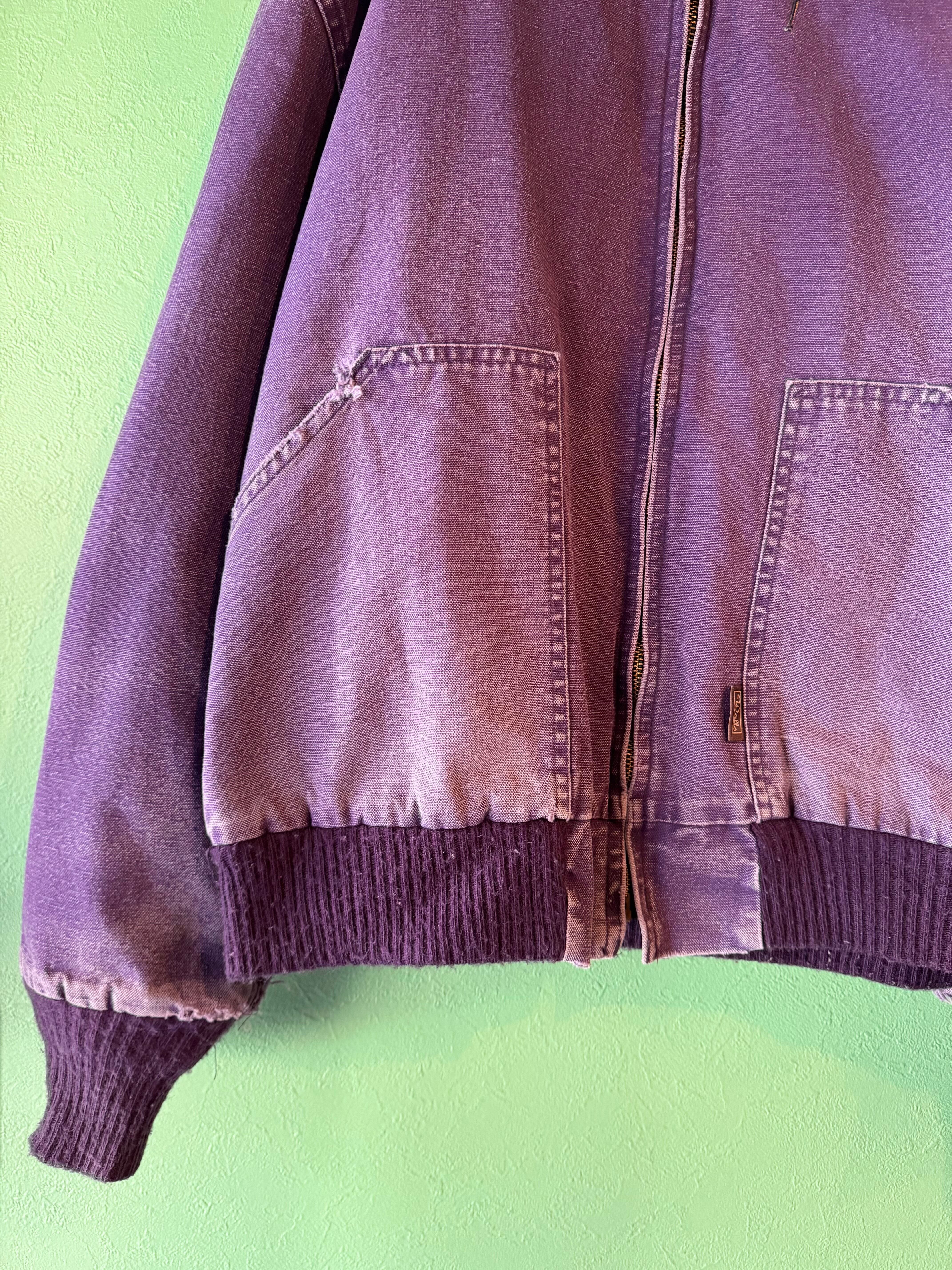 裾やポケット付近にダメージはありますがヴィンテージならではの色落ち具合に、カーハートのオリジナルでは見かけないパープルカラーが魅力的で天邪鬼な方におススメです。