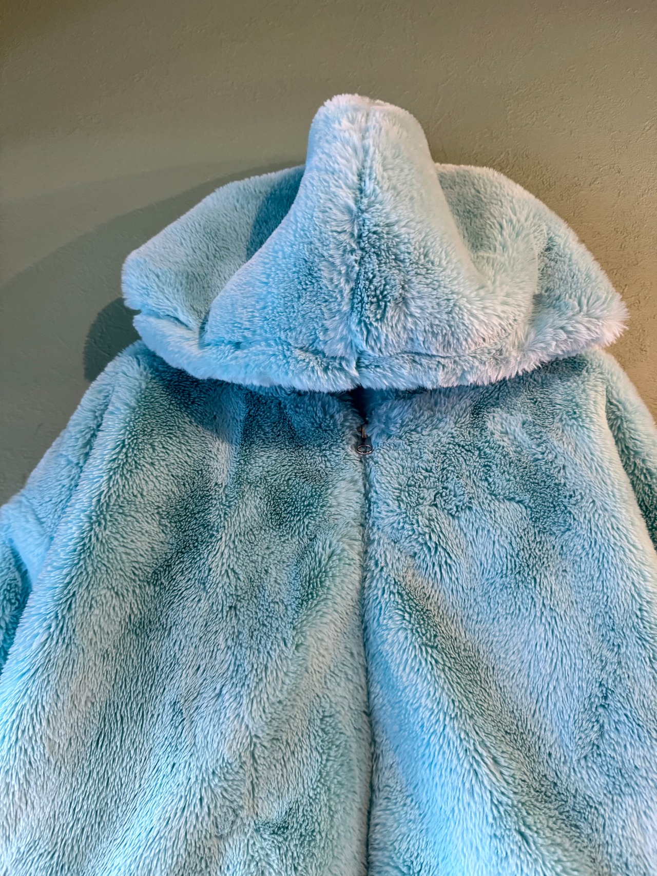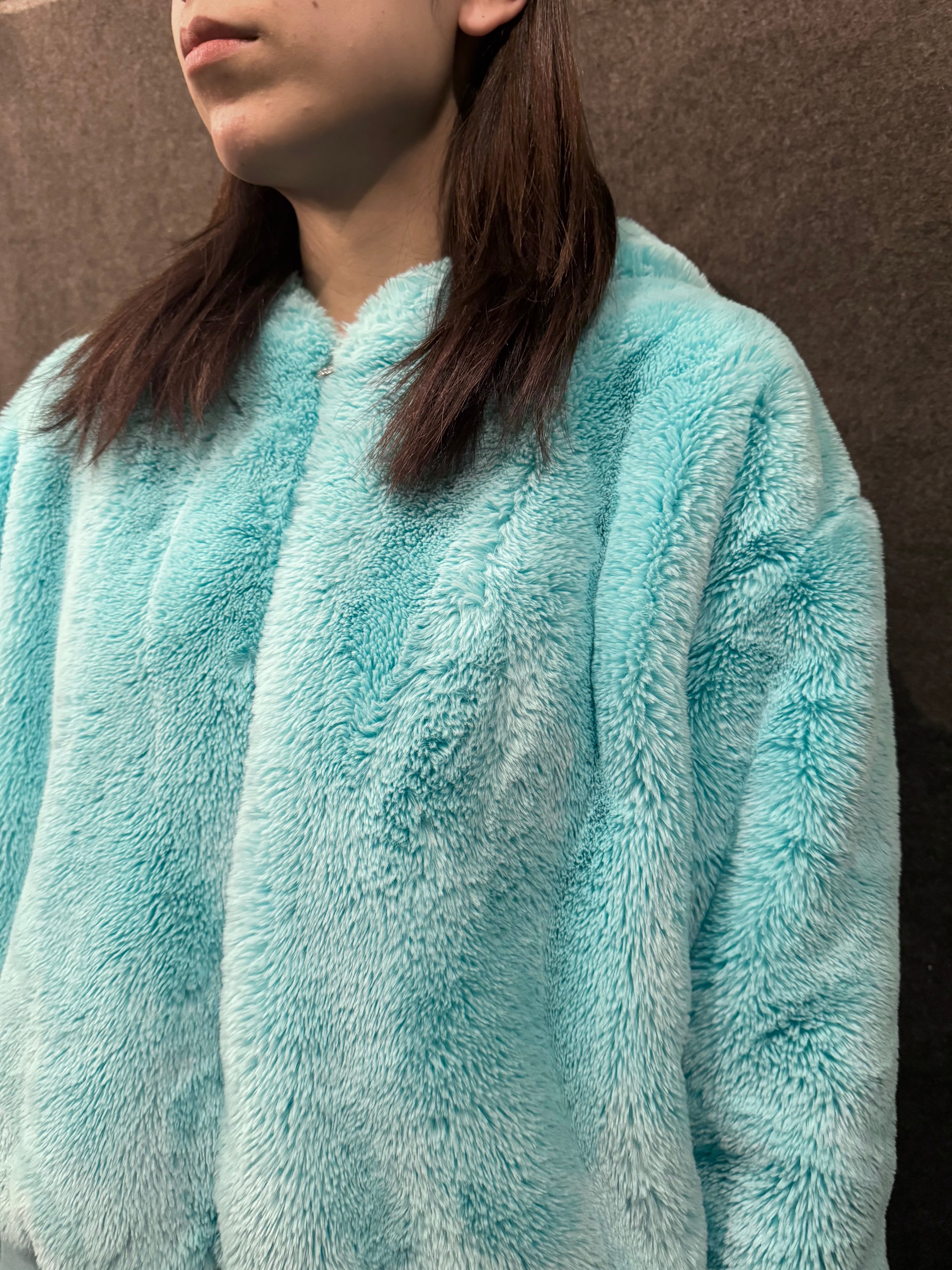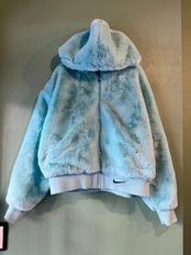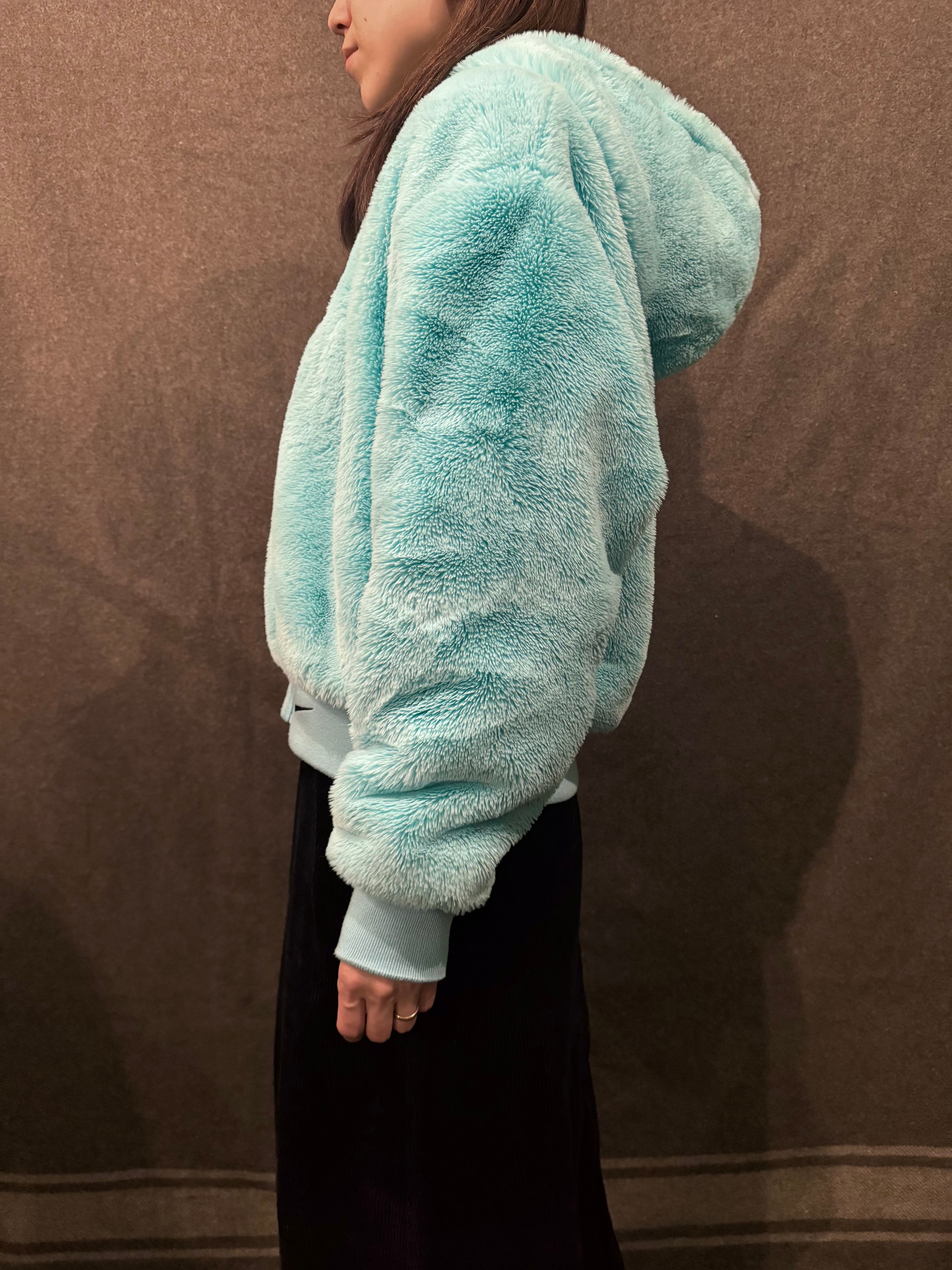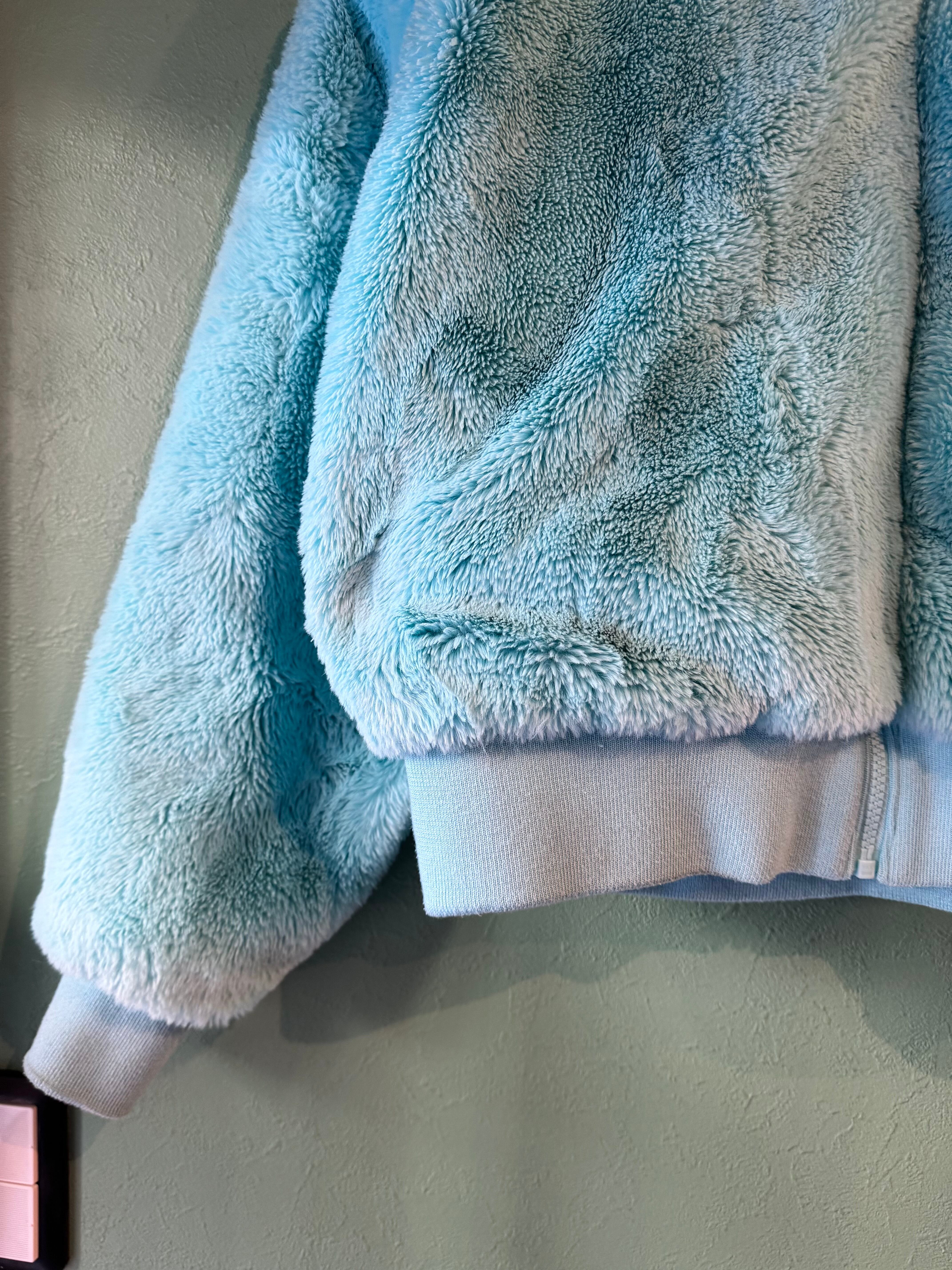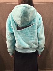 こちらはティファニーブルーのような鮮やかな水色が可愛いフーディジャケット。