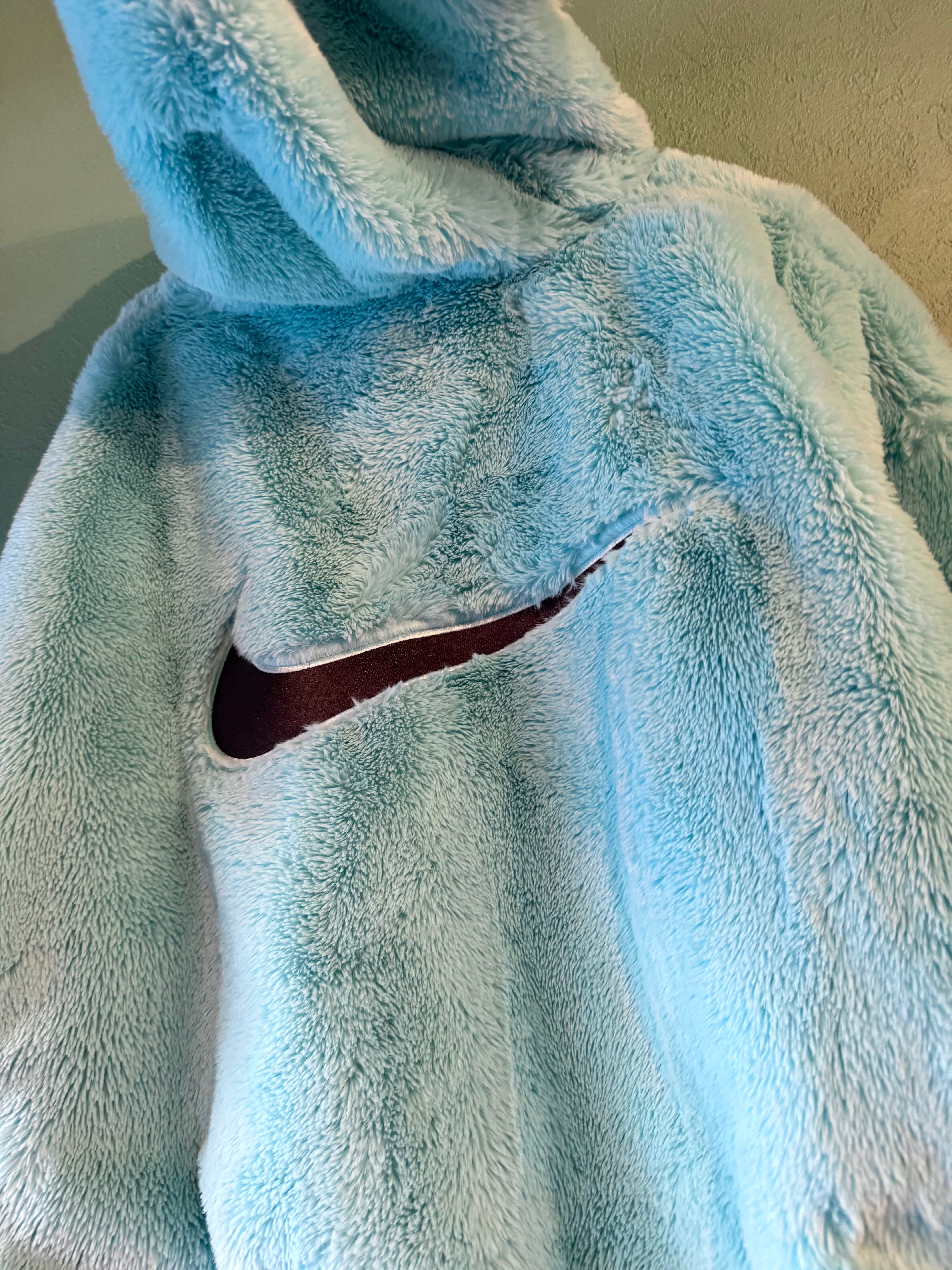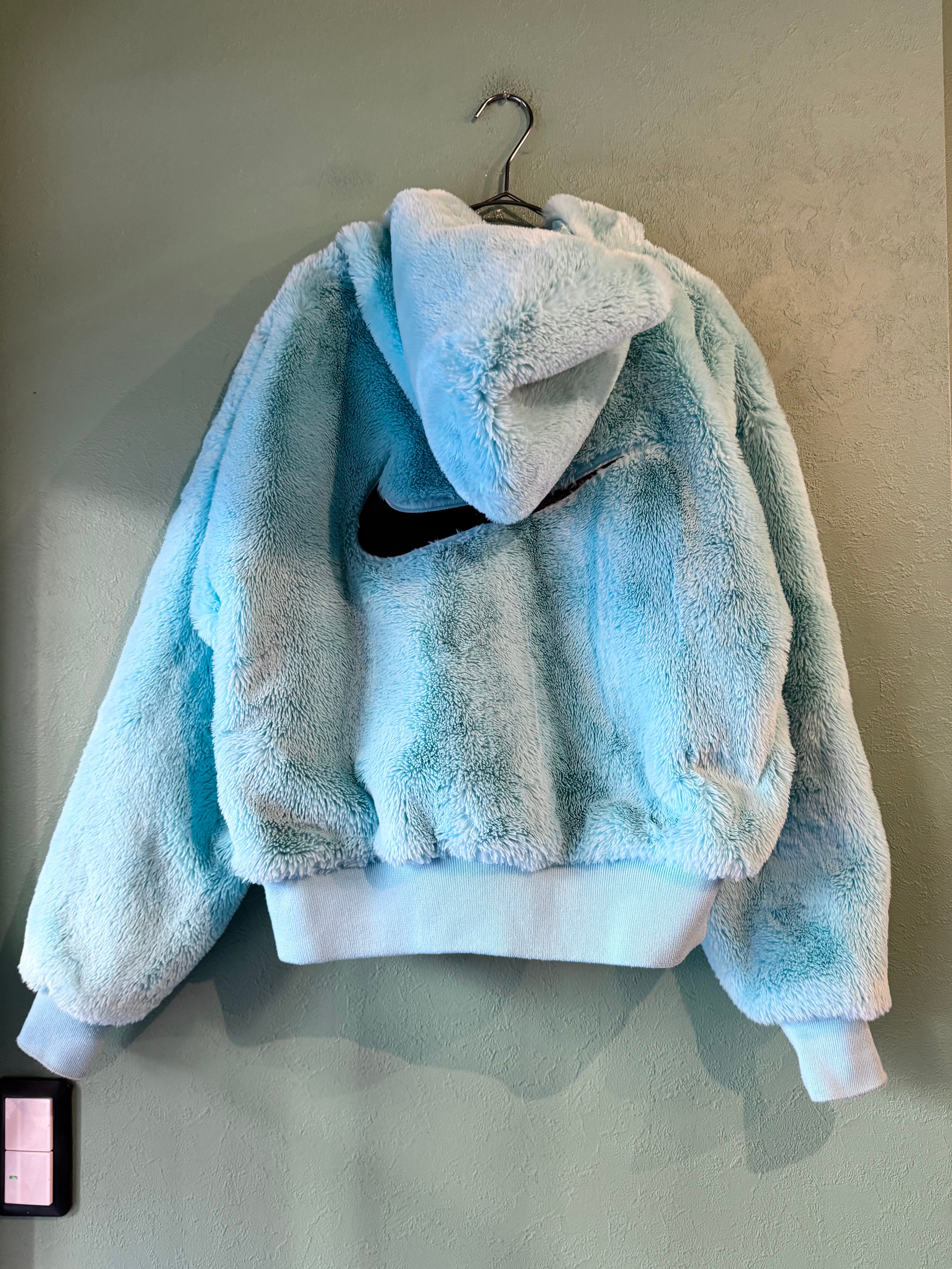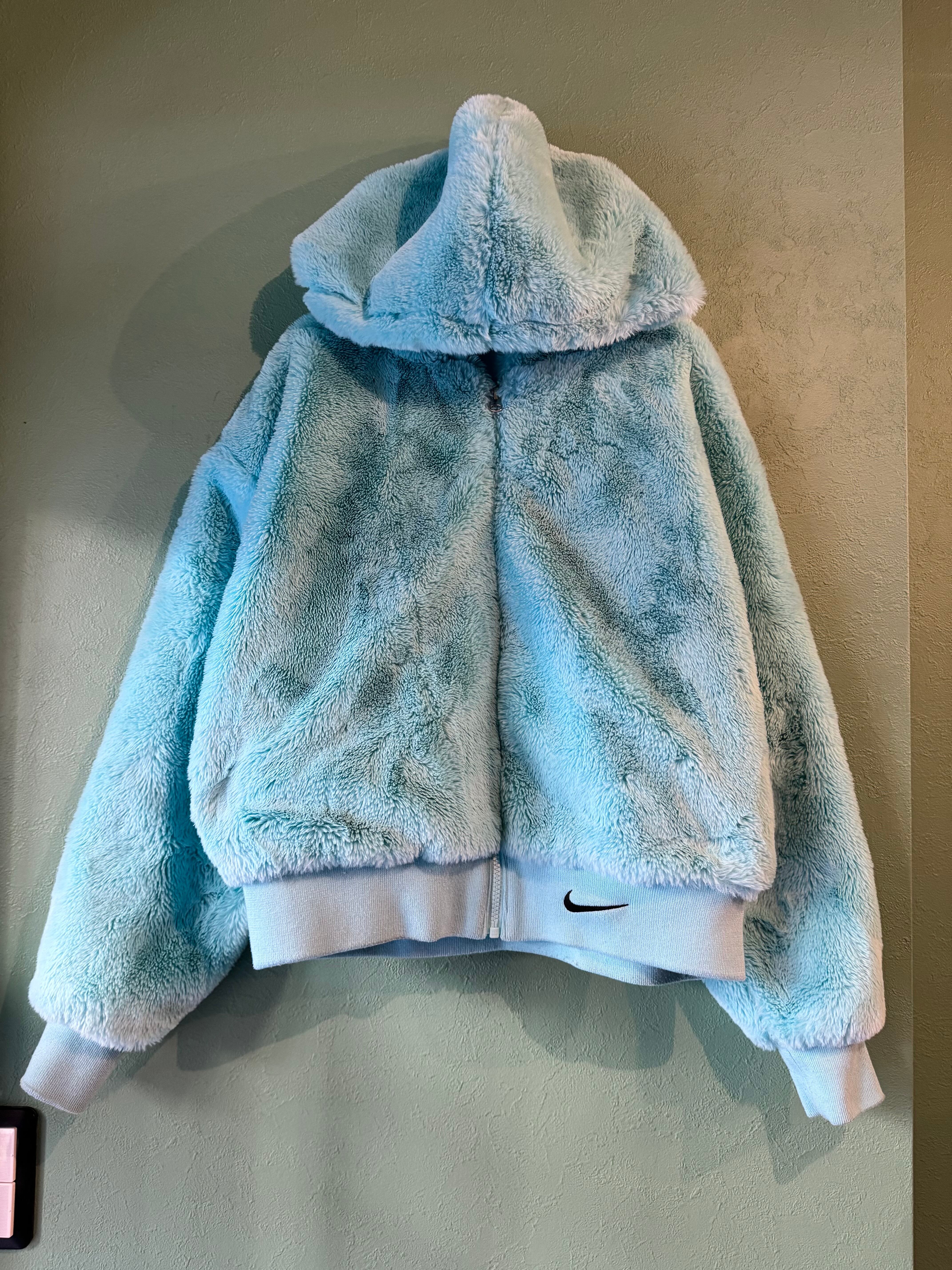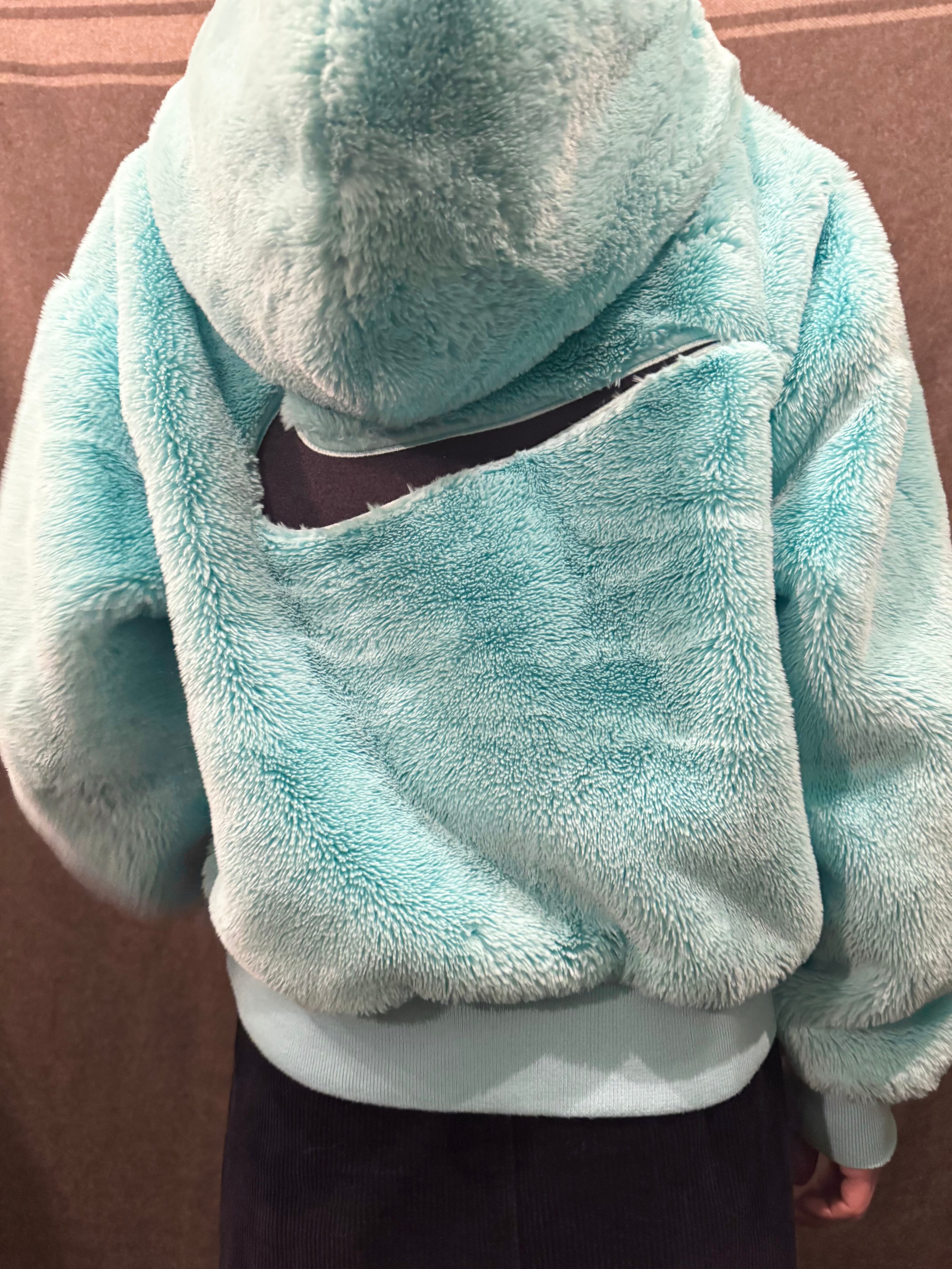こちらはティファニーブルーのような鮮やかな水色が可愛いフーディジャケット。