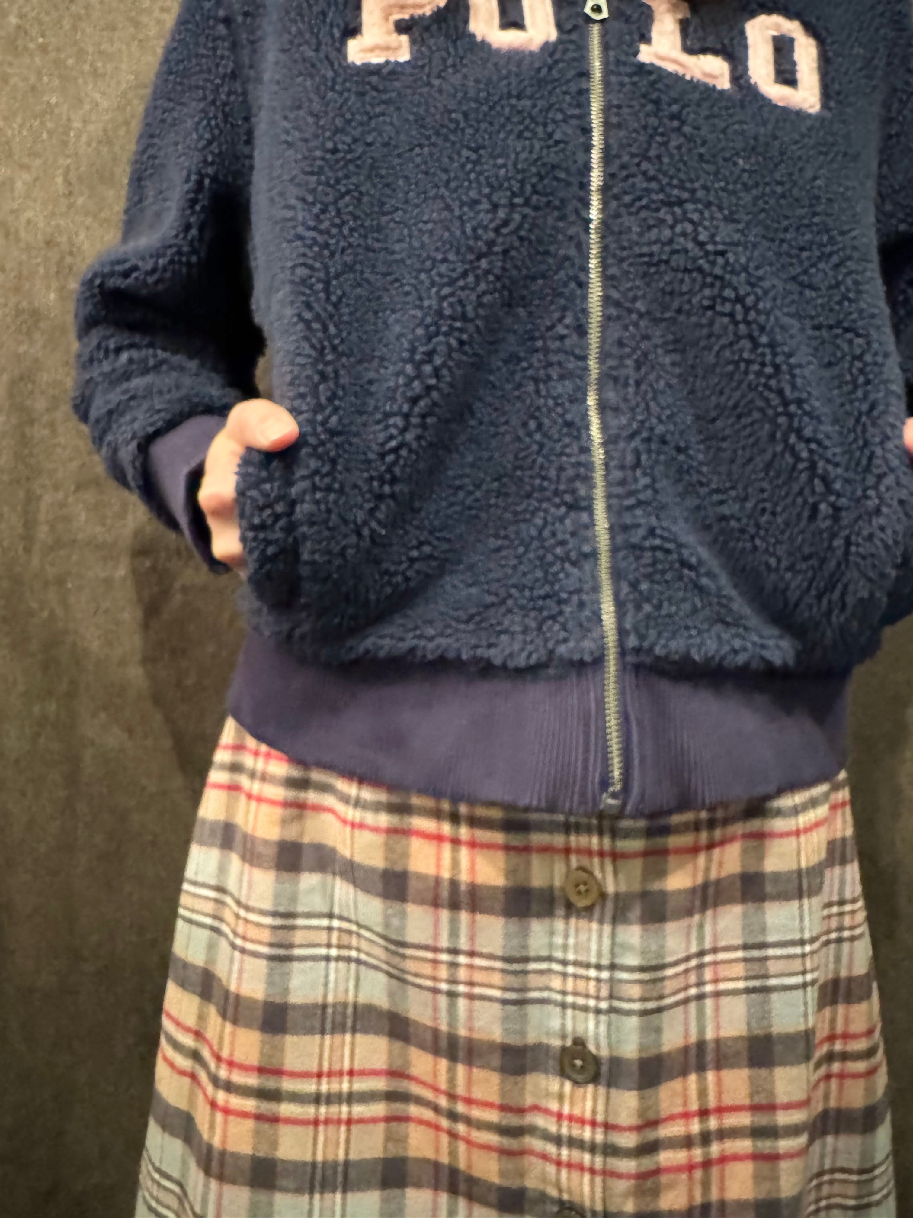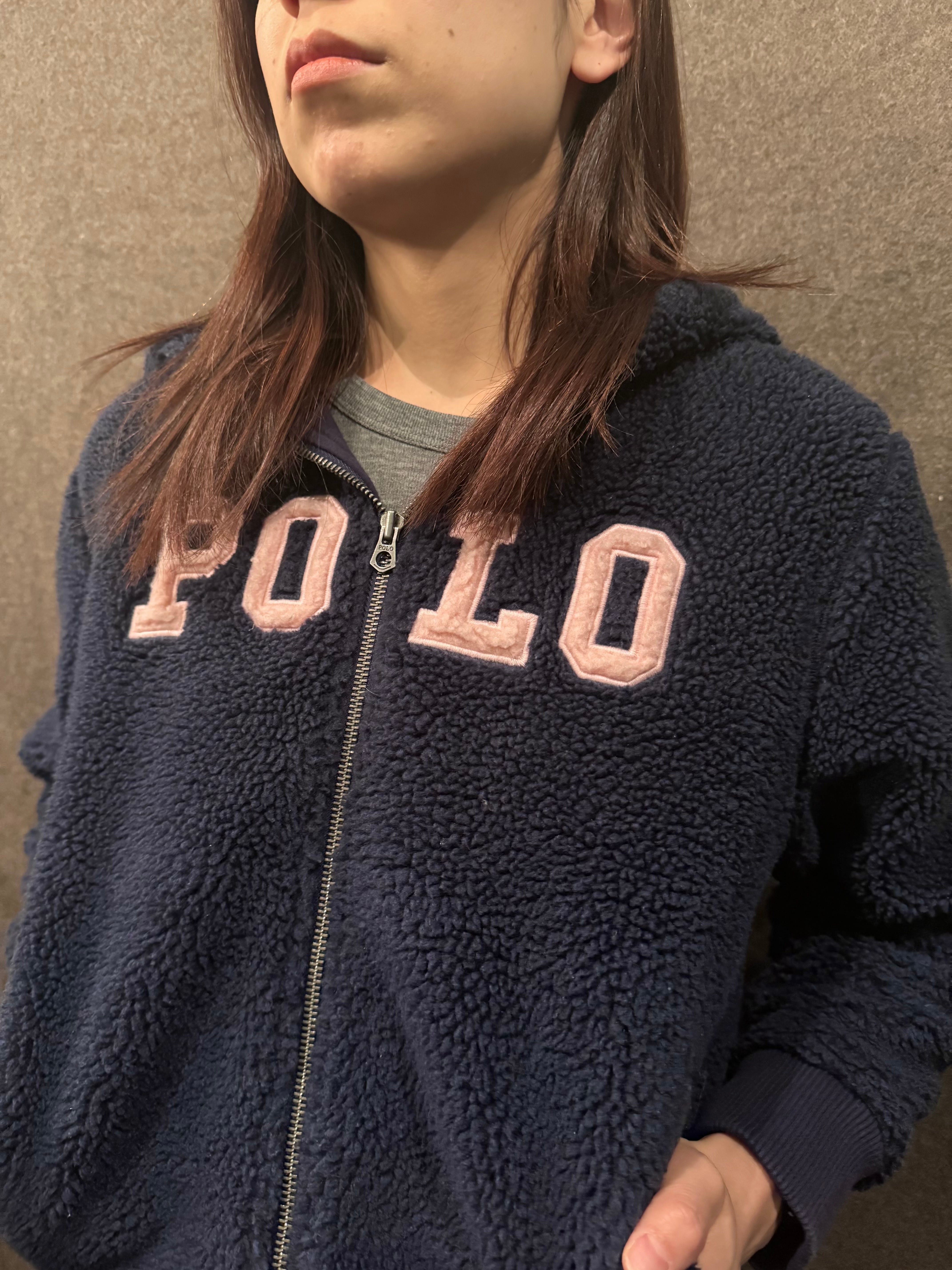 こちらはもこもことした肉厚なボアフリース生地のジップパーカー。