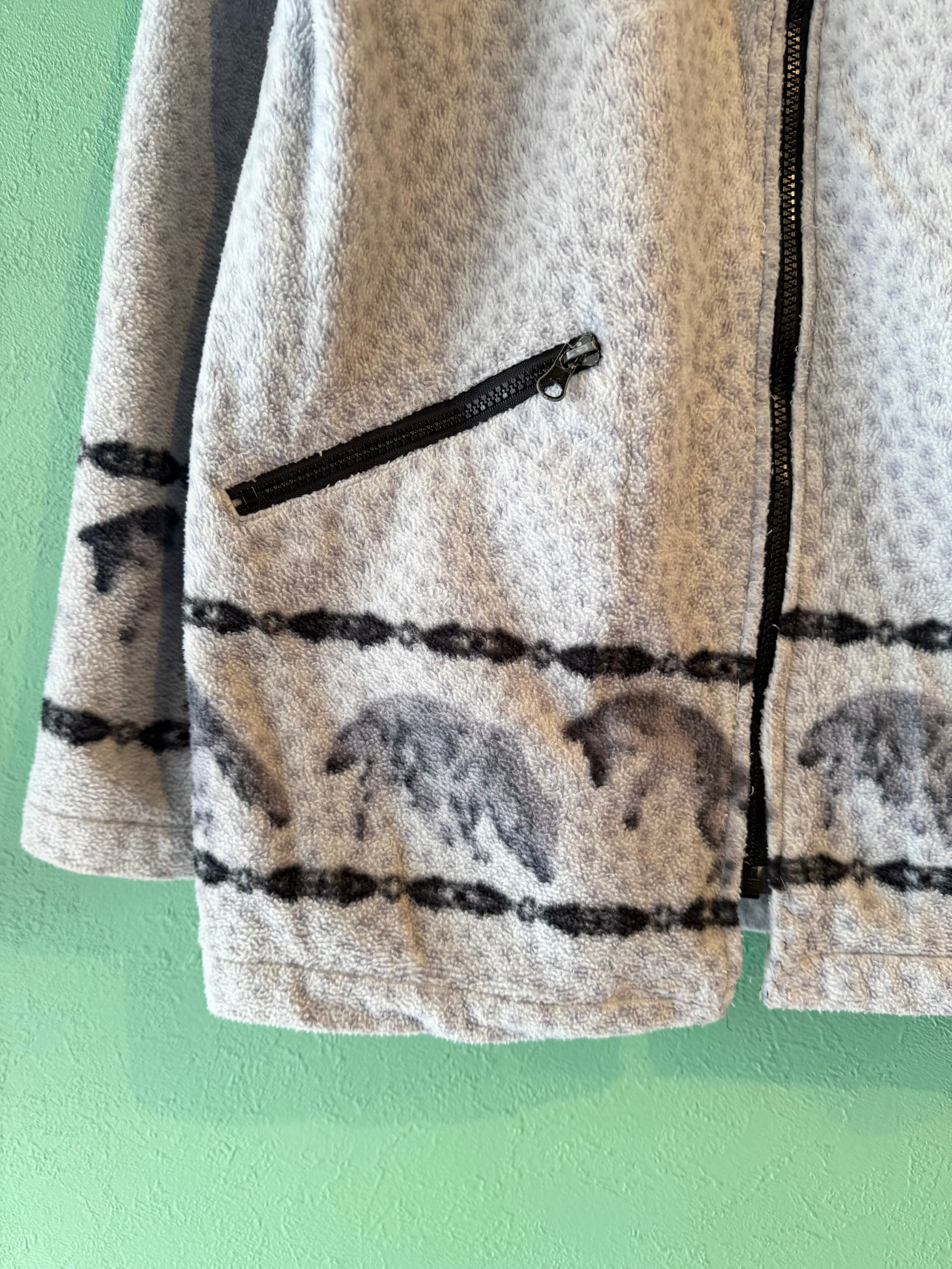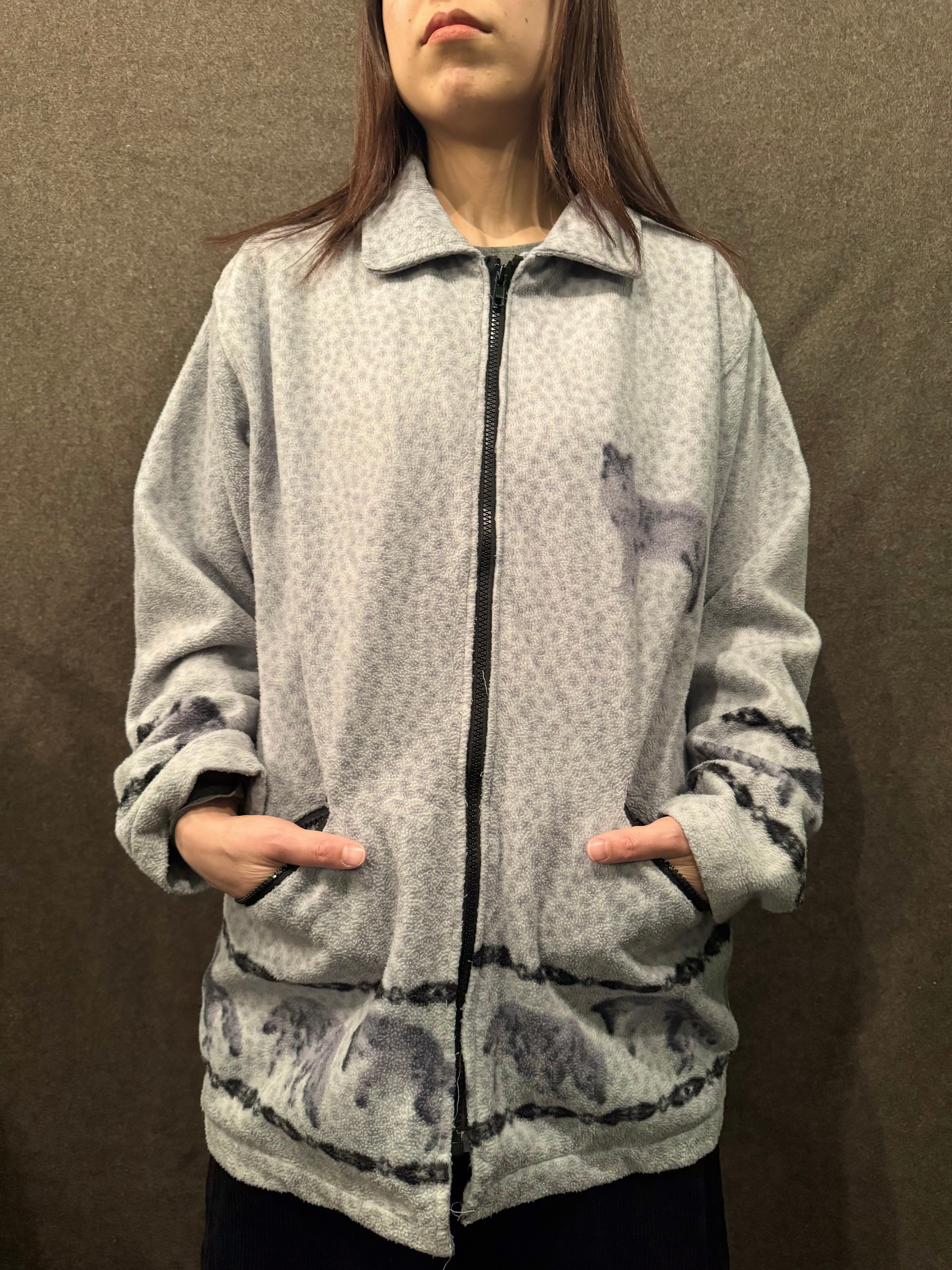 こちらはデフォルメされたオオカミのガラスが可愛いフリースジャケット。