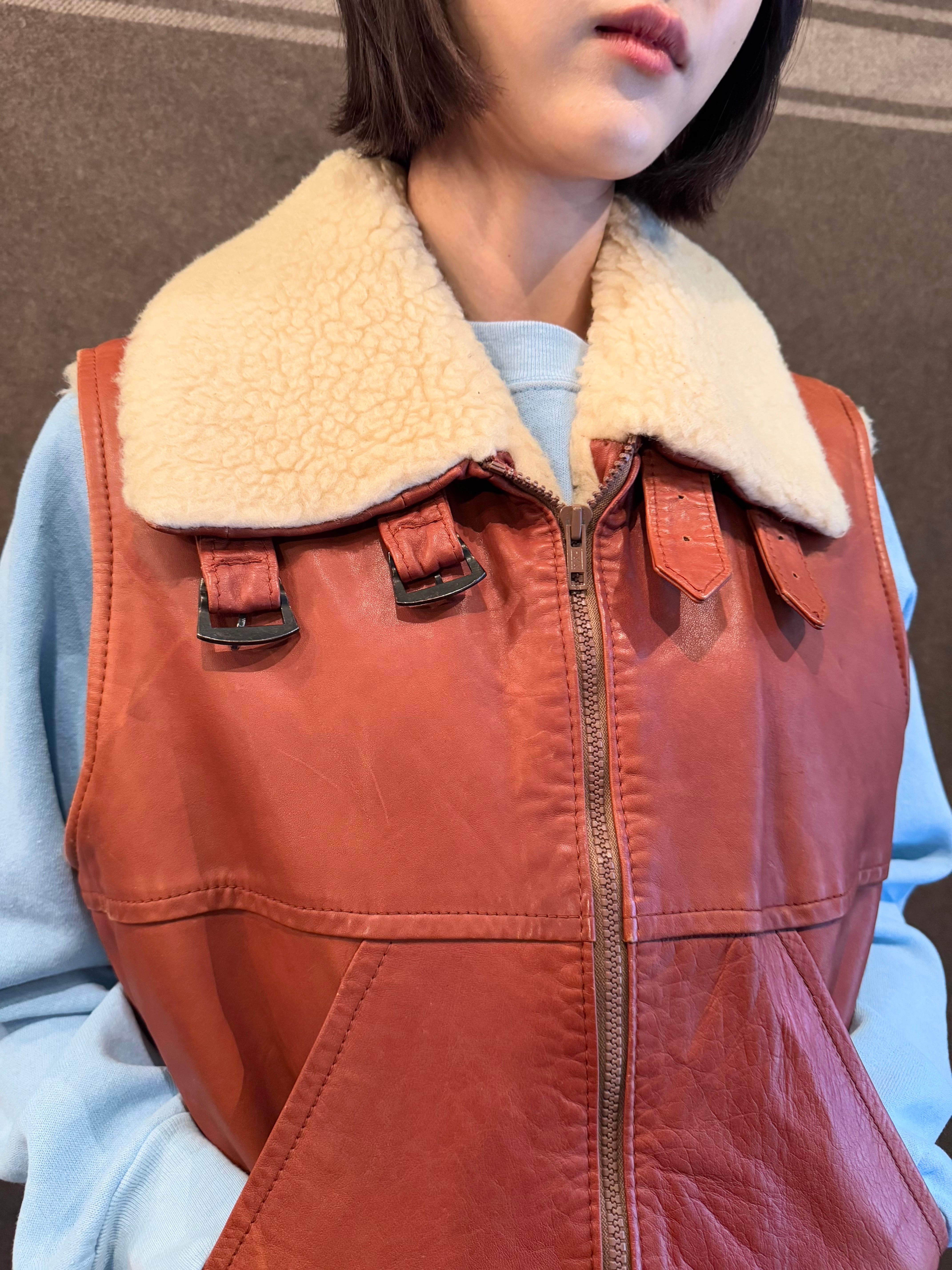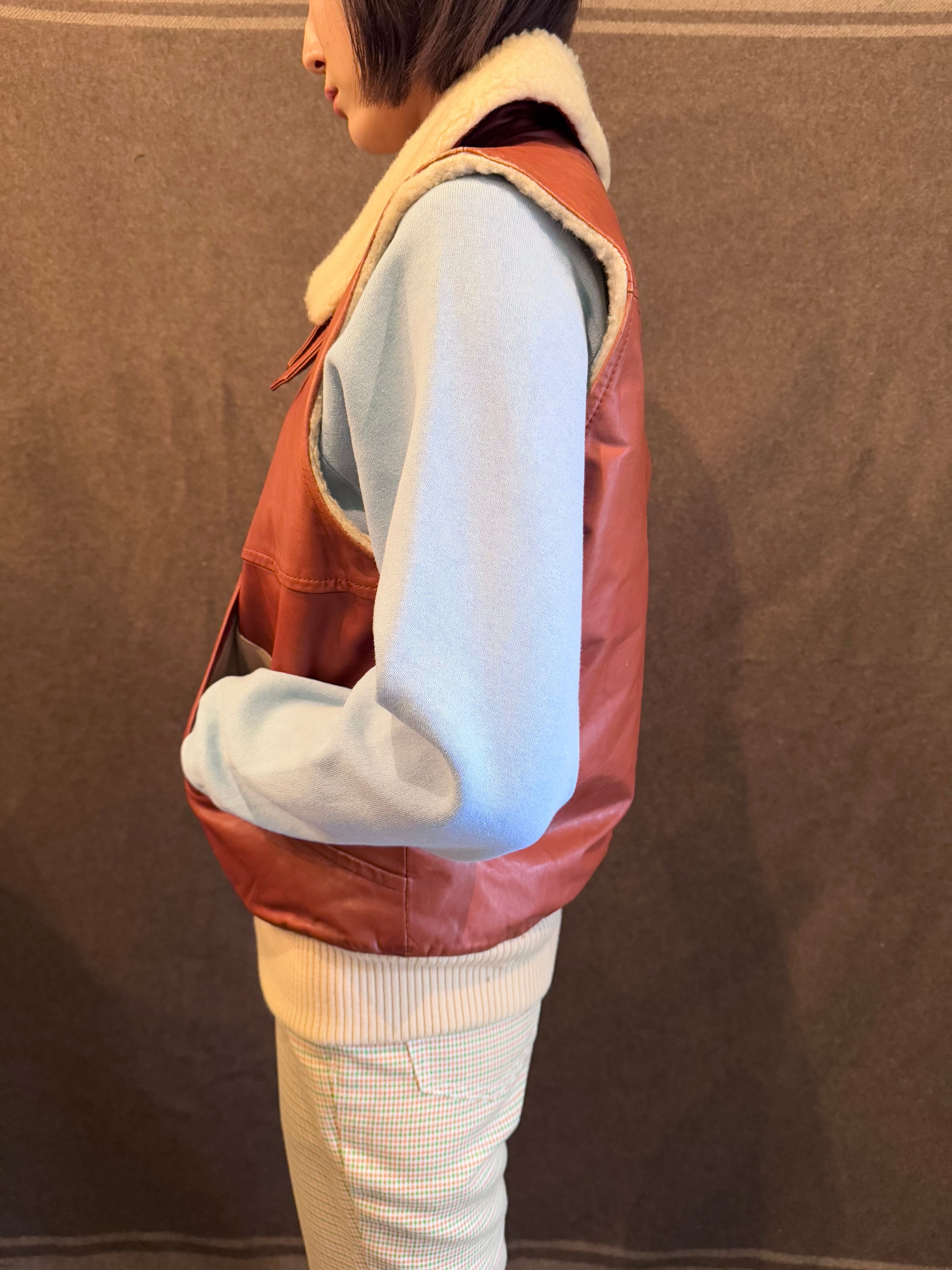 こちらはまるでアメリカ軍のB3フライトジャケットの袖をカットオフしたかのようなデザインのレザーベスト。