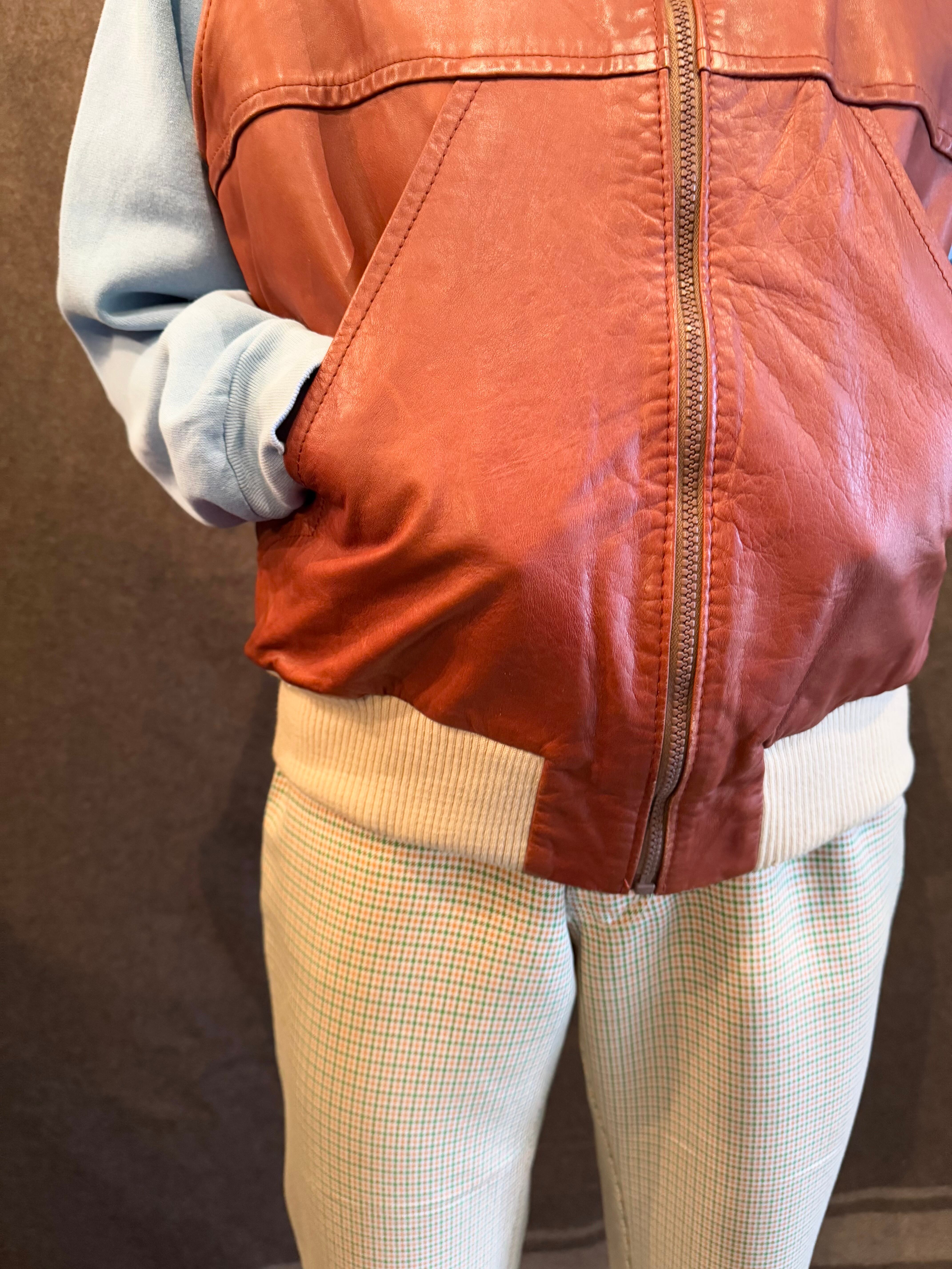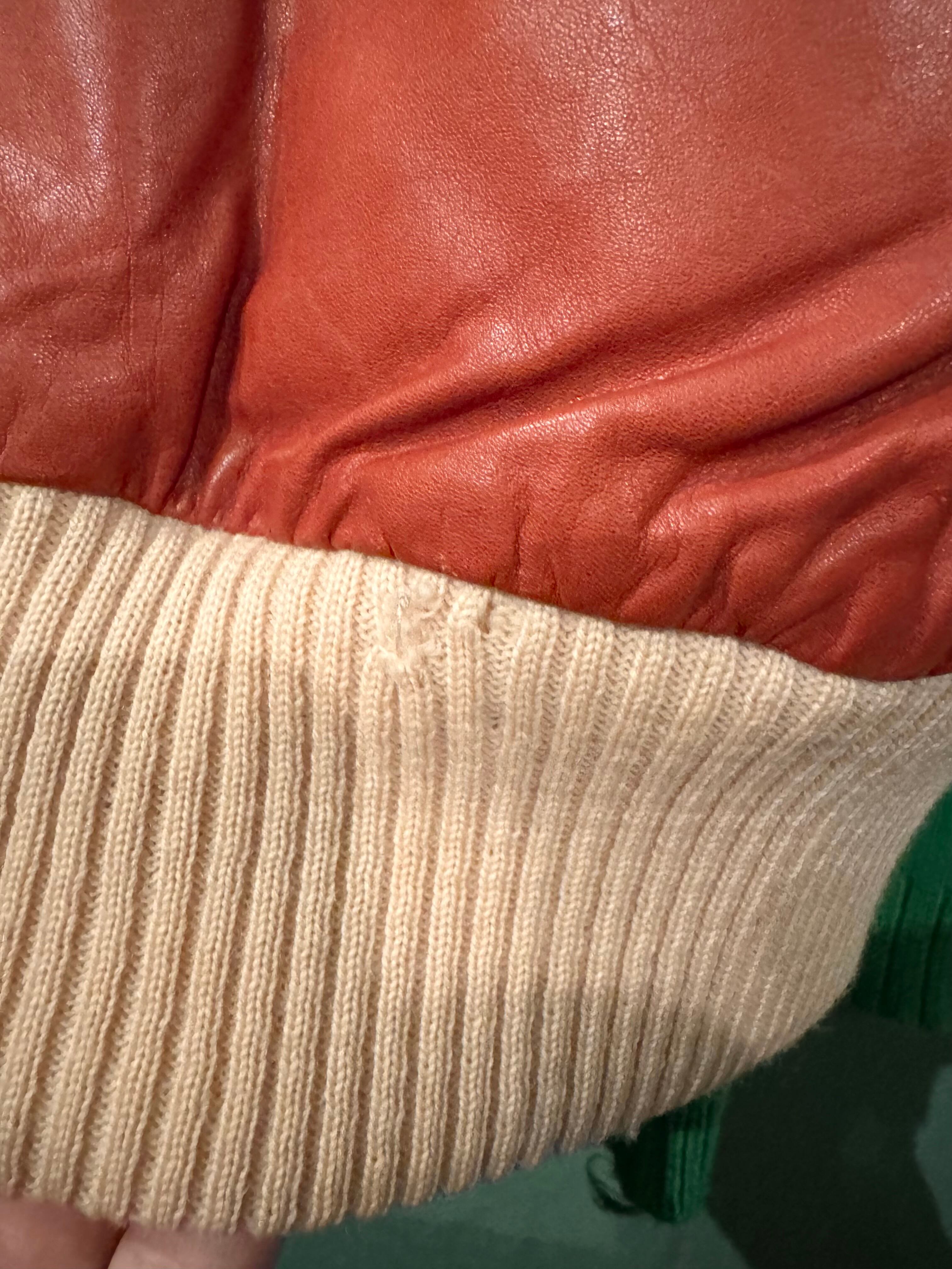 背面にレザー特有のスレ、リブ部分にダメージがありますが古着を着慣れている方であればあまり気にならないかと思います。