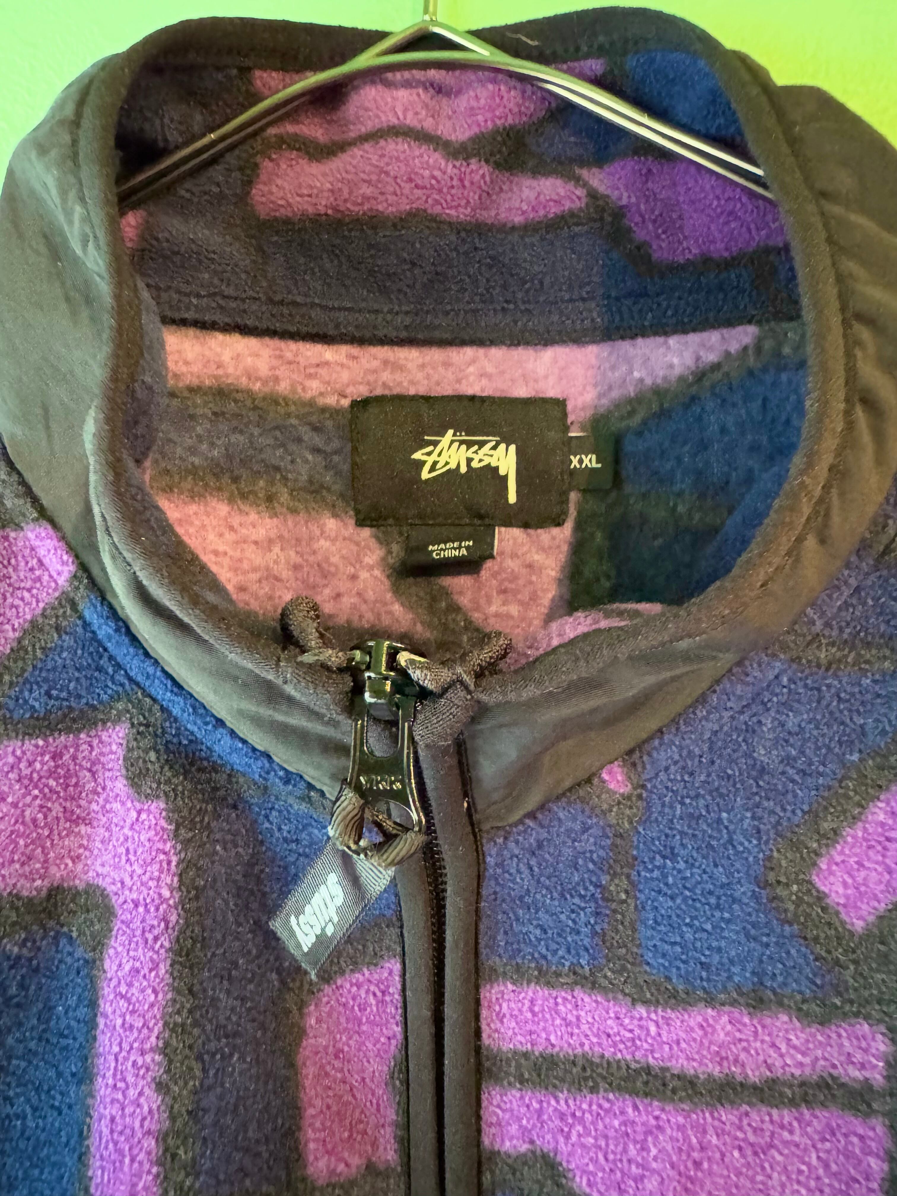 こちらはカモフラージュ?パターンのような独特な柄のフリースジャケット。