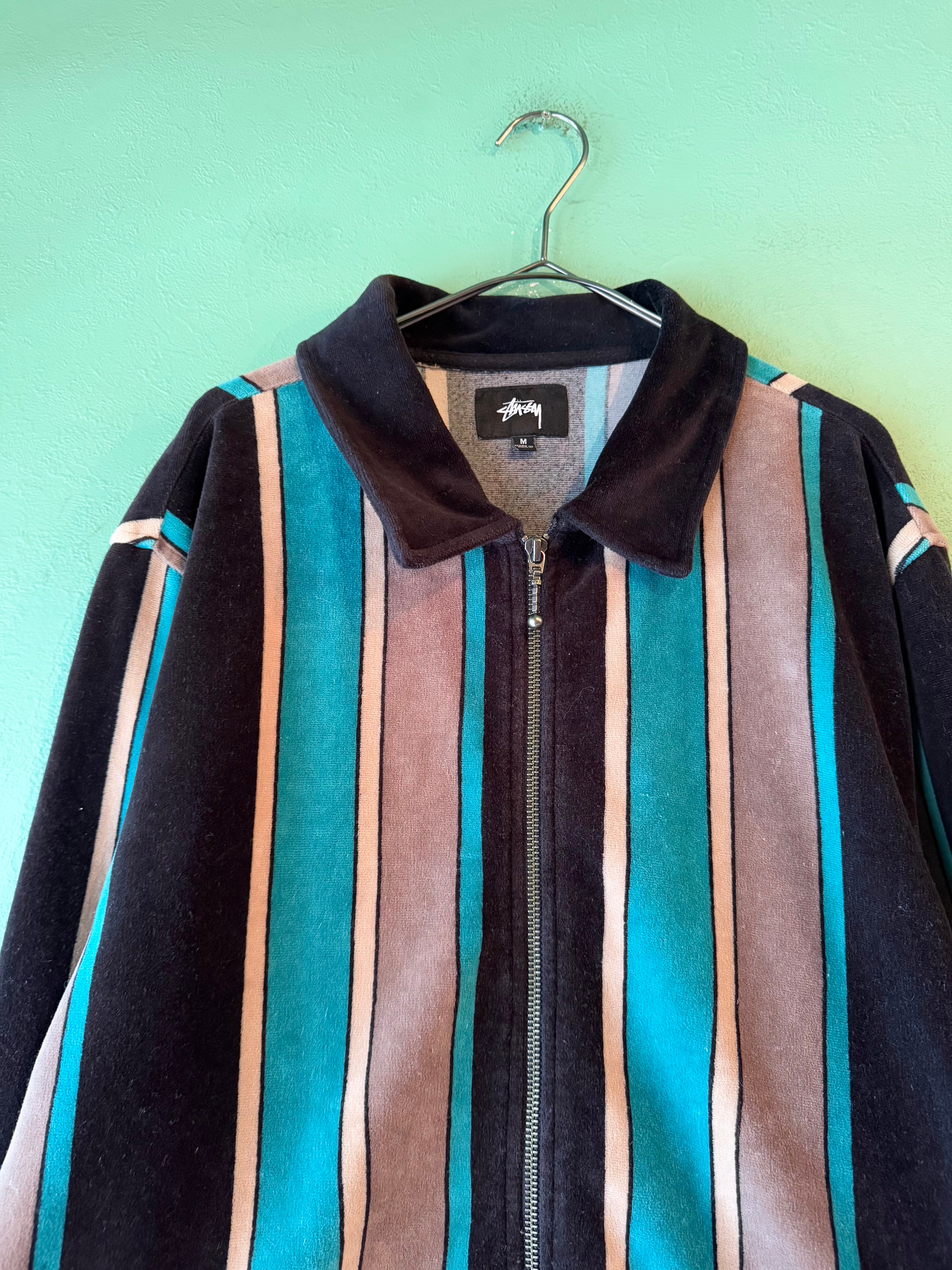 こちらはブルー×グレー×ブラックをベースとしたヴィンテージライクなカラーリングのジップシャツジャケット。