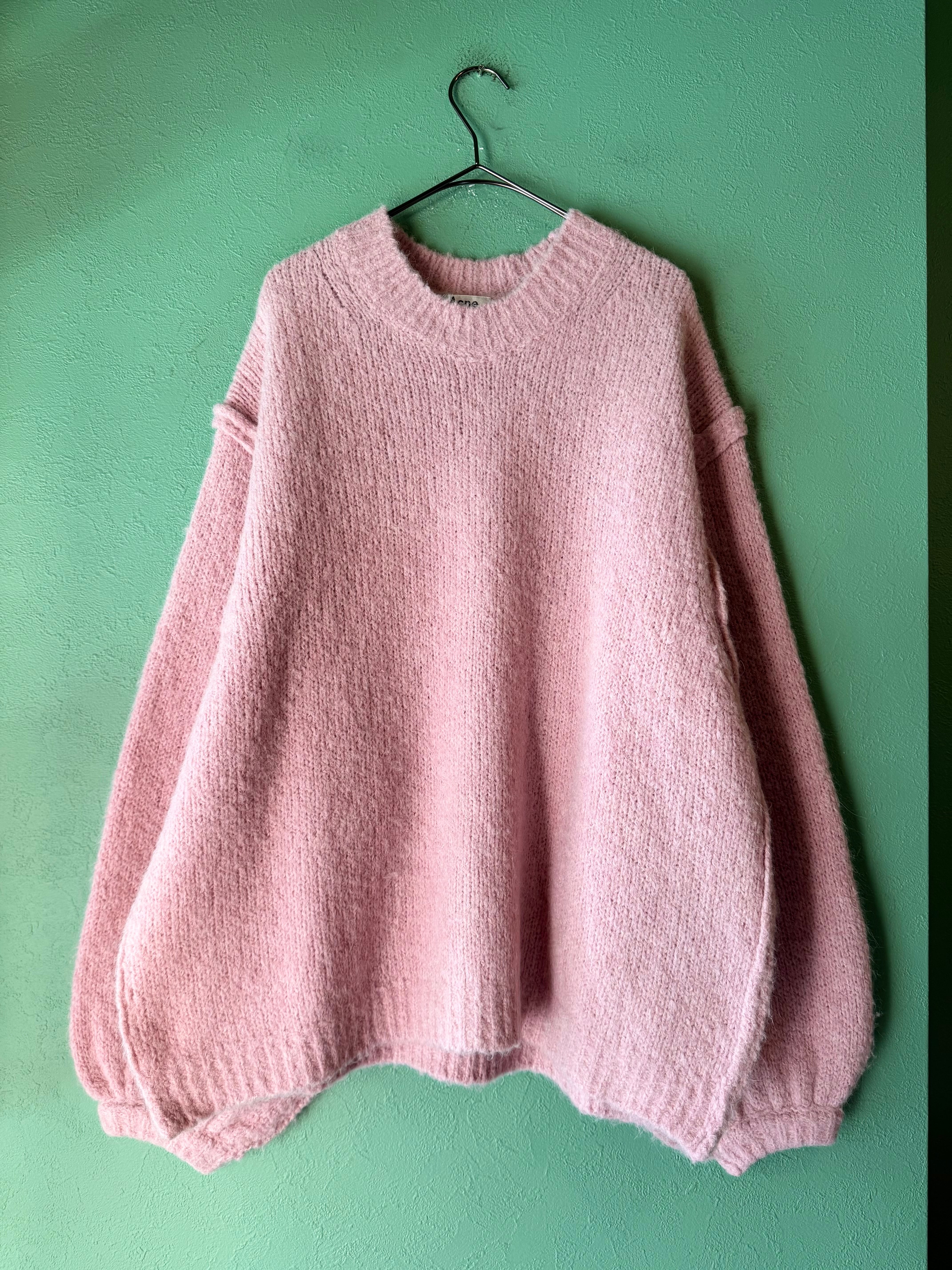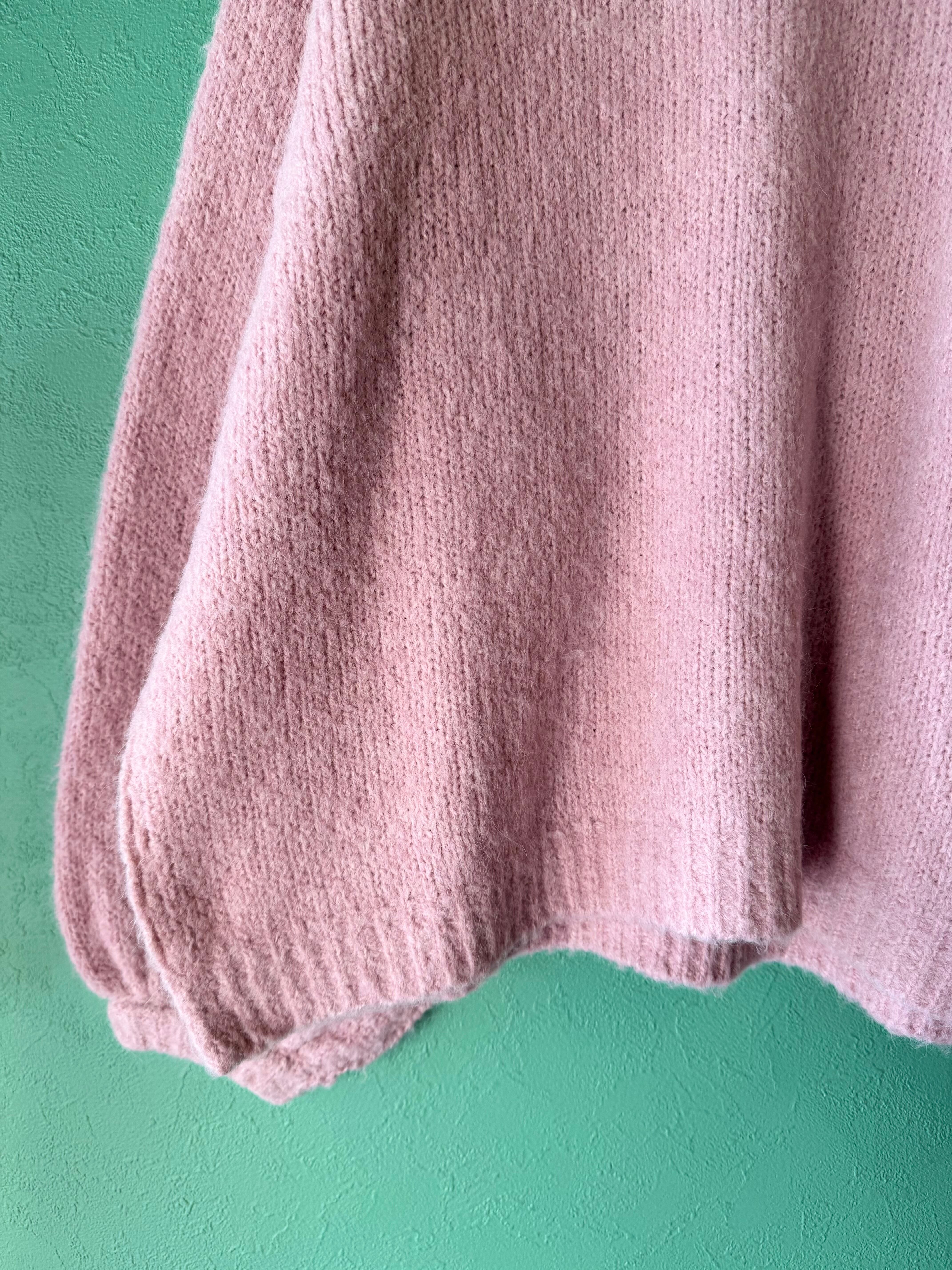 こちらは可愛らしいピンクカラーのデザインニット。なんと言ってもボリュームのあるバルーンスリーブが魅力的なデザインになっています。