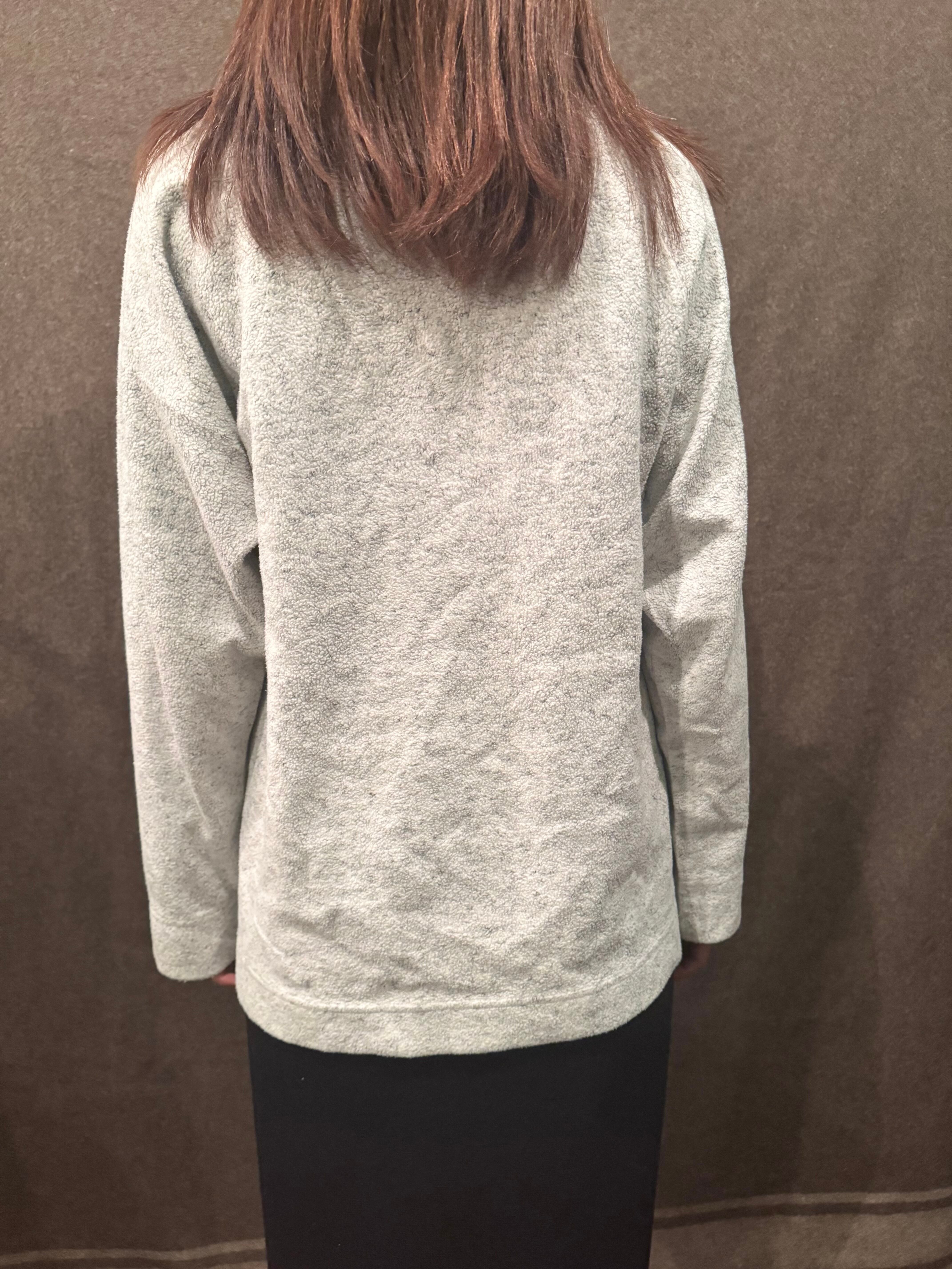 こちらはホワイト×グレーの霜降りがかったカラーリングのフリースシャツ。