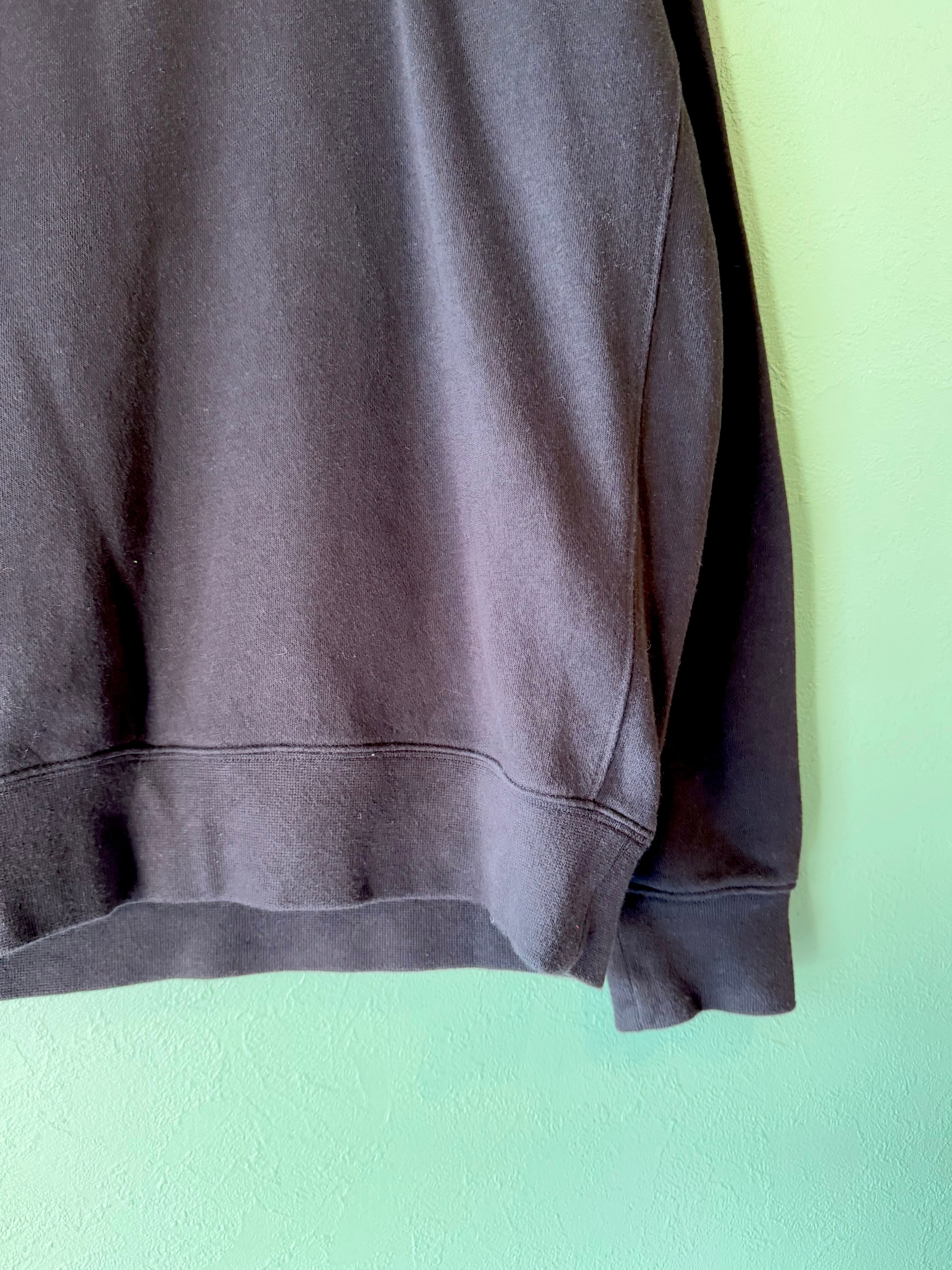 こちらはベーシックに使いやすいブラックカラーボディーに、フロントにはナイキの定番であるスウォッシュロゴ刺繍のワッペンが施されたスウェット。