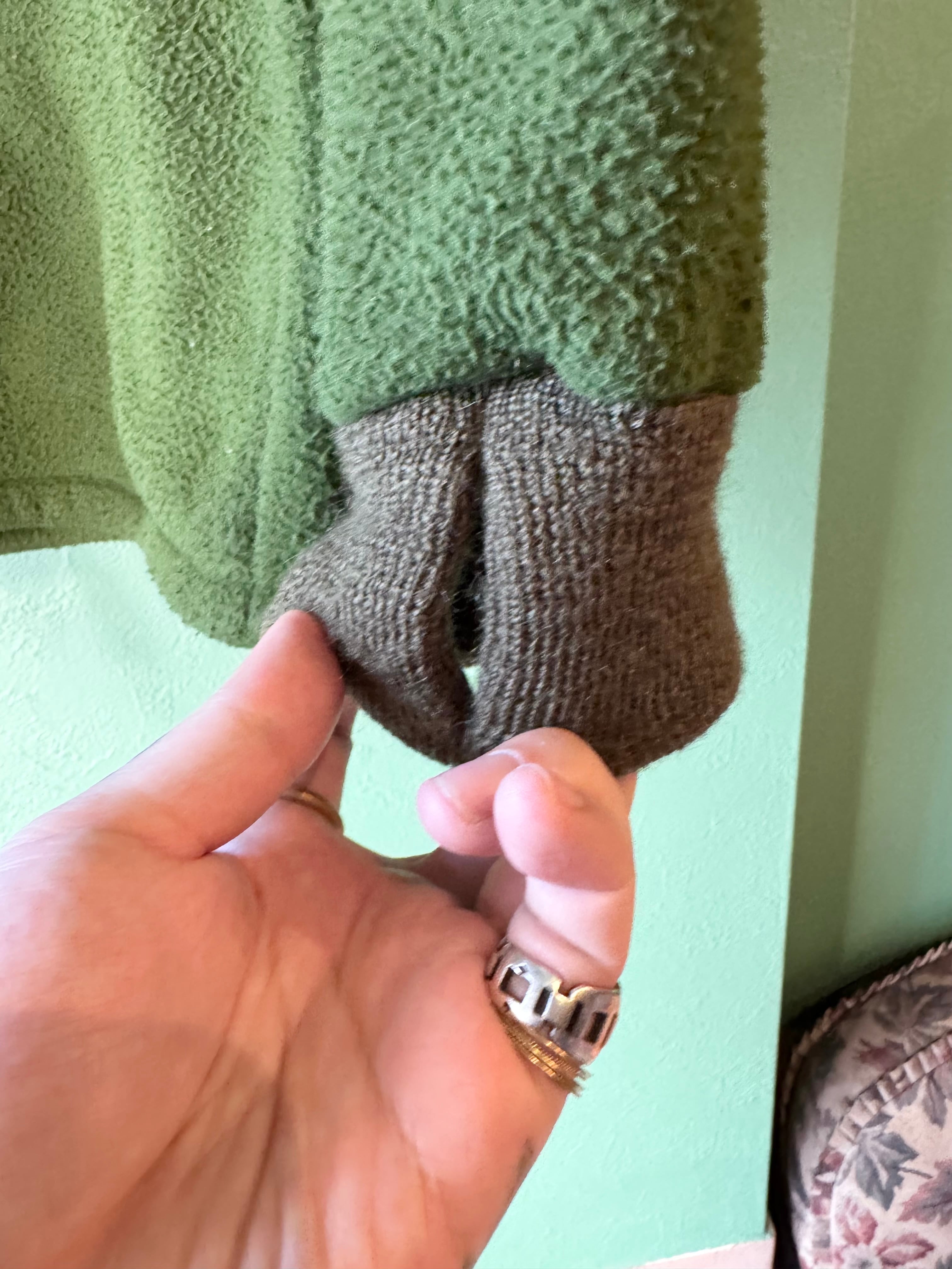 裾もドローコードが付いており、袖リブにはスリットの入ったハンドウォーマーのようなデザインもまるで