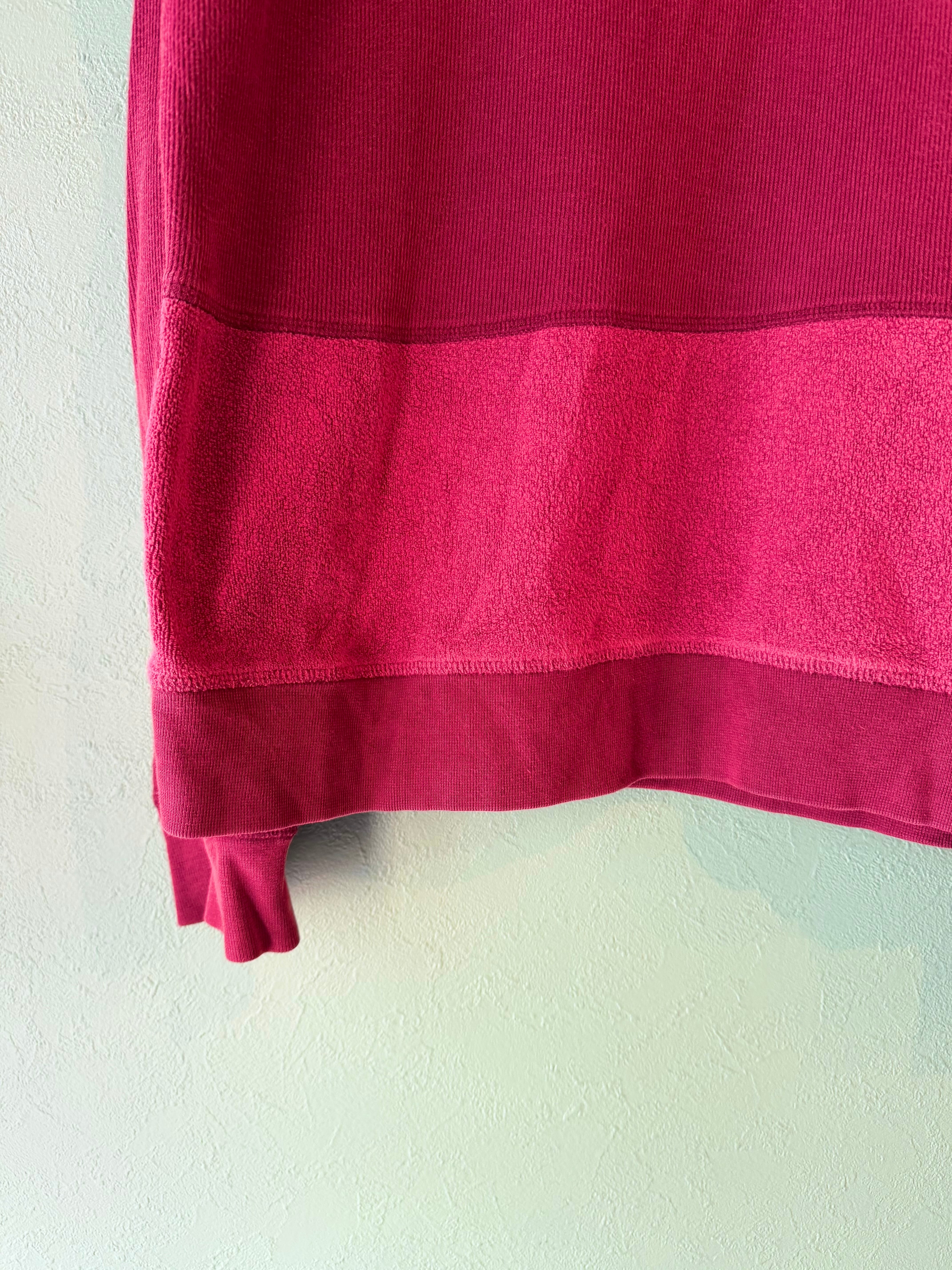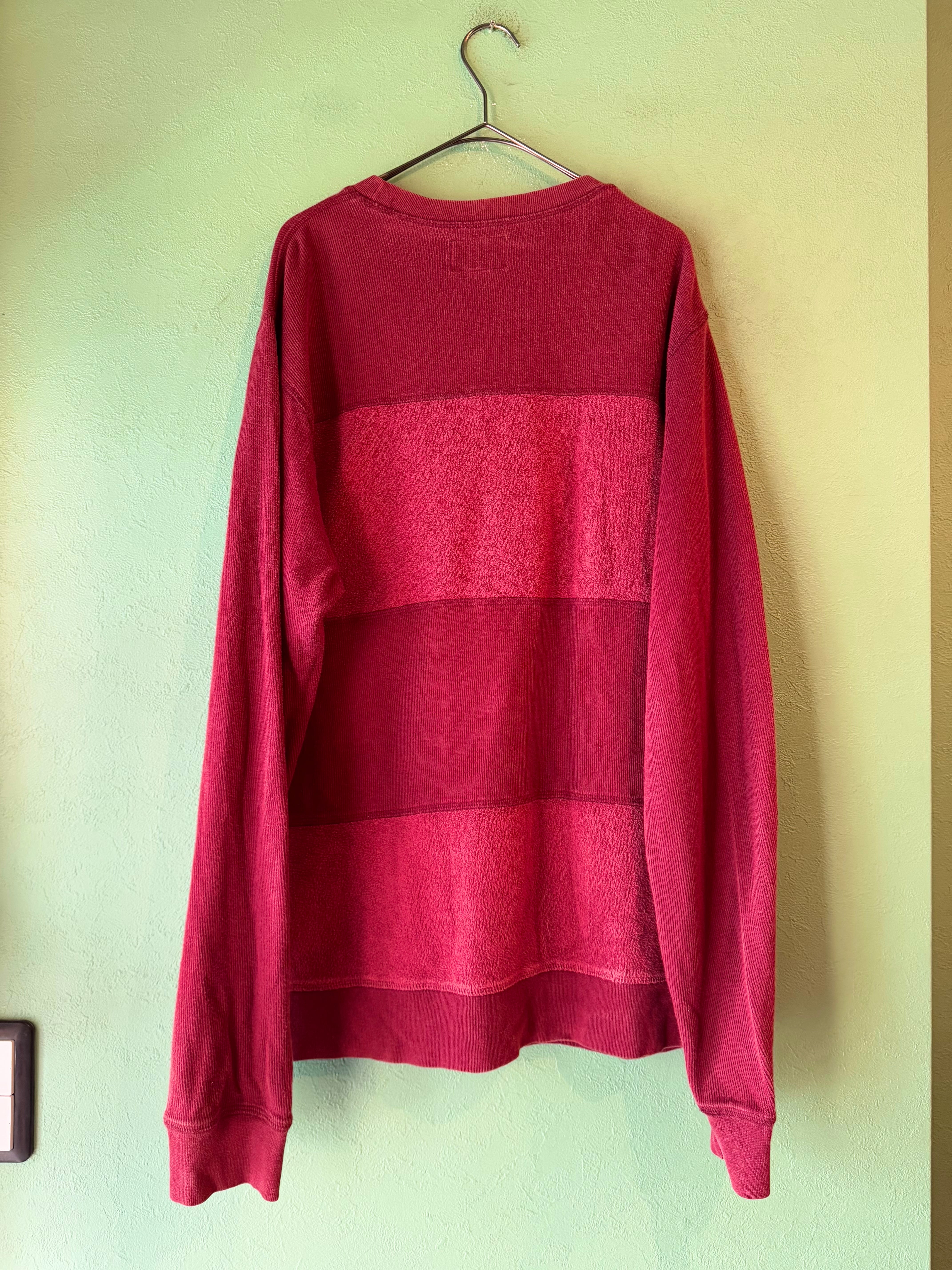 こちらはシックなバーガンディカラーにリブとパイルがドッキングされた独特なデザインのスウェット。
