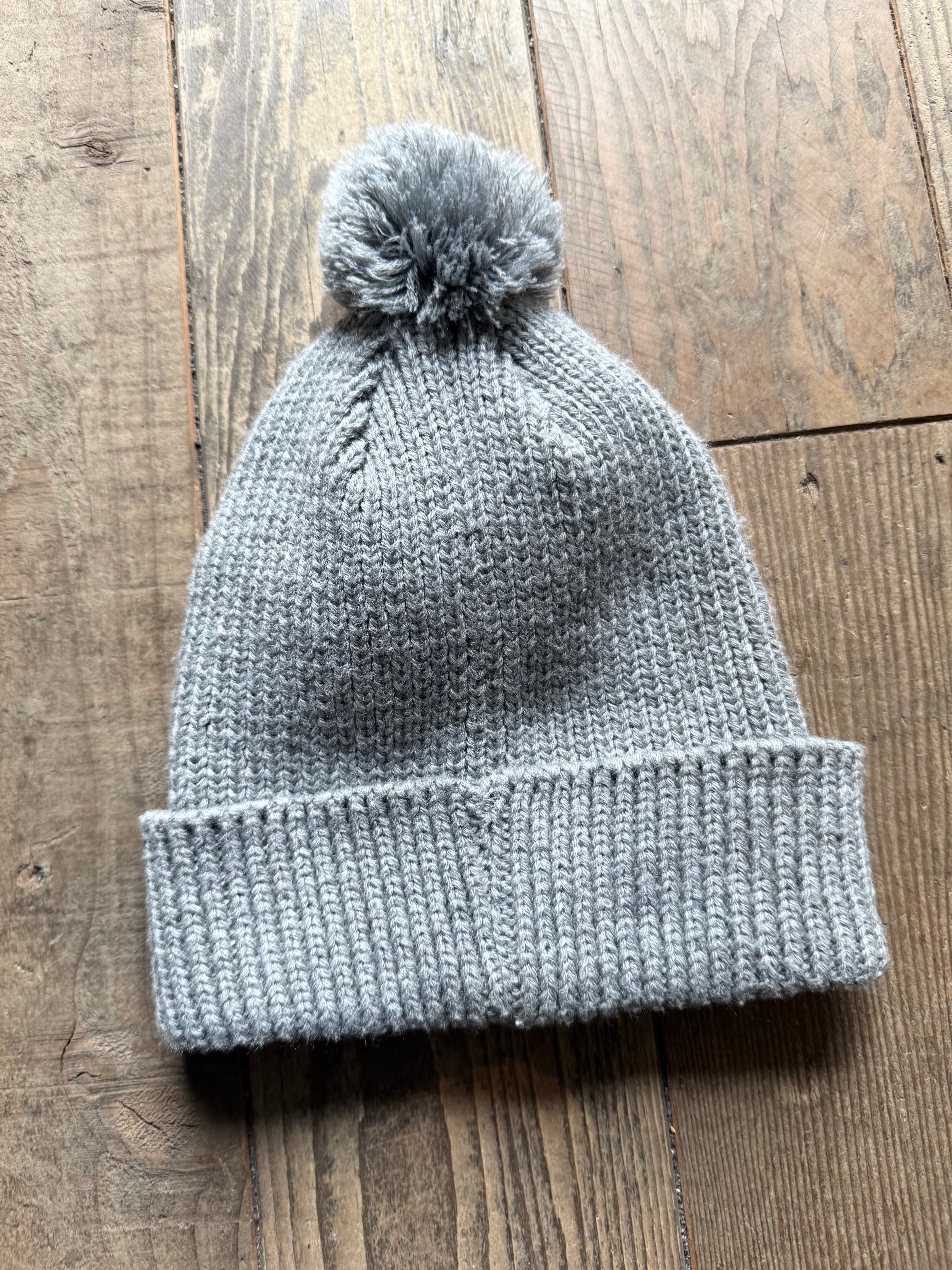 可愛らしいポンポン付きですが落ち着きのあるグレーカラーによることでバランスが取れ、アクリル素材なので幅広いシーズンで着用することができます。
