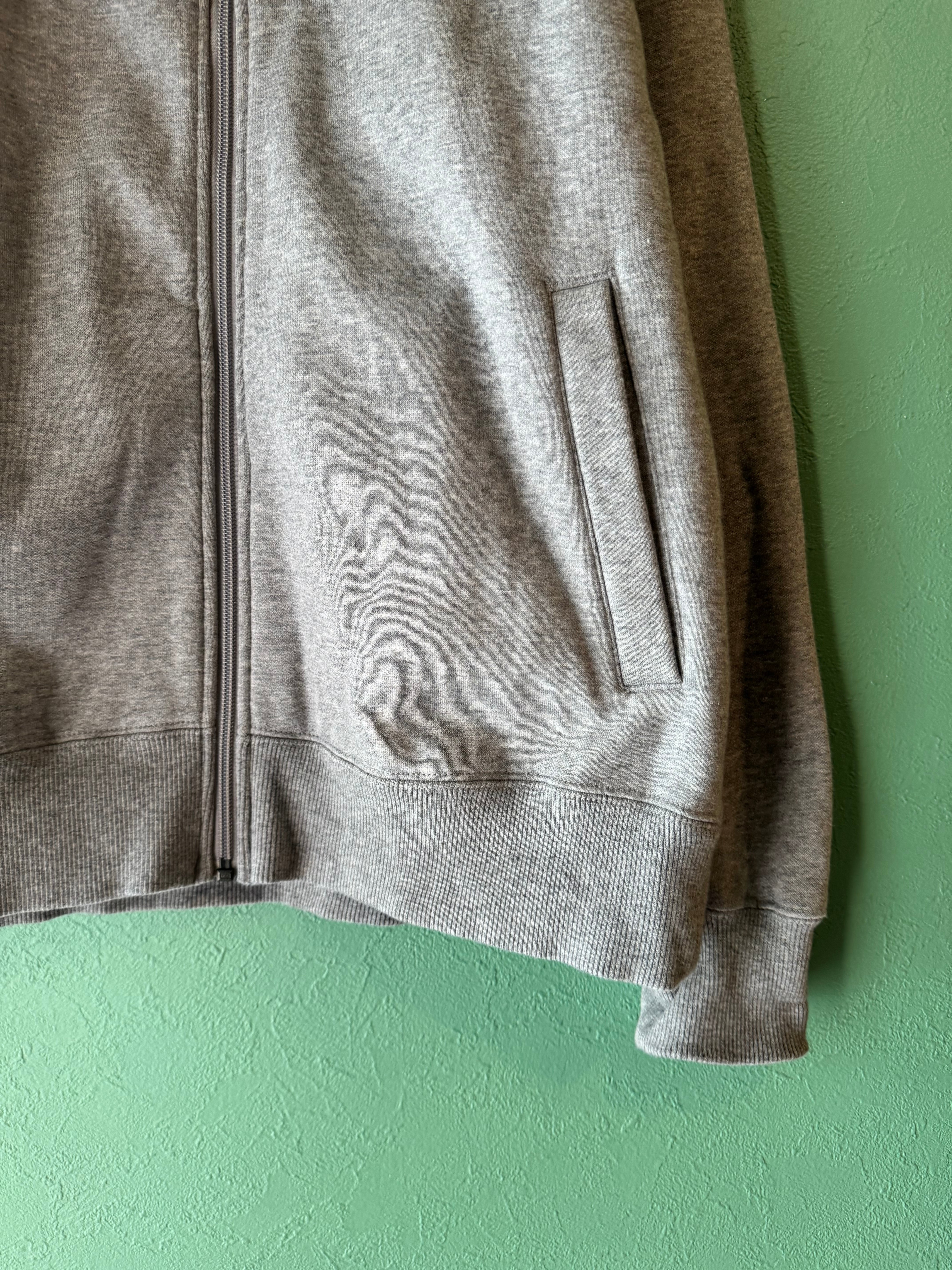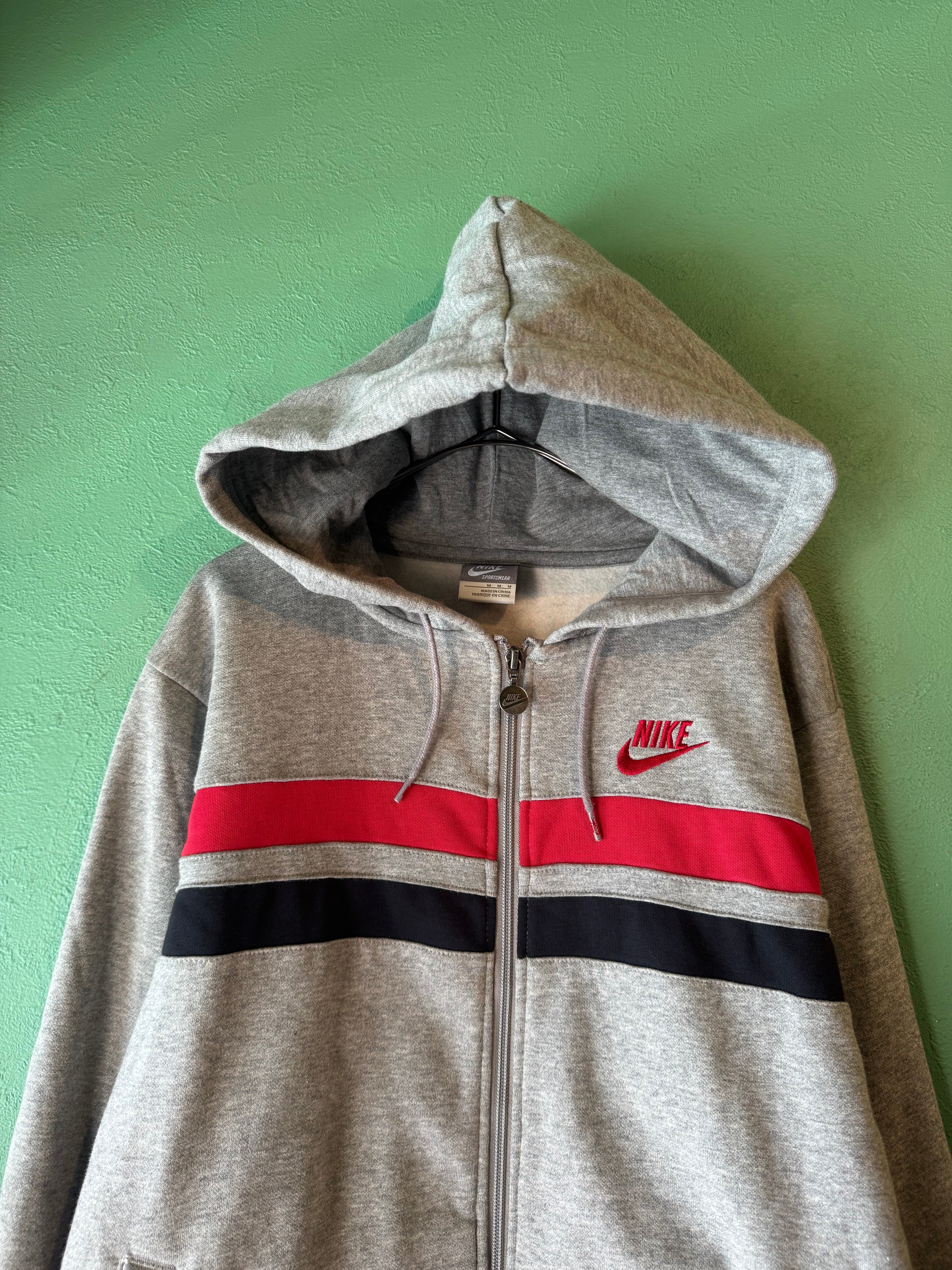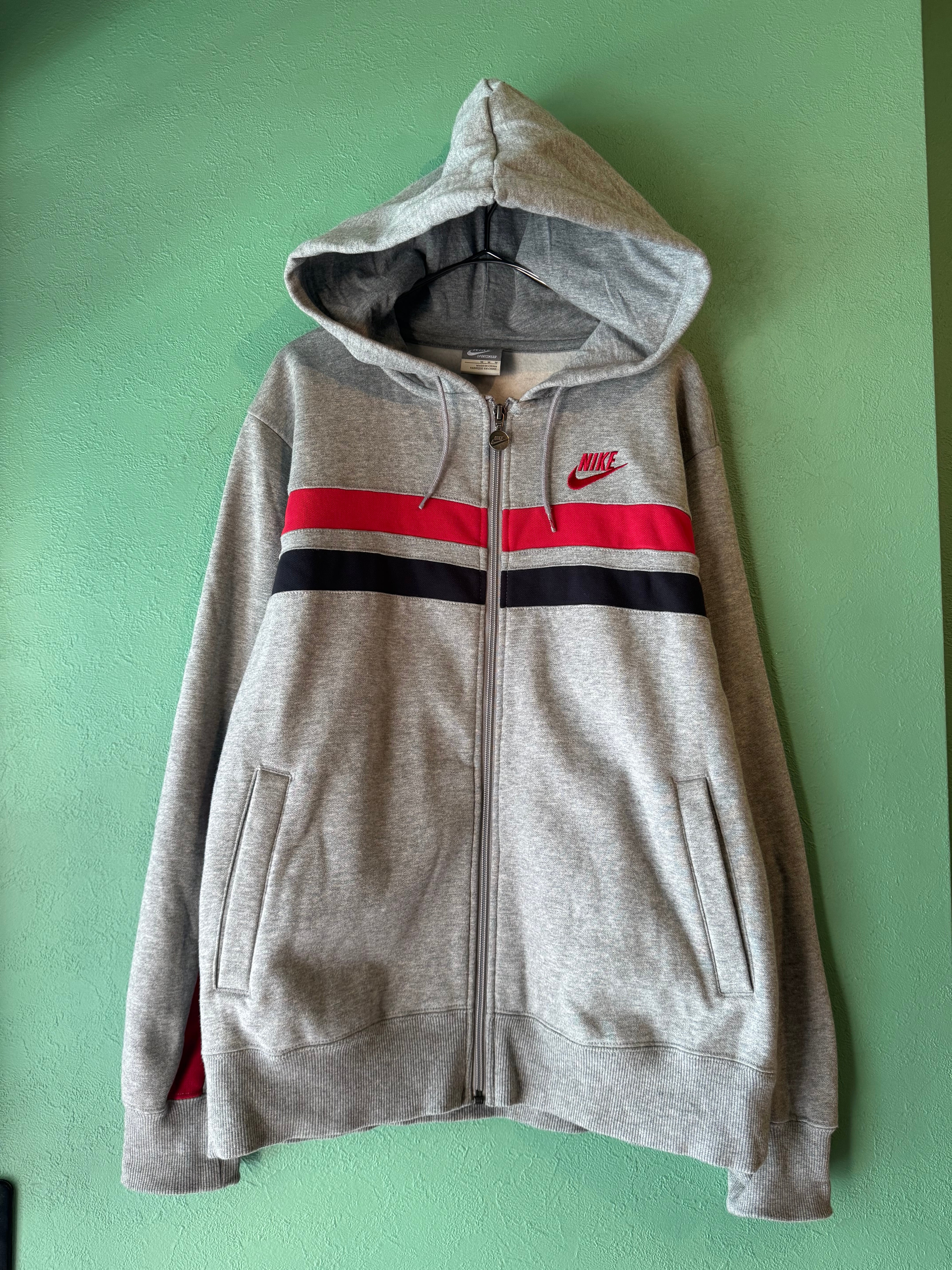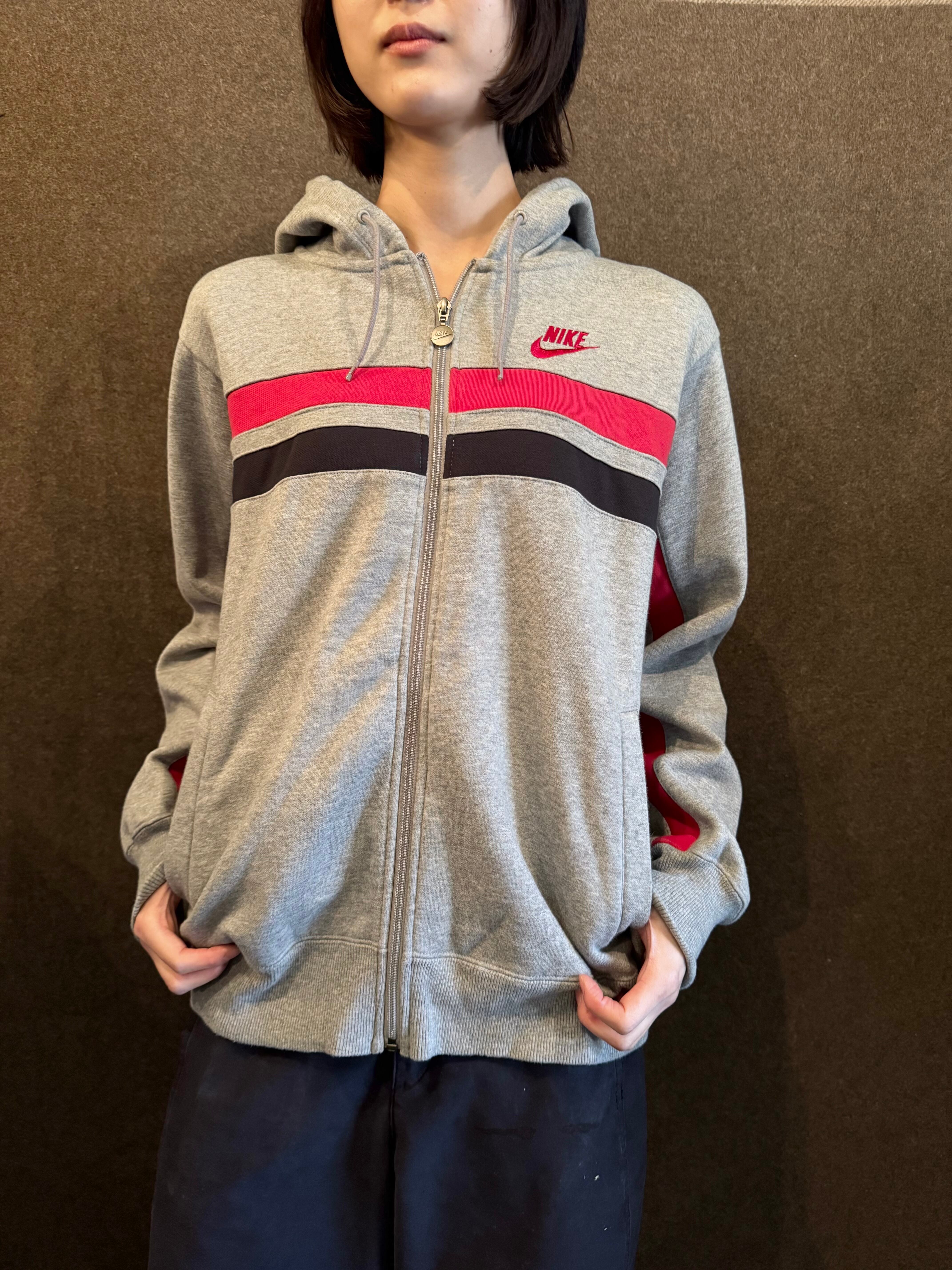 こちらはグレーカラーボディーにレッド×ブラックのラインデザインの施されたジップパーカー。
