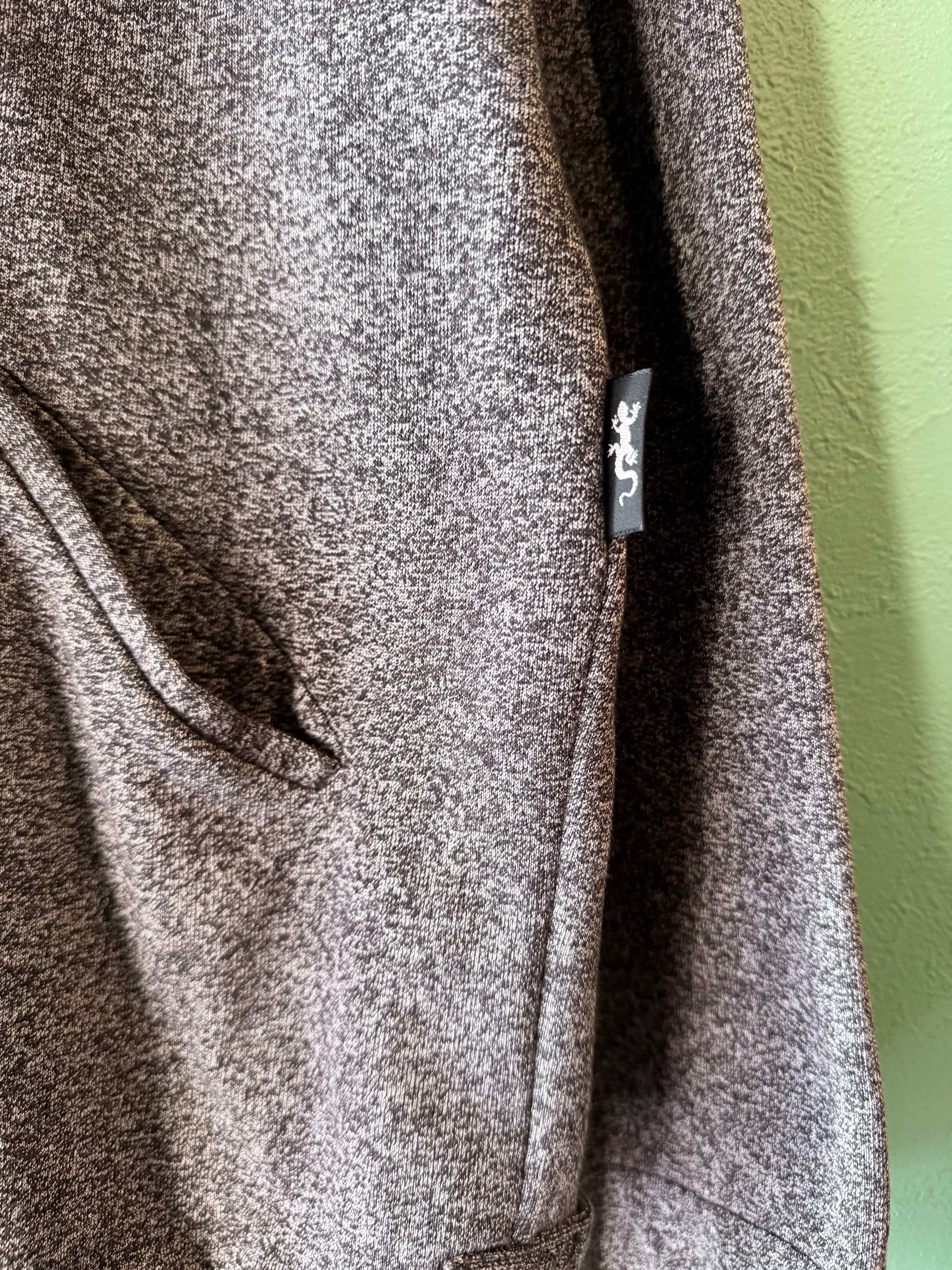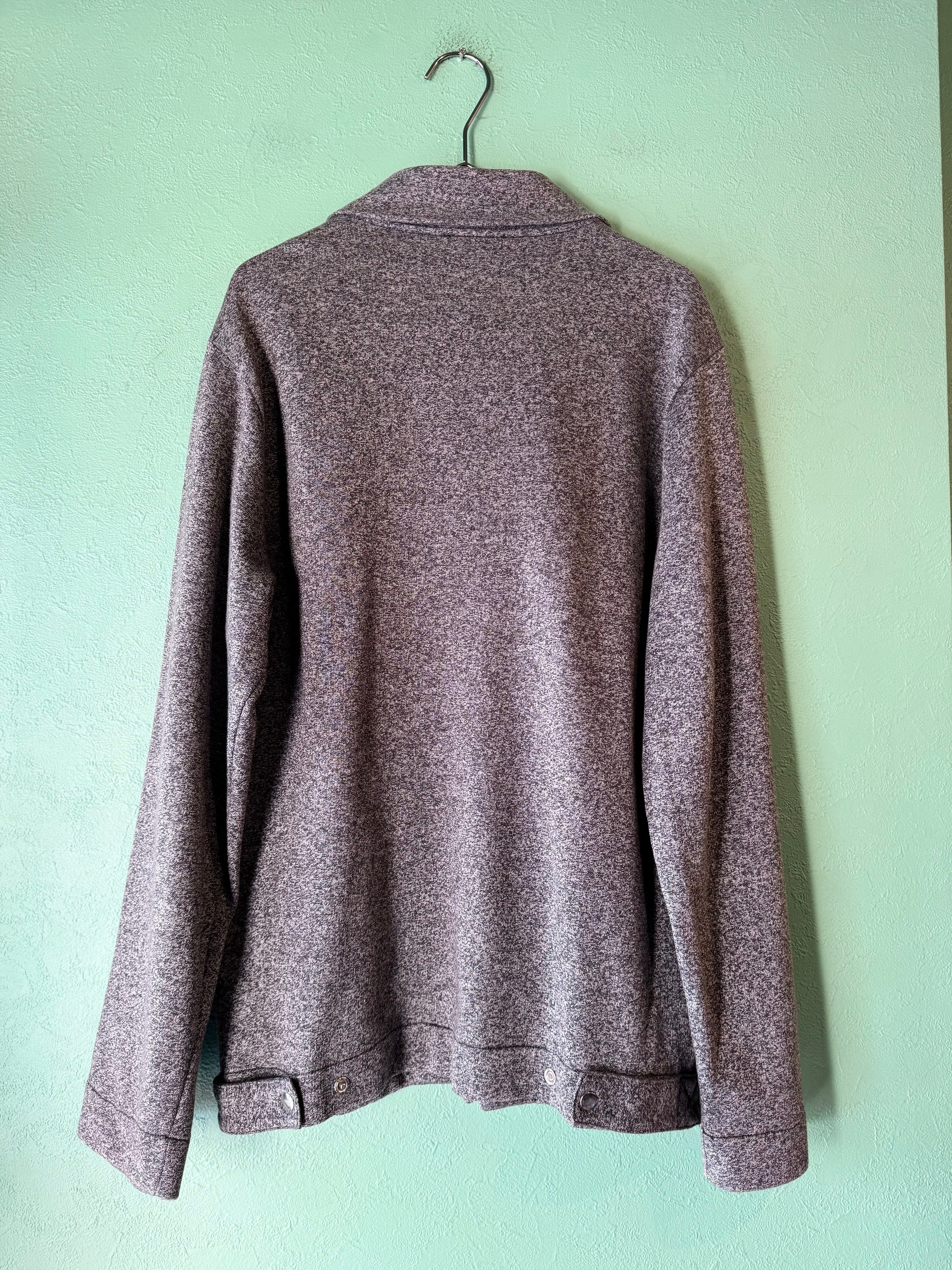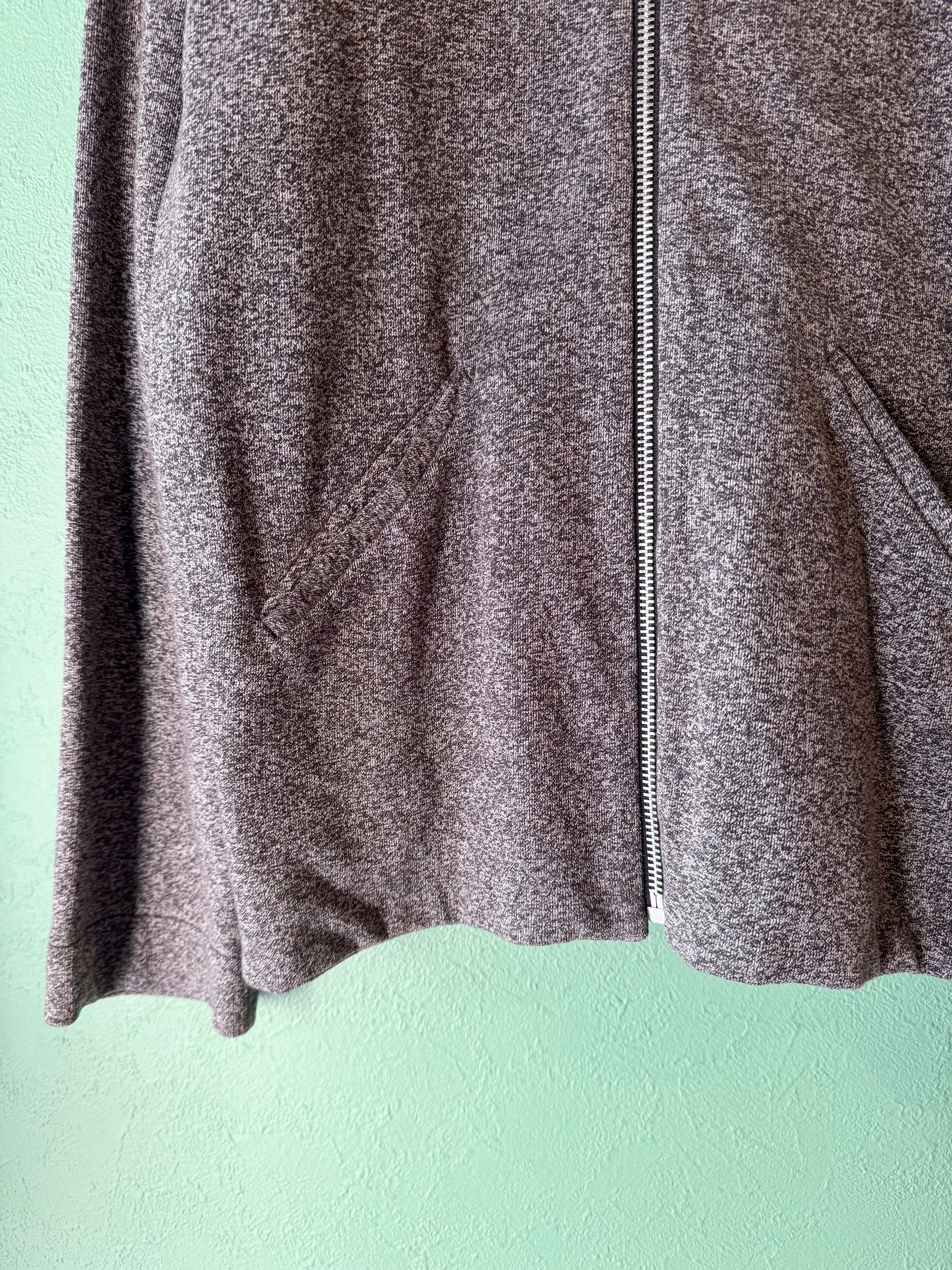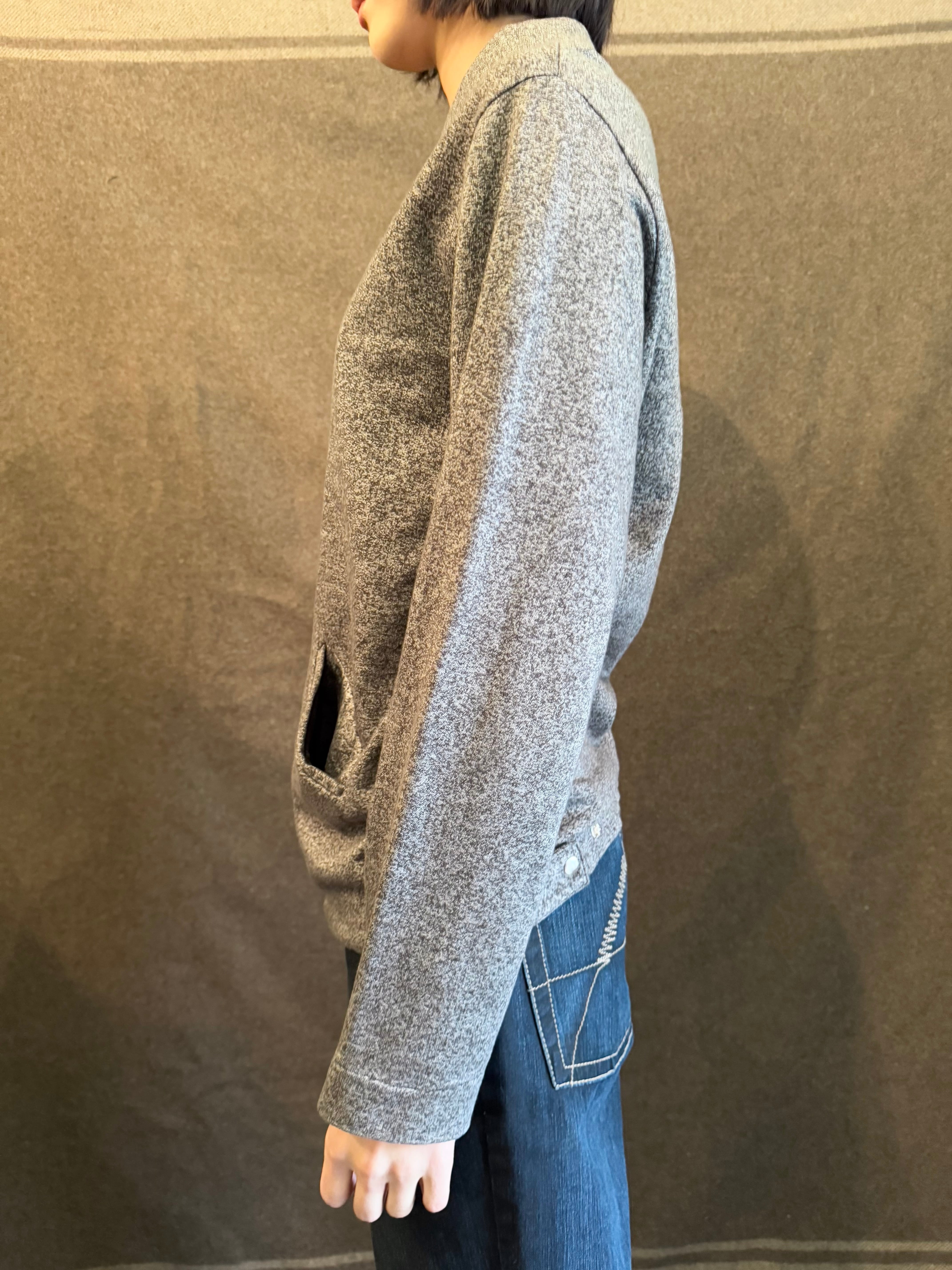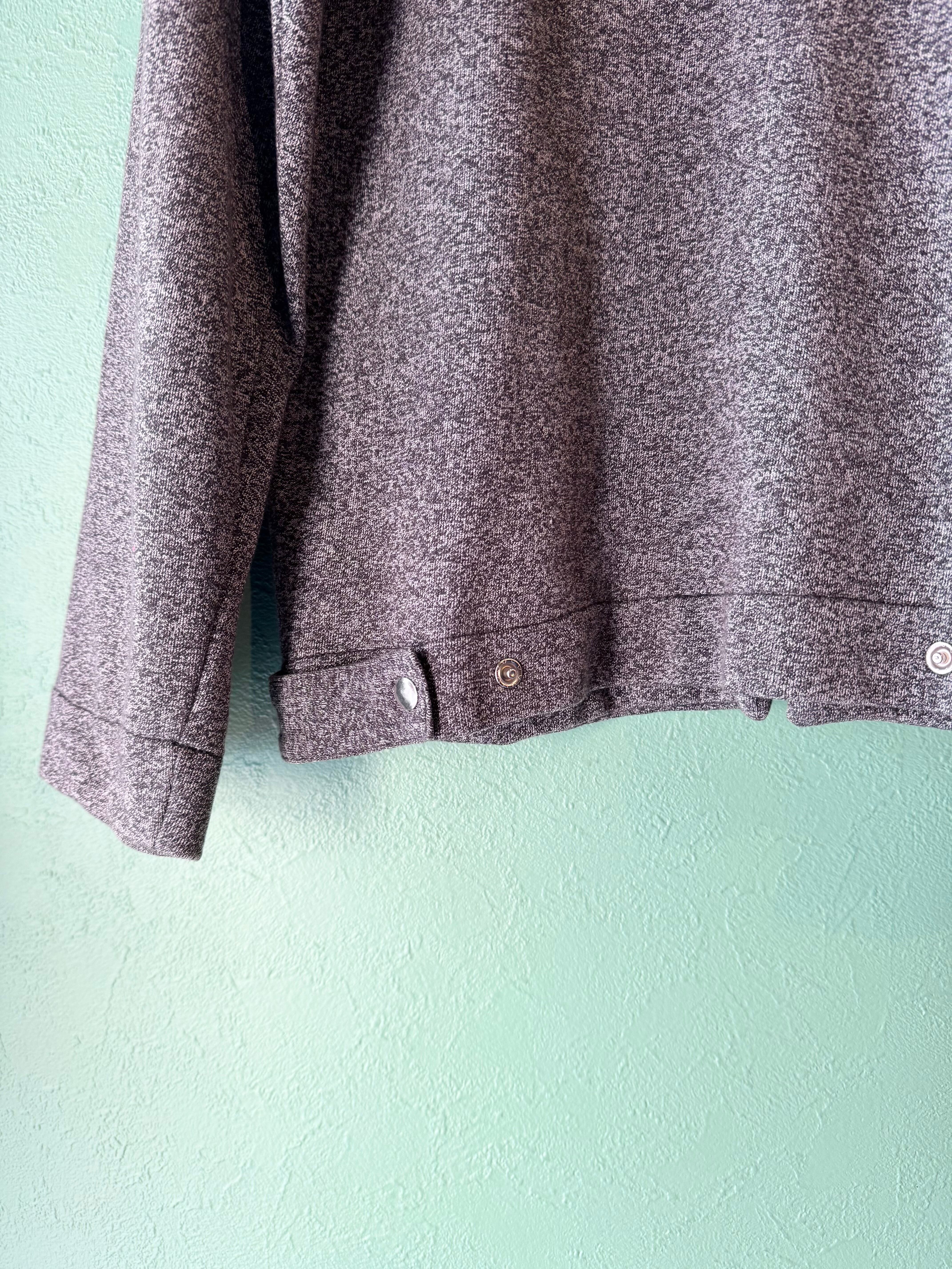 ごま塩のようなグレー×ブラックの霜降りカラーに着脱のしやすいフロントジップタイプのジャケット。