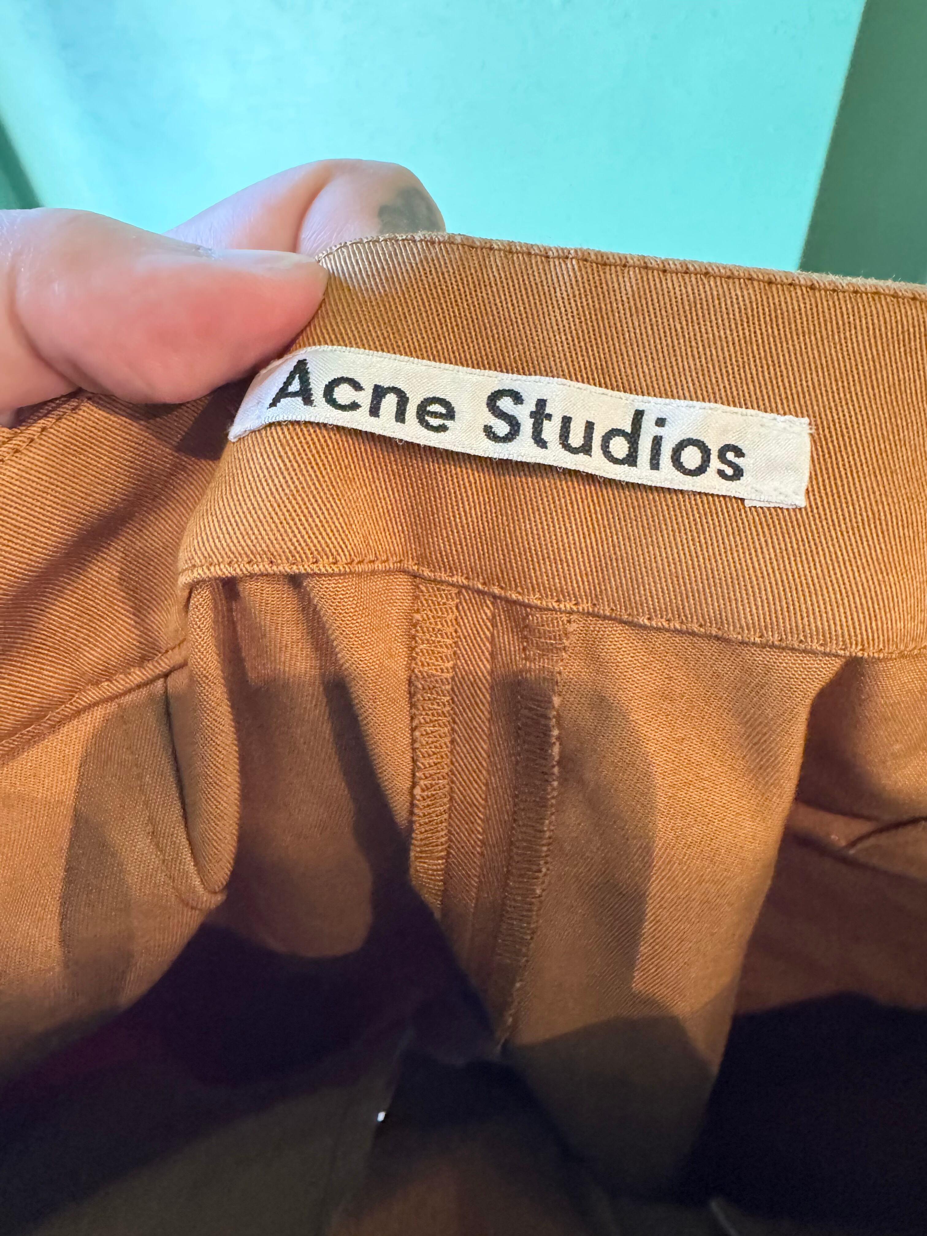 サイドは3本ステッチにチノパンのようなディテールでありながら、センタープリーツもうっすらと残ったアクネならではのキレイなフレアシルエットになっています。