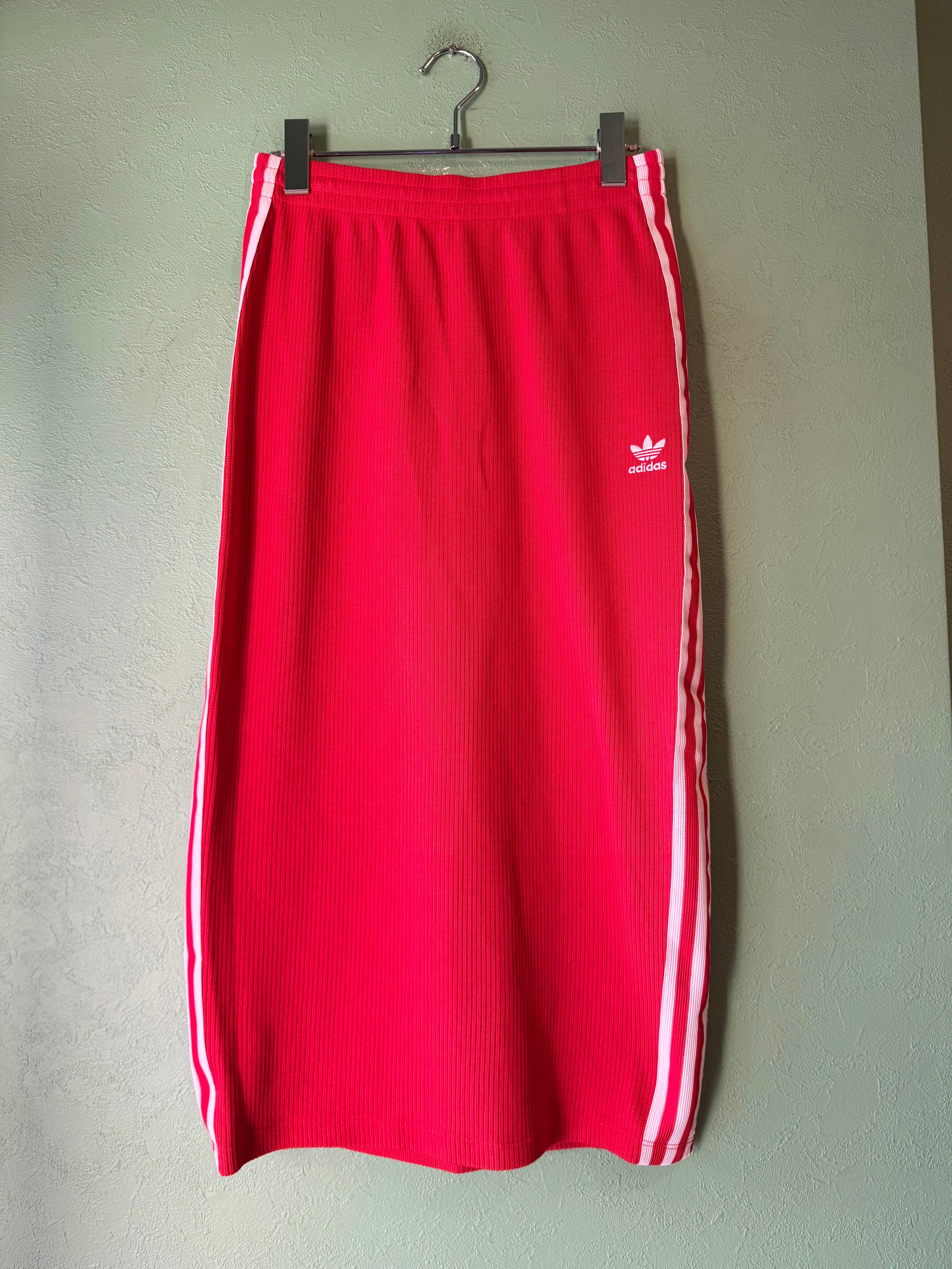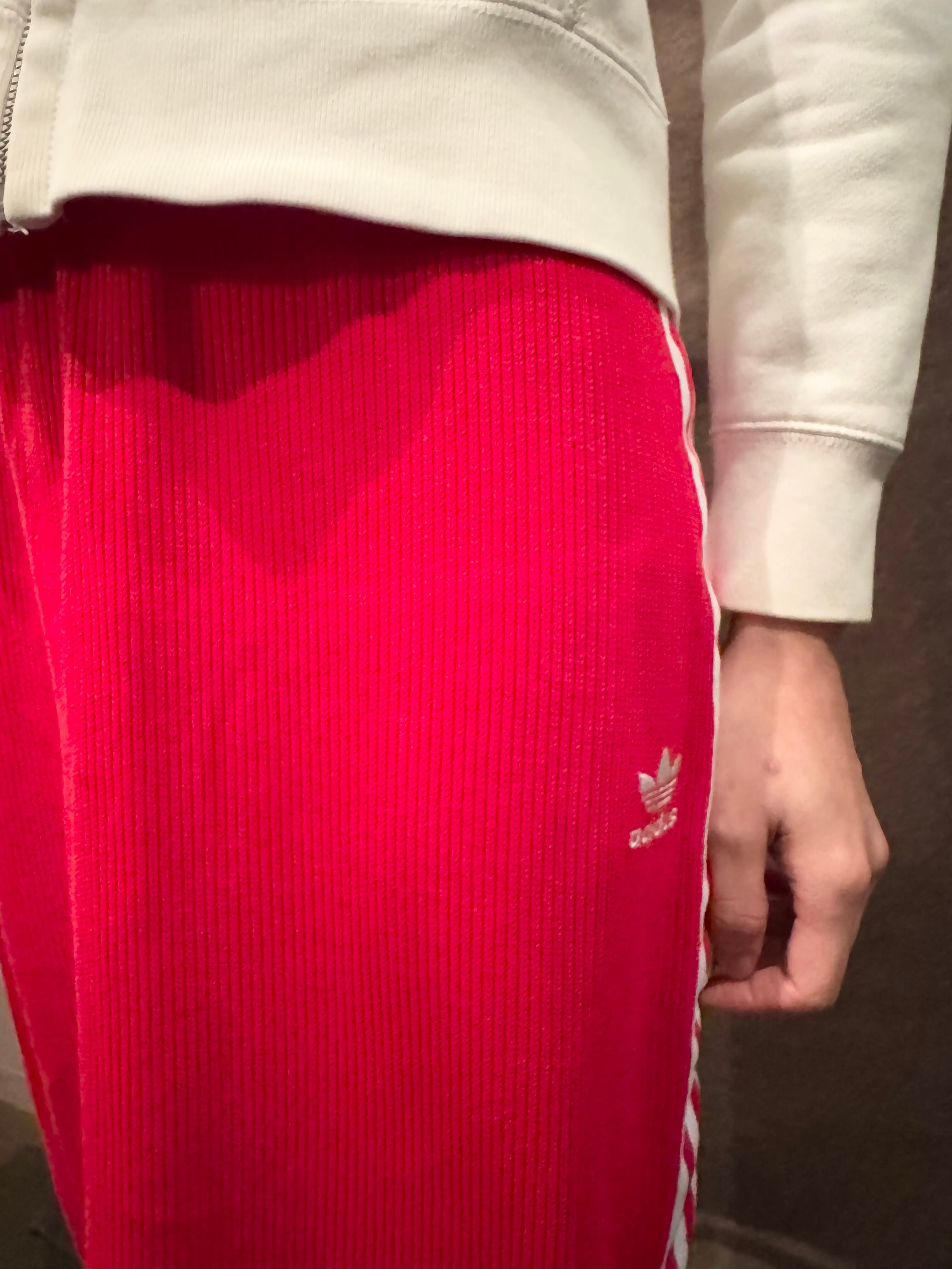 こちらは鮮やかなレッドカラーの可愛いニットスカート。