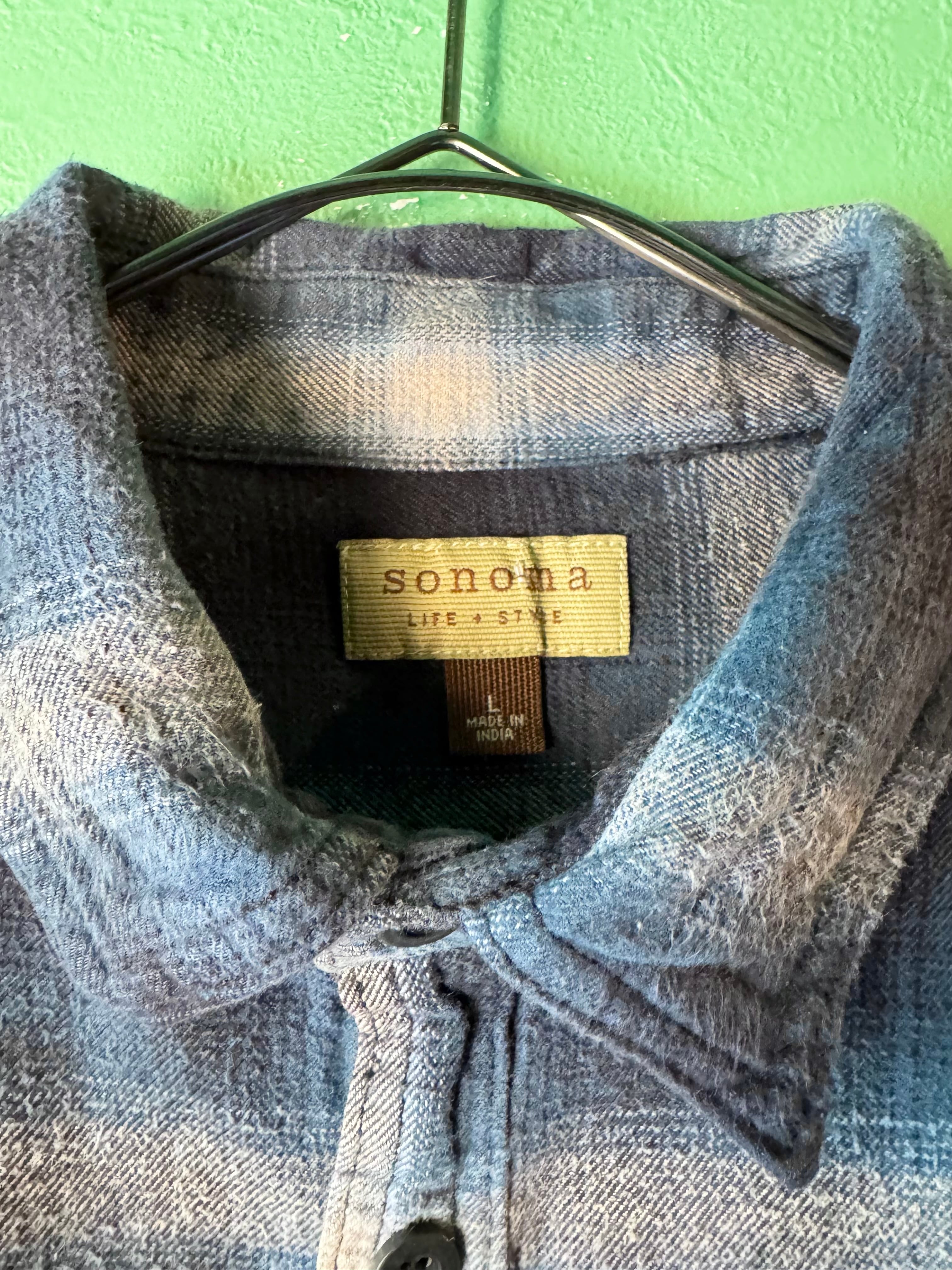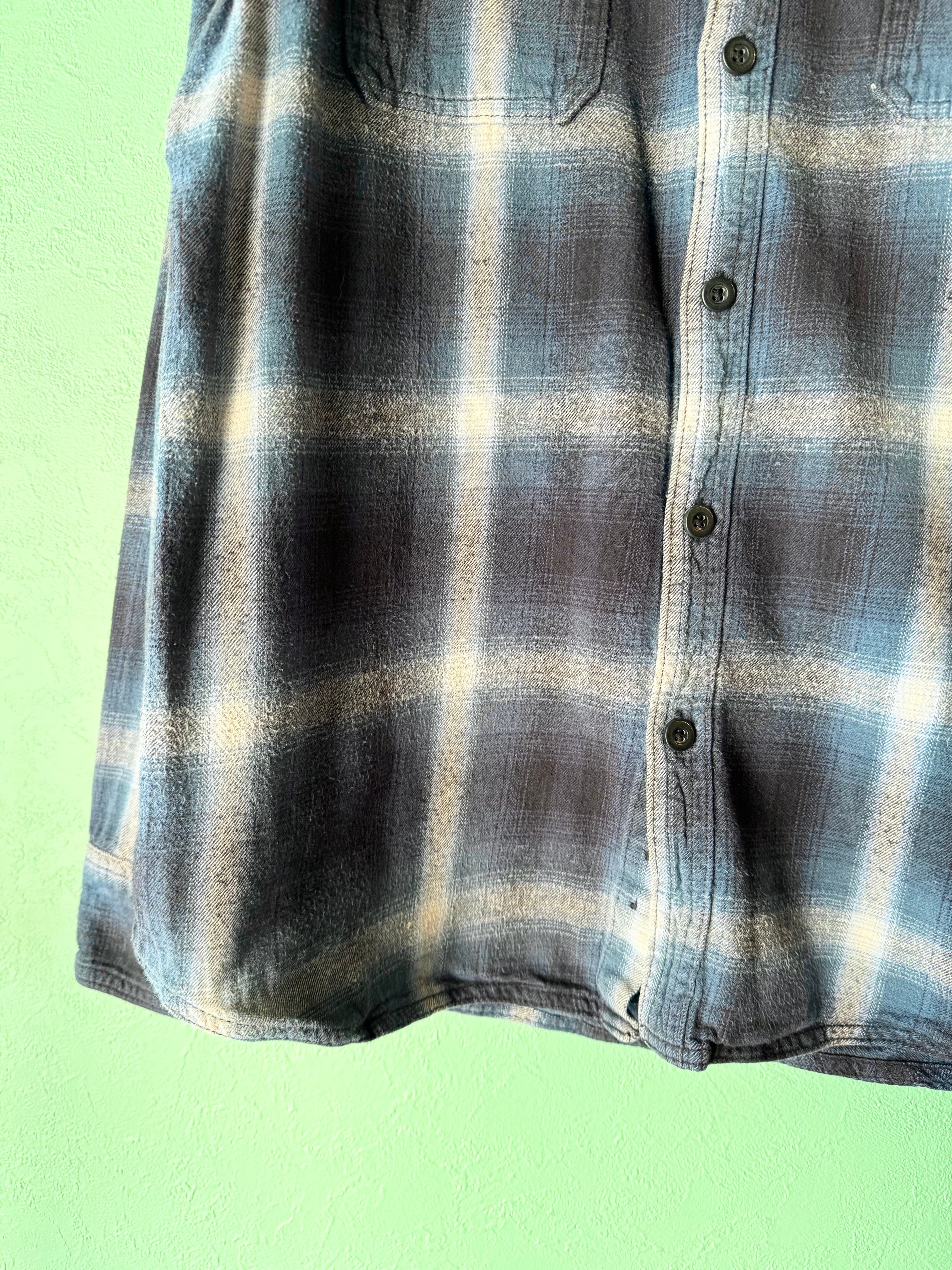こちらはブルー×ブラック×ホワイトのカラーリングがカッコいいフランネルシャツ。