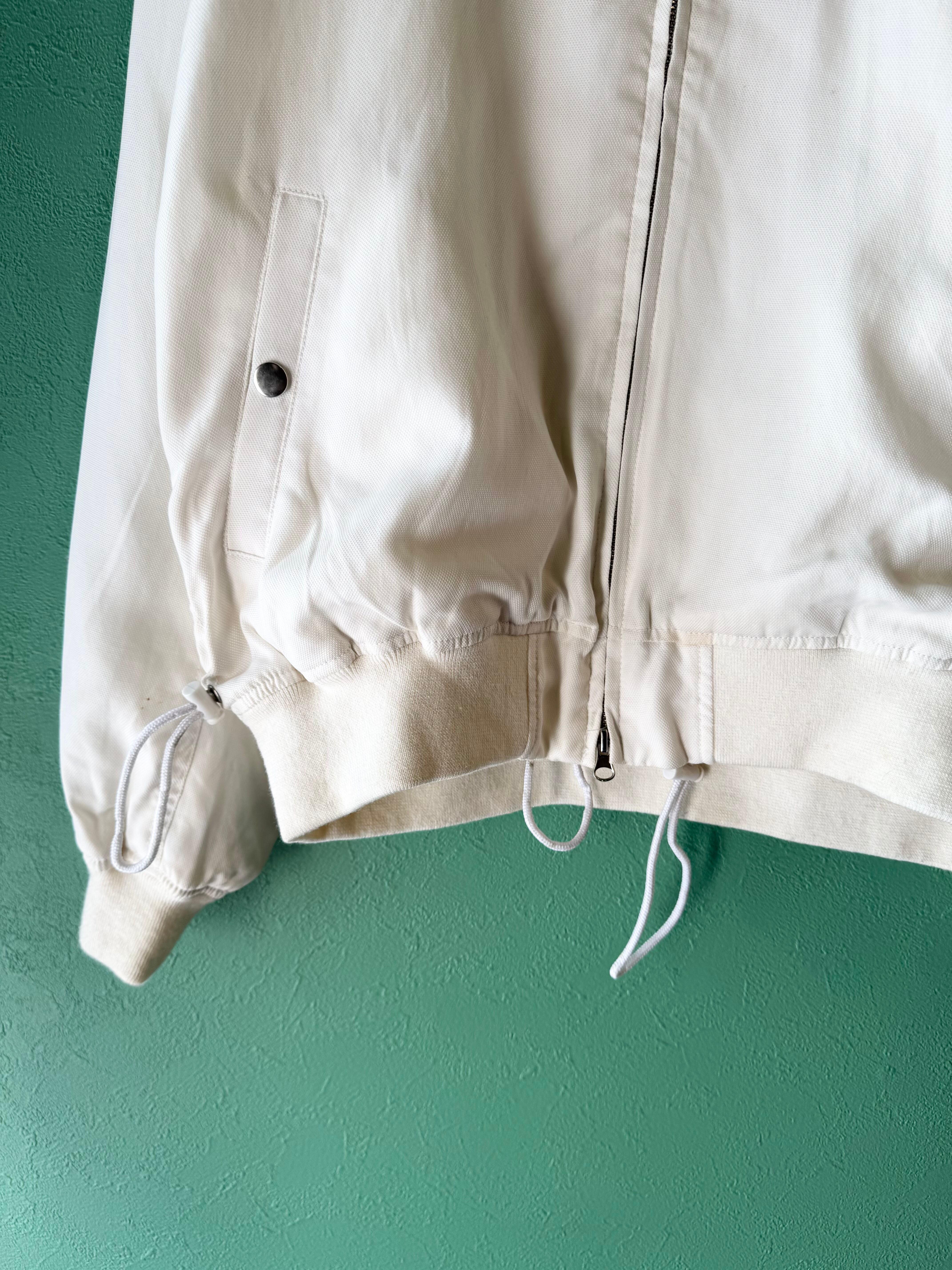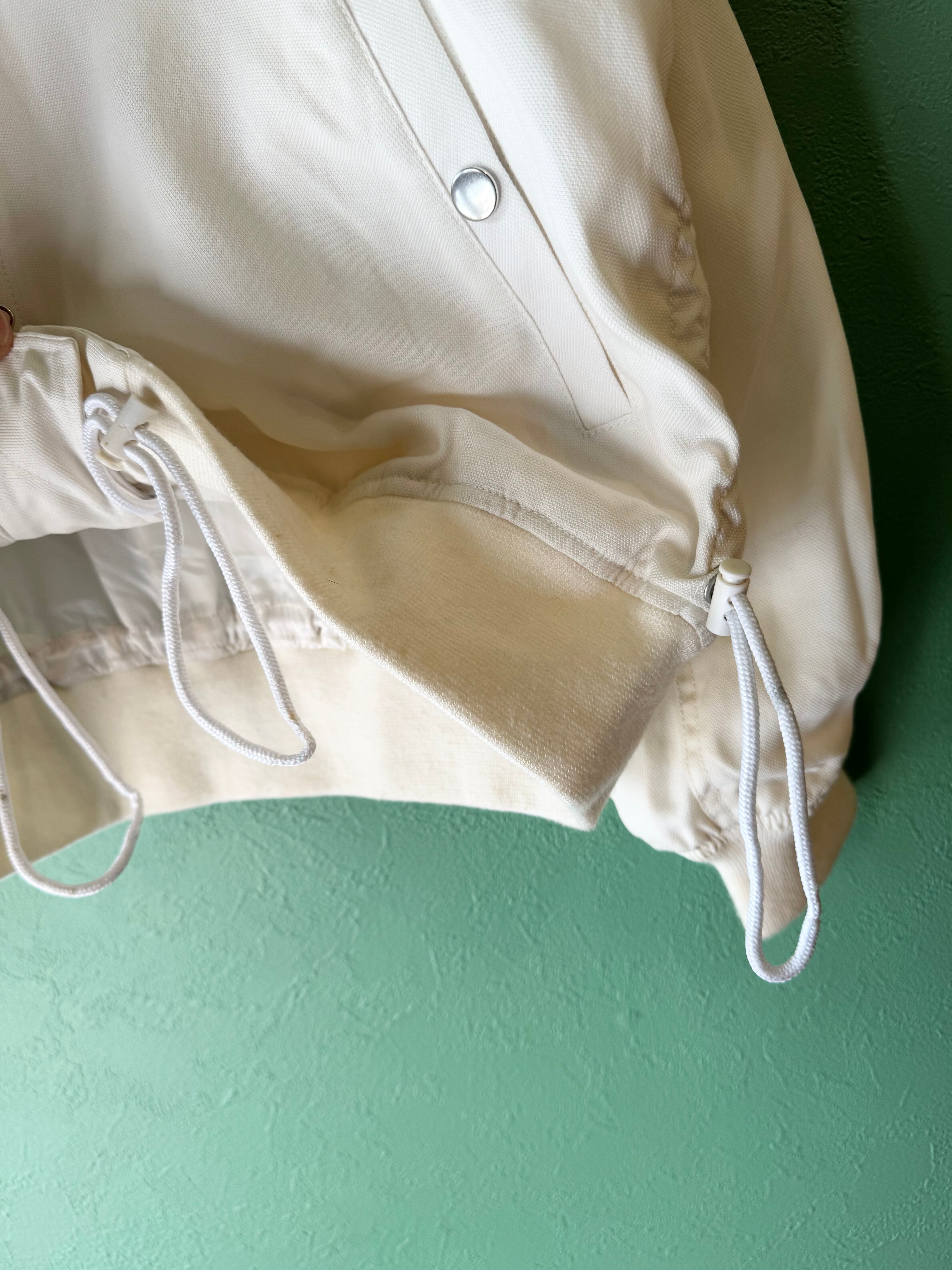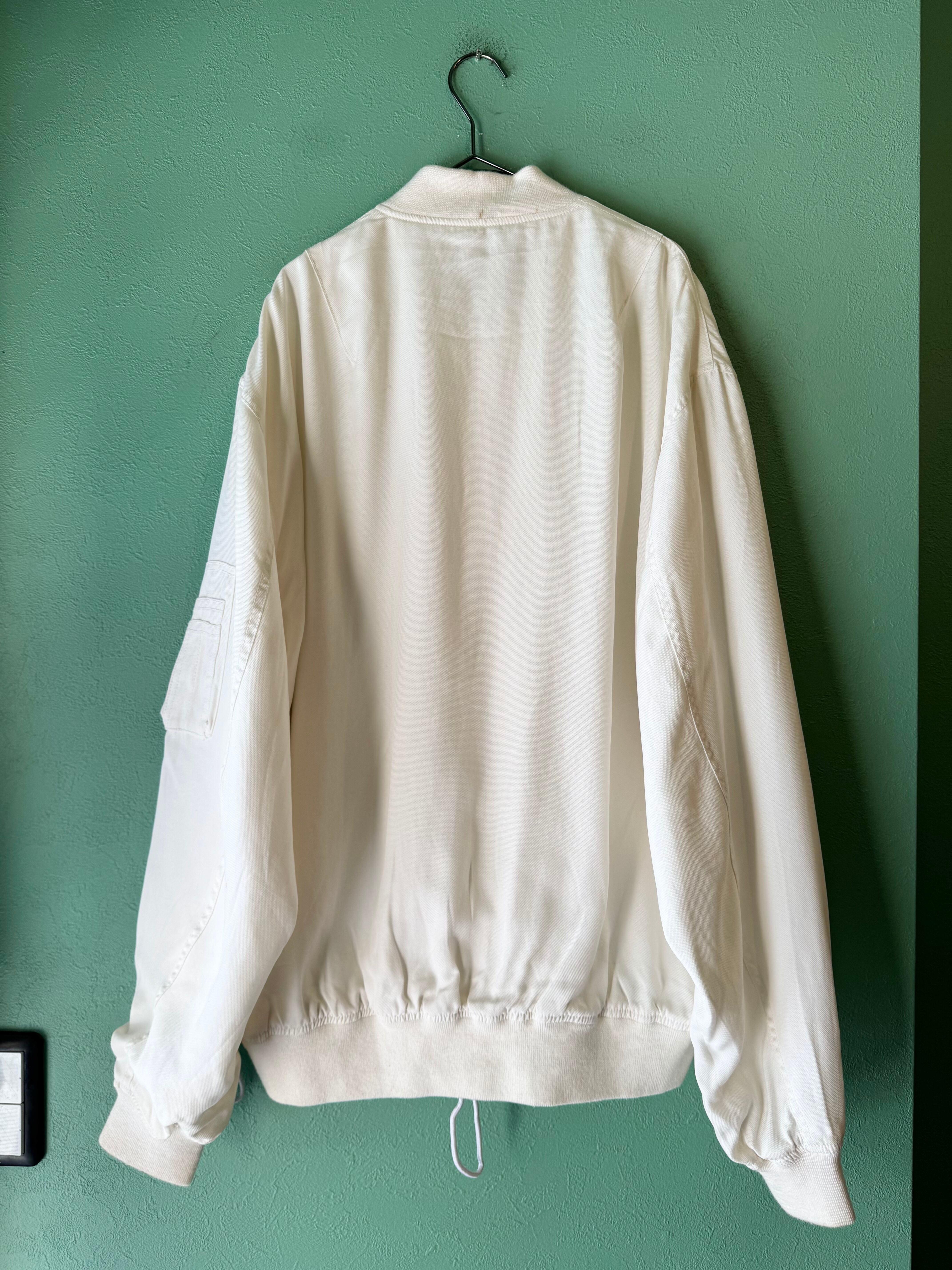 オリジナルにはないホワイトカラーに薄手のテンセル生地を使用、袖のポケット等細かい部分はMA-1に似せつつも裾はドローコードで絞れたりと古着好きにも刺さる1着です。